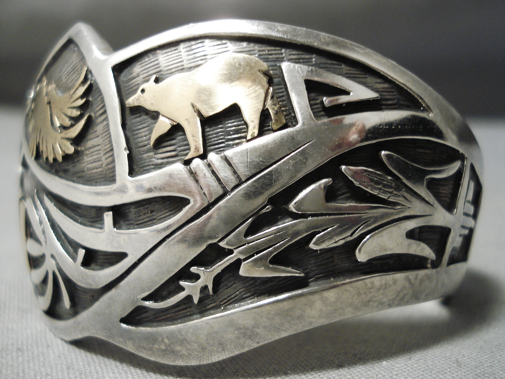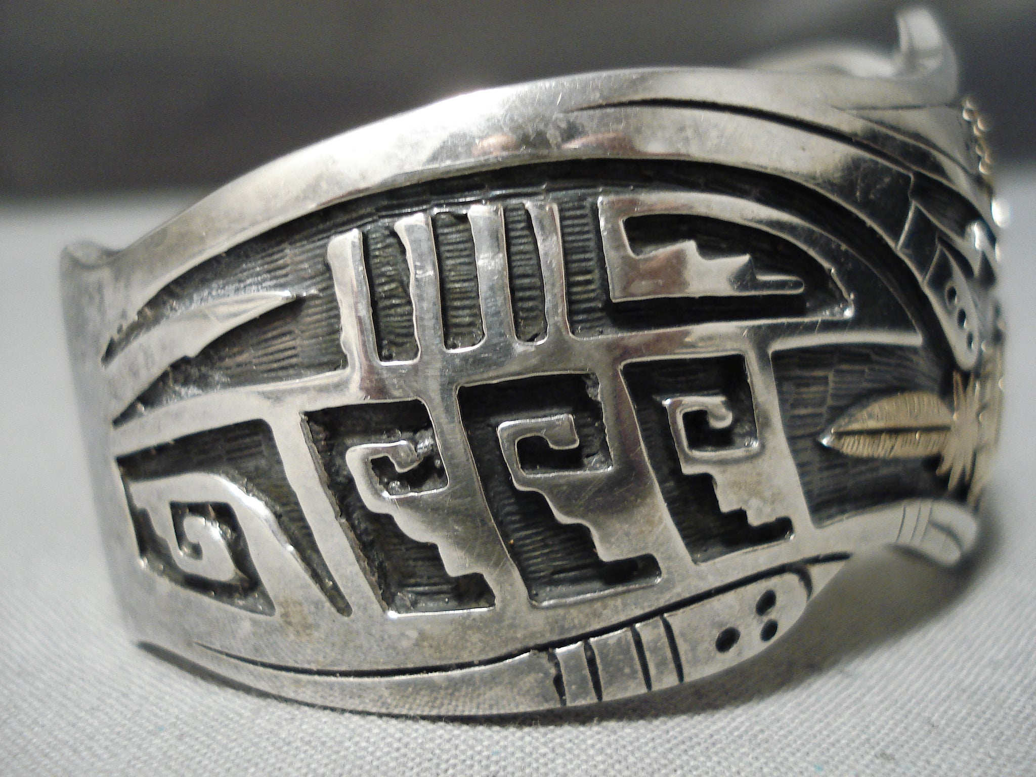 One Of The Best Vintage Native American Navajo Overlay Sterling Silver Gold Bracelet