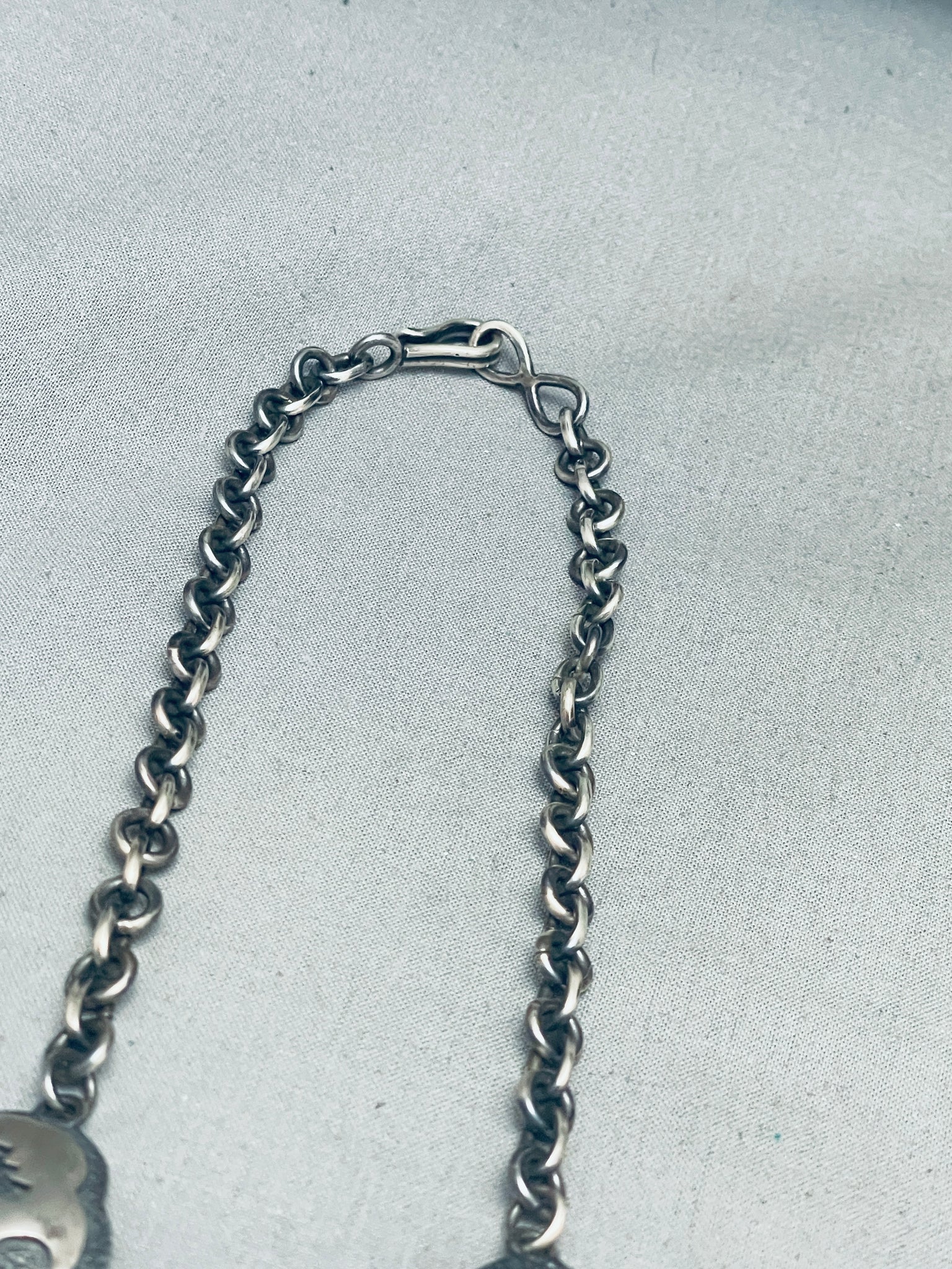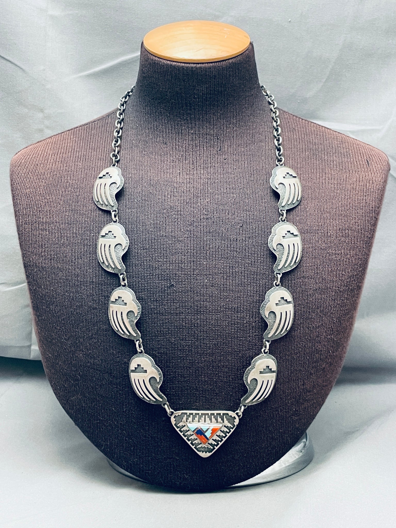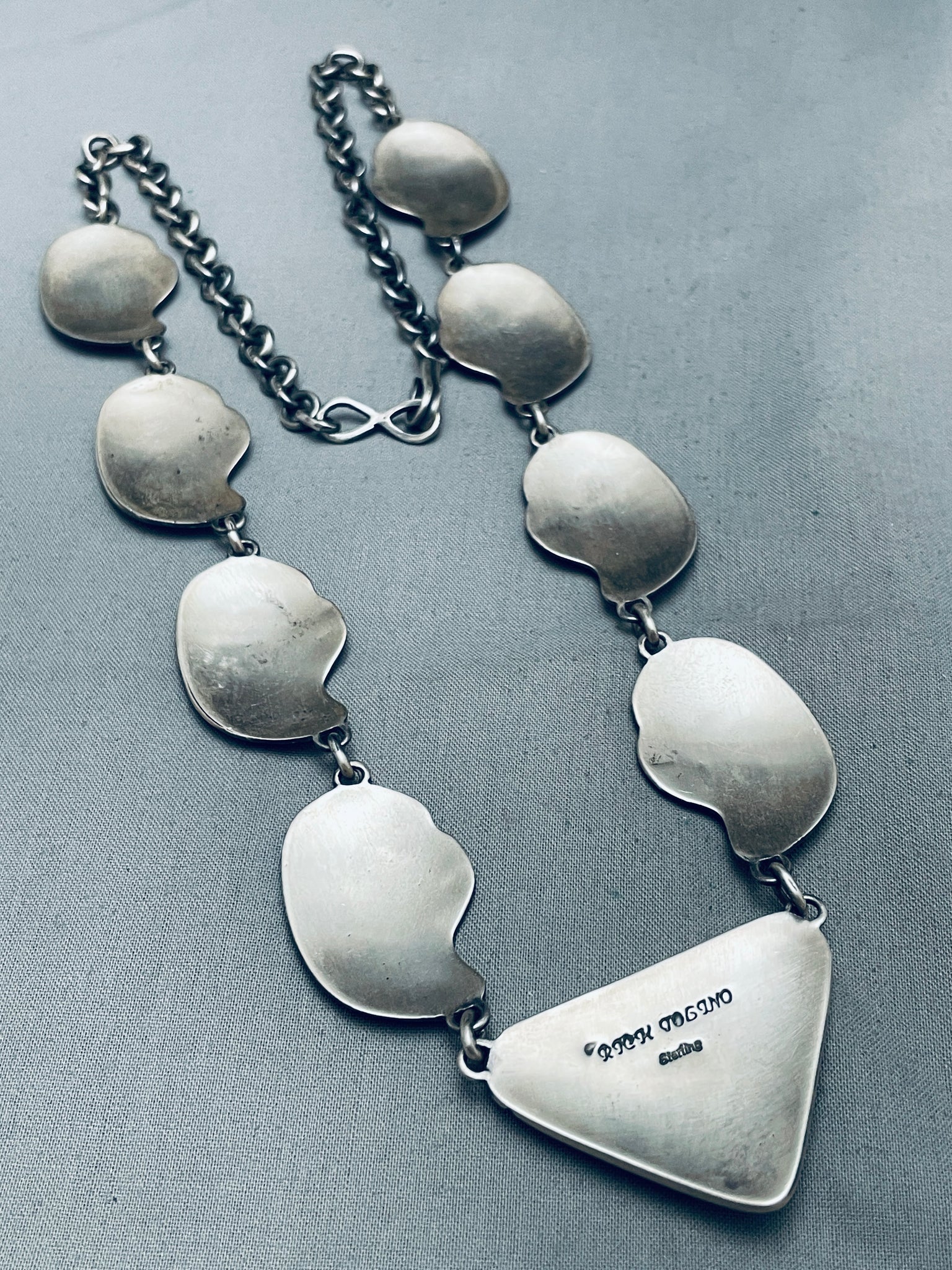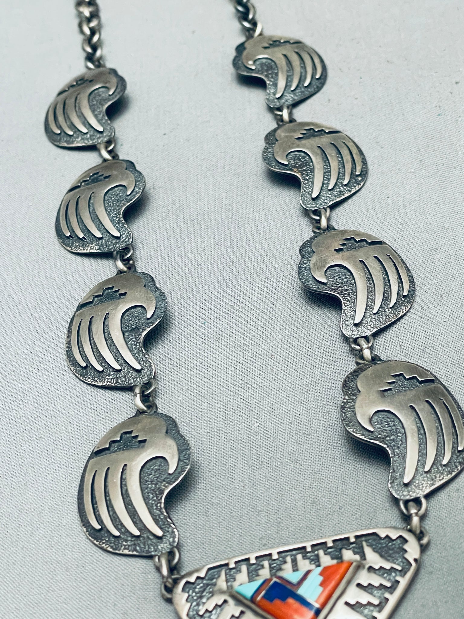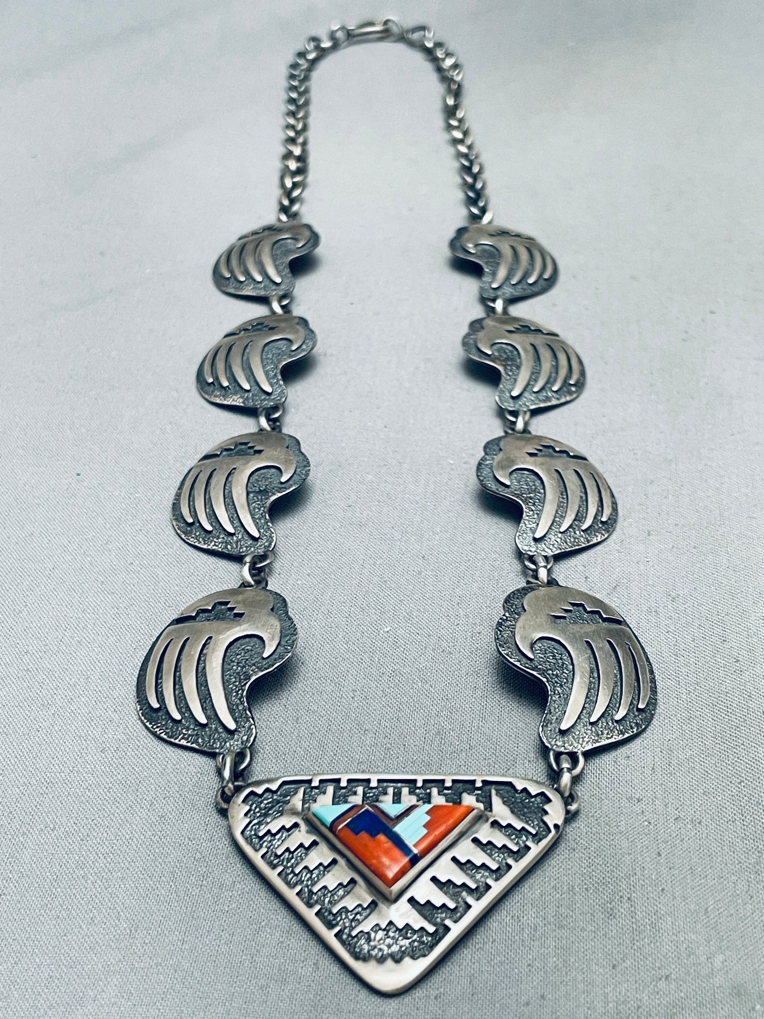 One Of The Best Vintage Native American Navajo Turquoise Inlay Sterling Silver Necklace