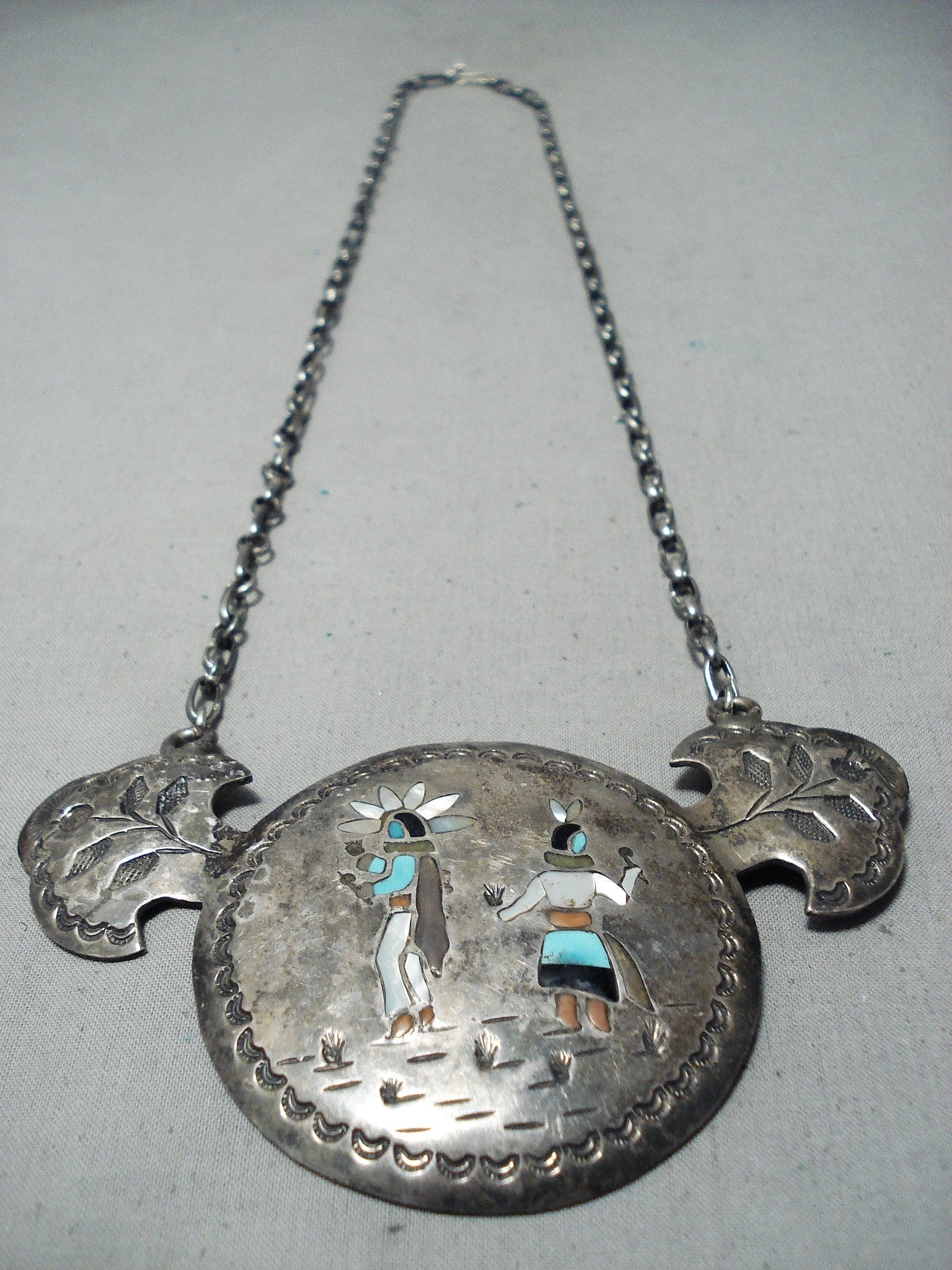 One Of The Best Vintage Native American Navajo Turquoise Inlay Sterling Silver Necklace Old