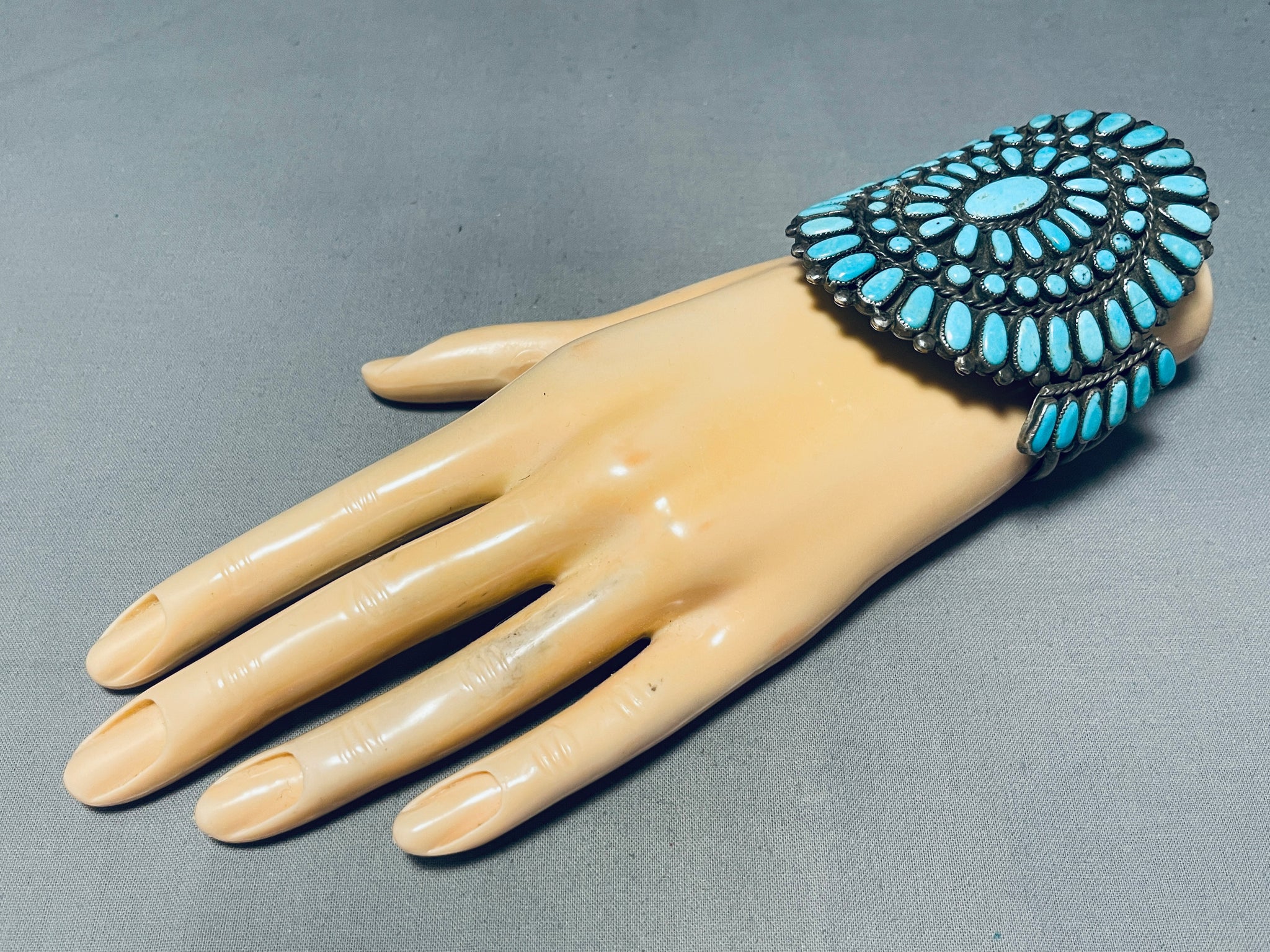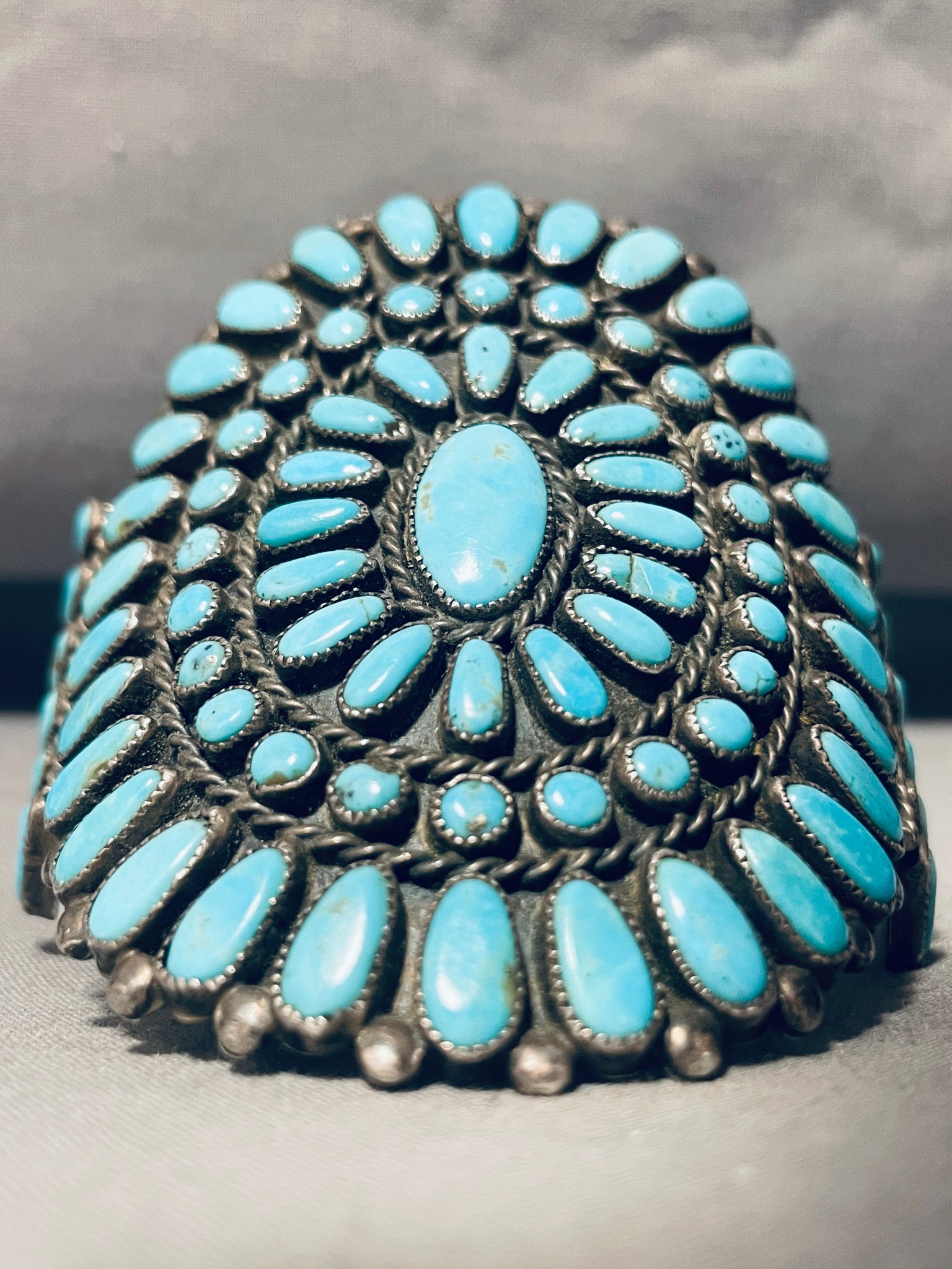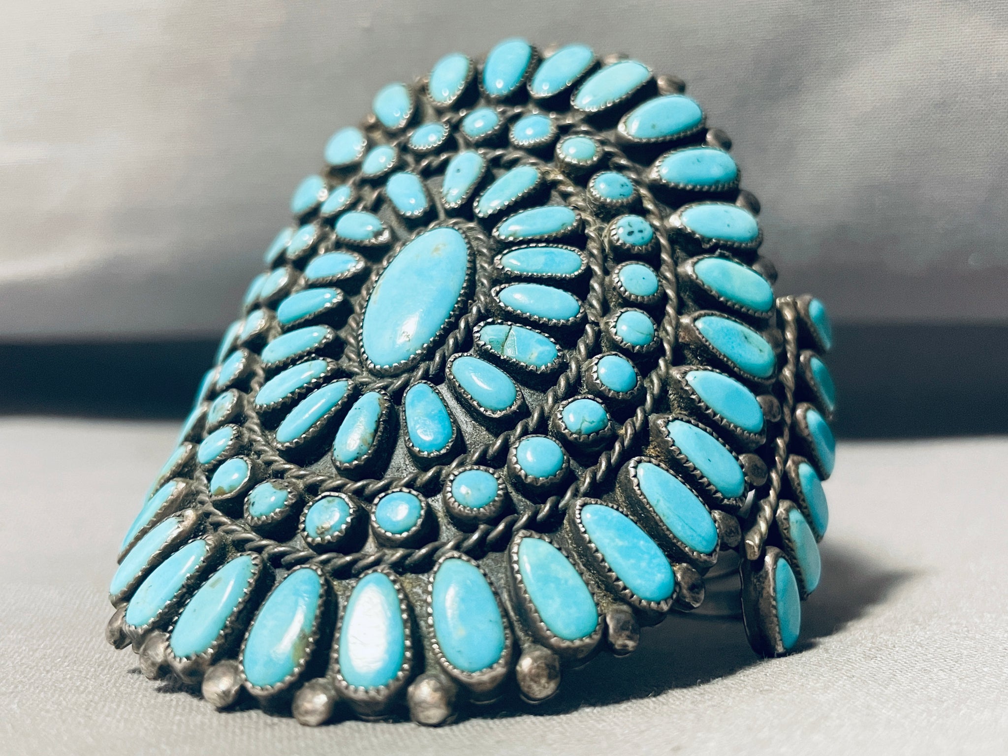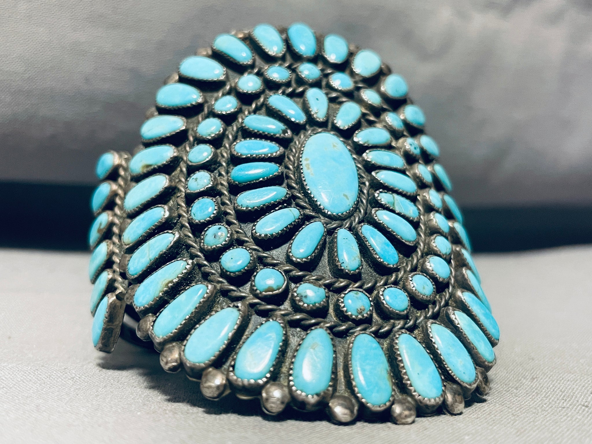 One Of The Best Vintage Native American Navajo Turquoise Sterling Silver Cluster Bracelet