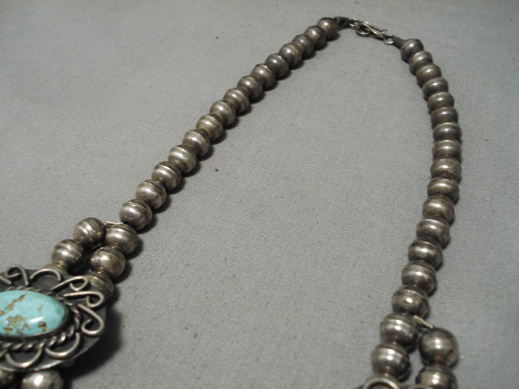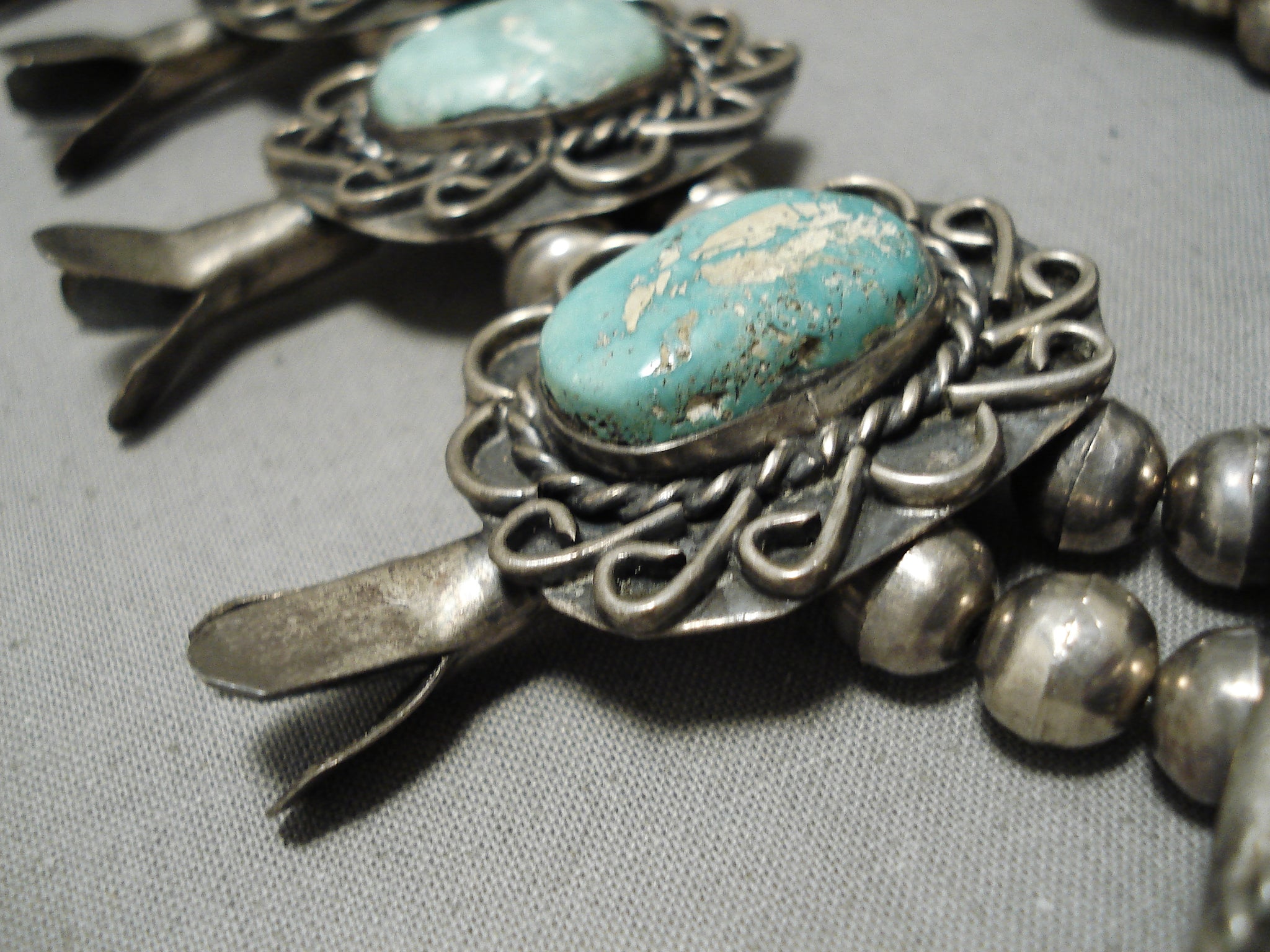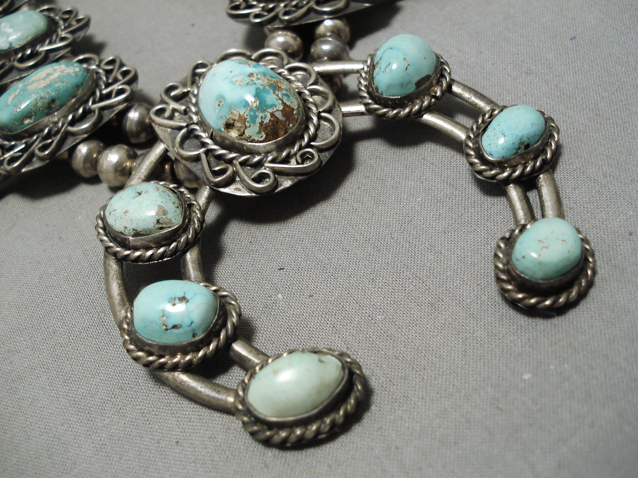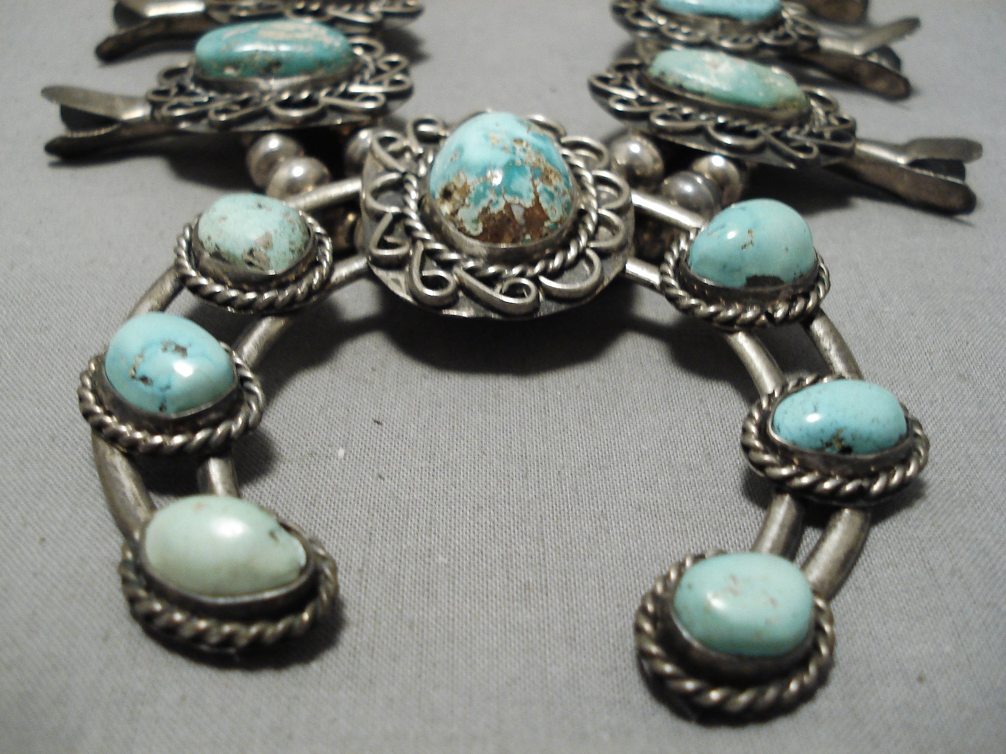 One Of The Best Vintage Native American Navajo Turquoise Sterling Silver Squash Blossom Necklace