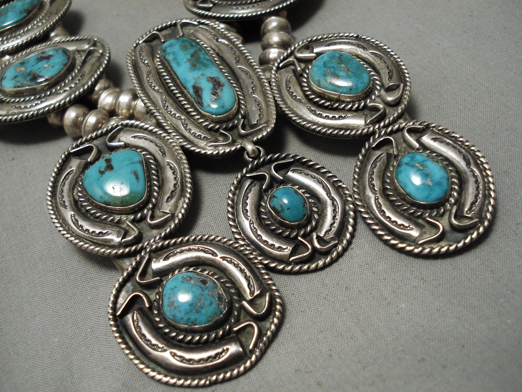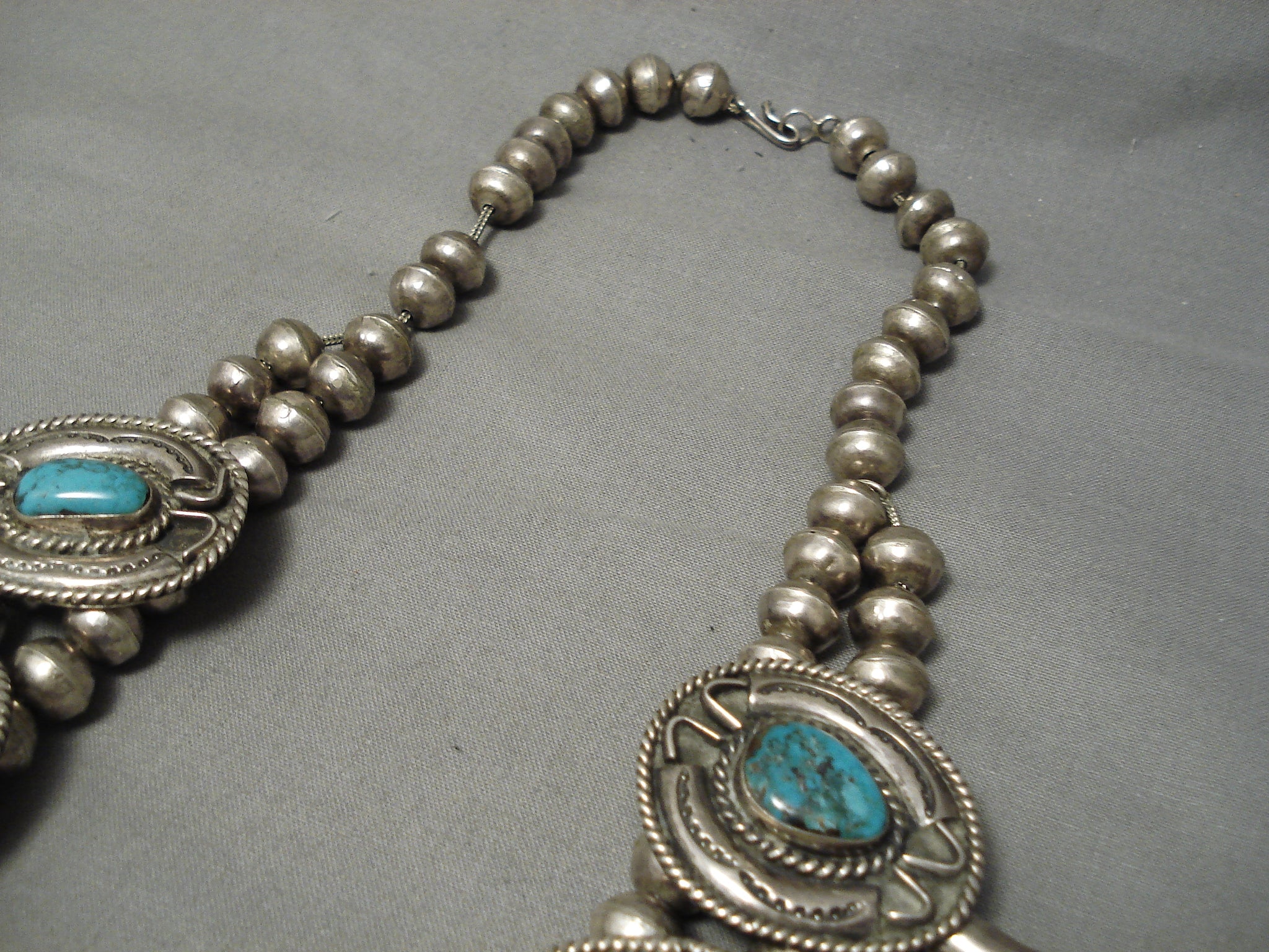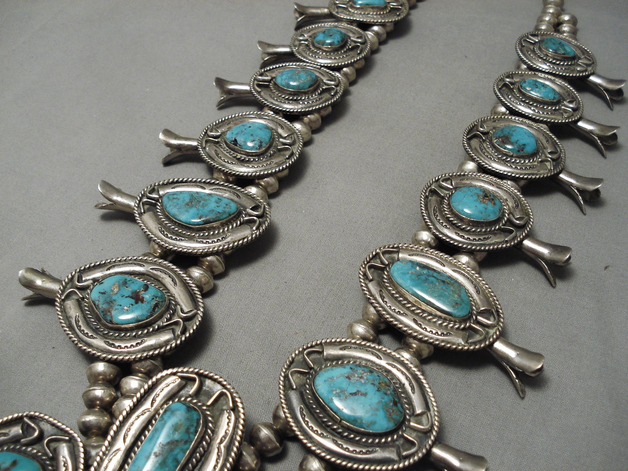 One Of The Best Vintage Native American Navajo Turquoise Sterling Silver Squash Blossom Necklace