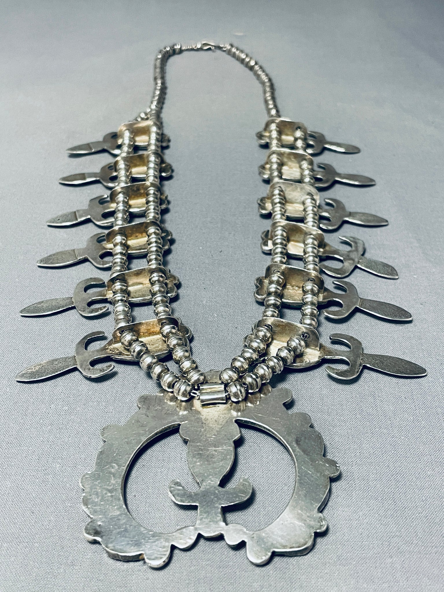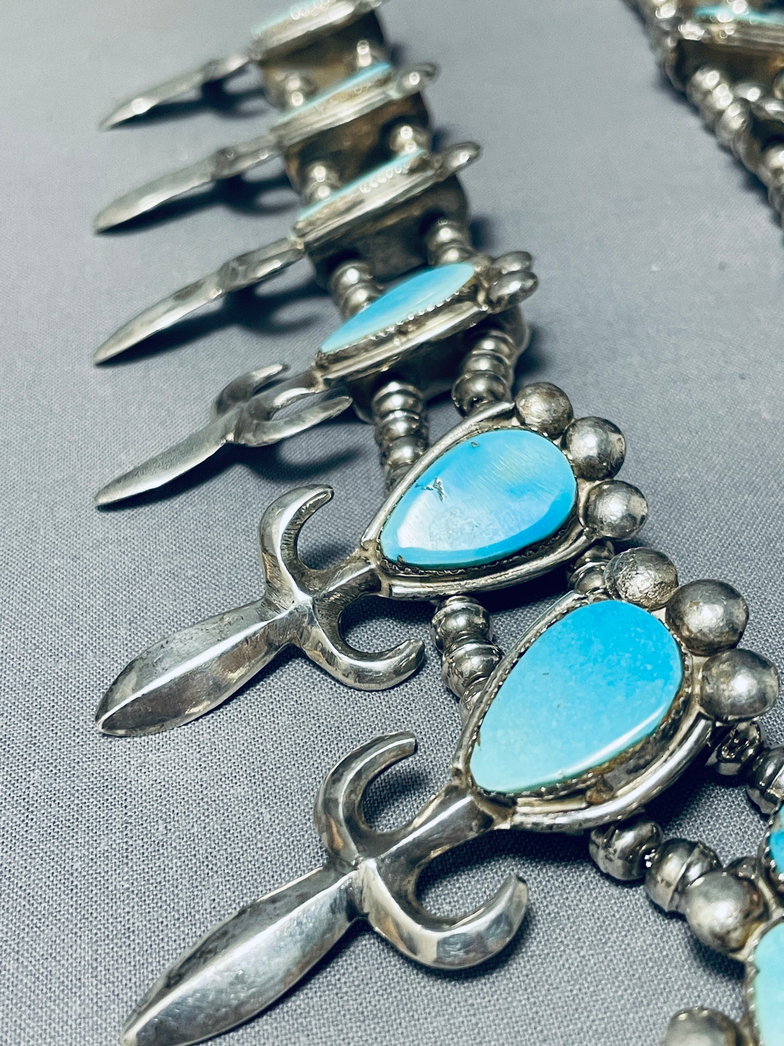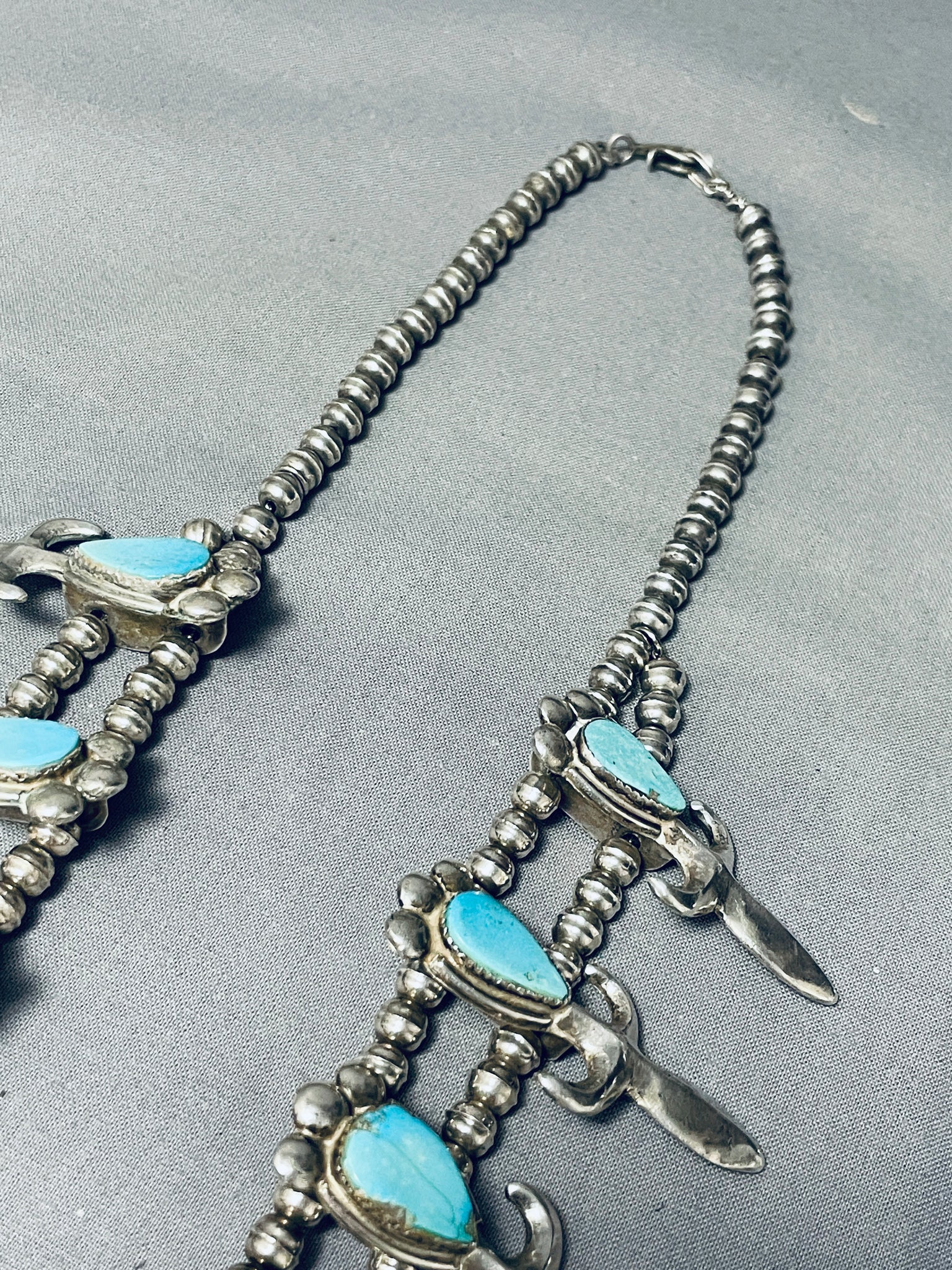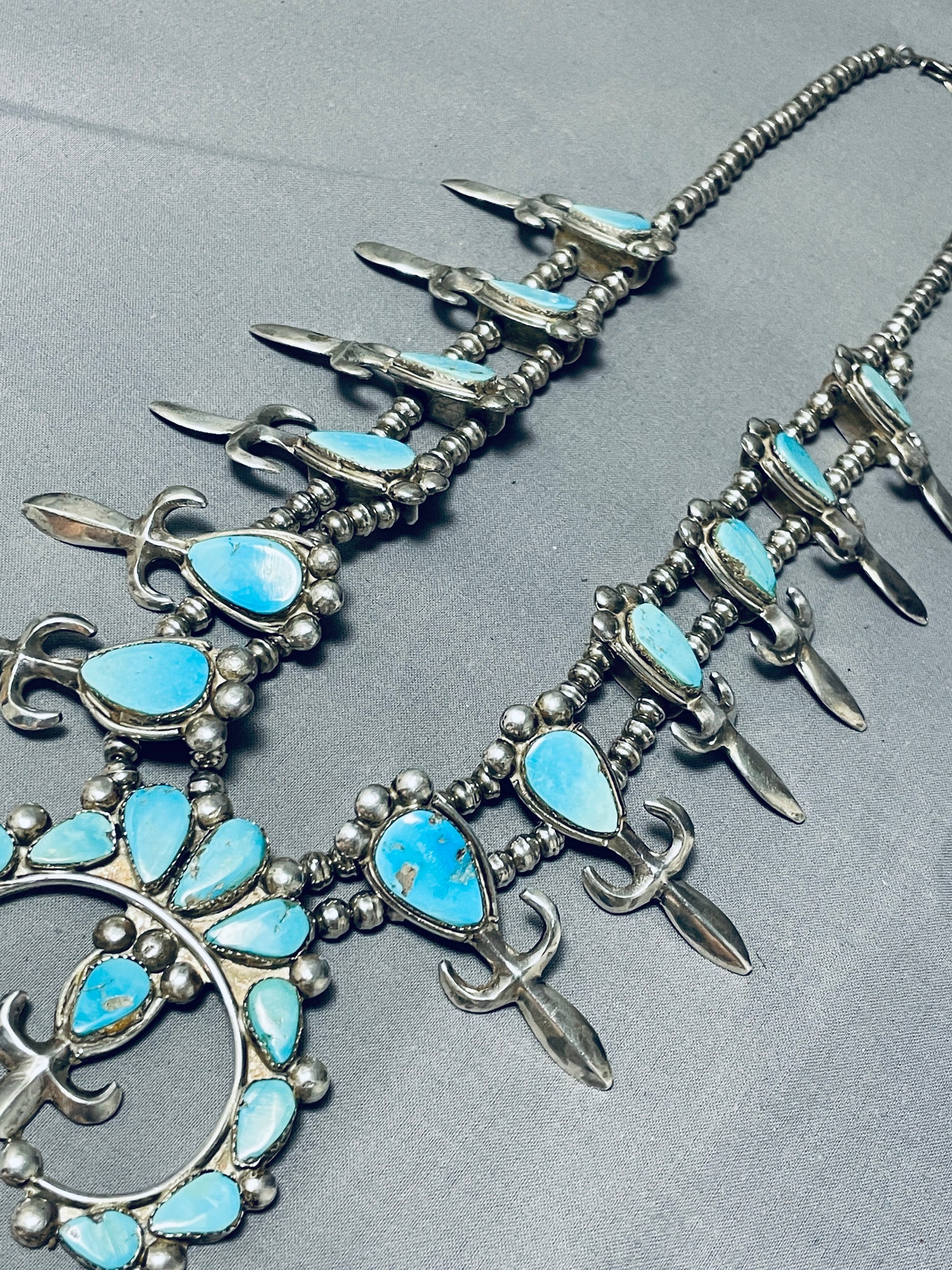One Of The Best Vintage Native American Navajo Turquoise Sterling Silver Squash Blossom Necklace