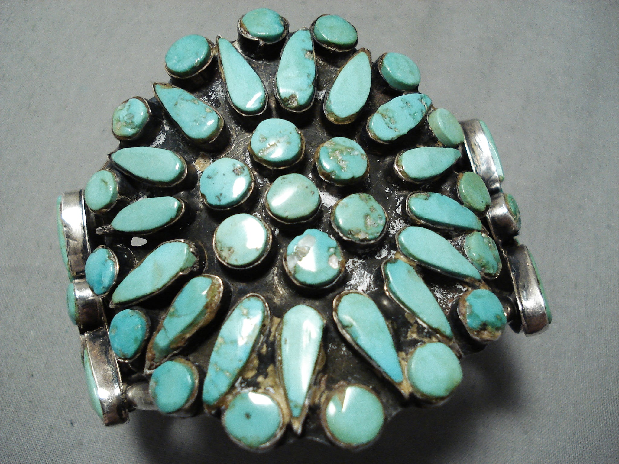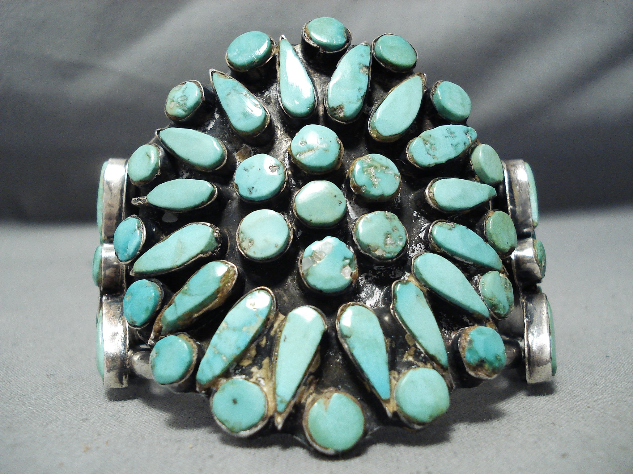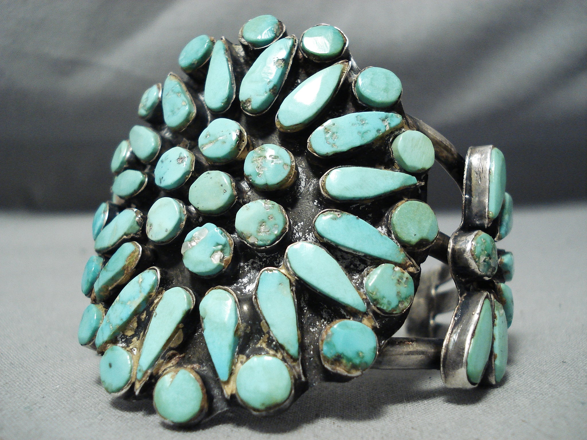 One Of The Best Vintage Native American Navajo Turquoise Sun Cluster Sterling Silver Bracelet