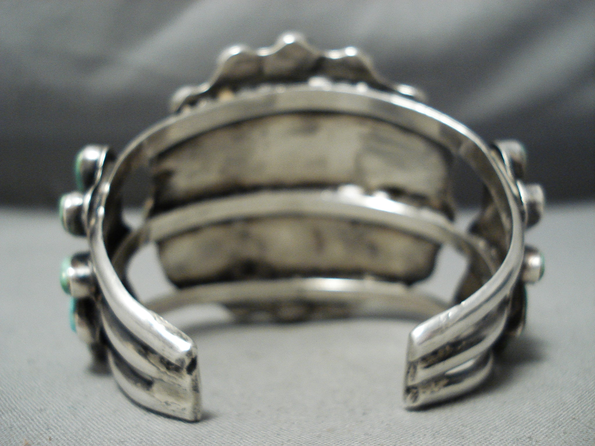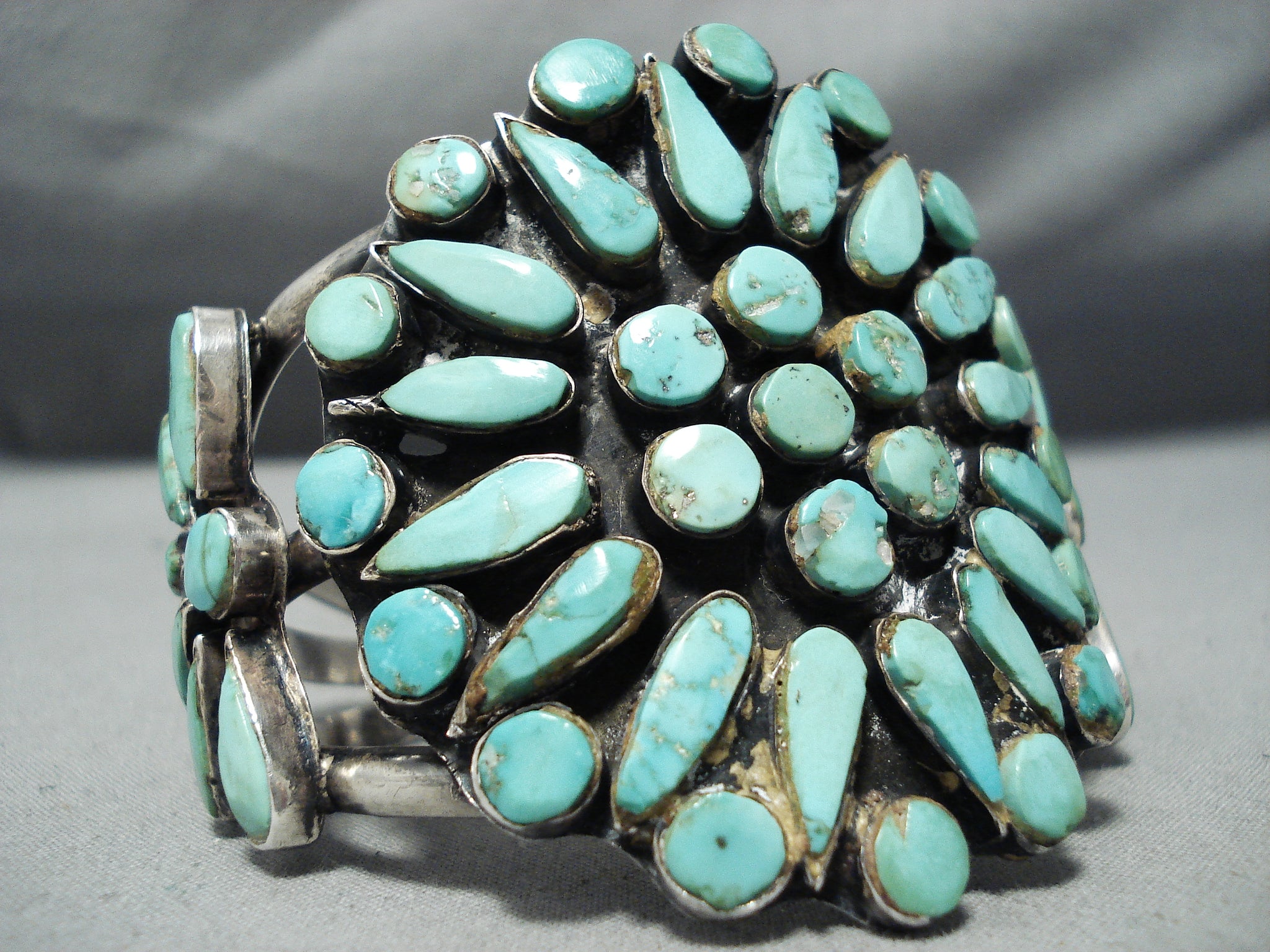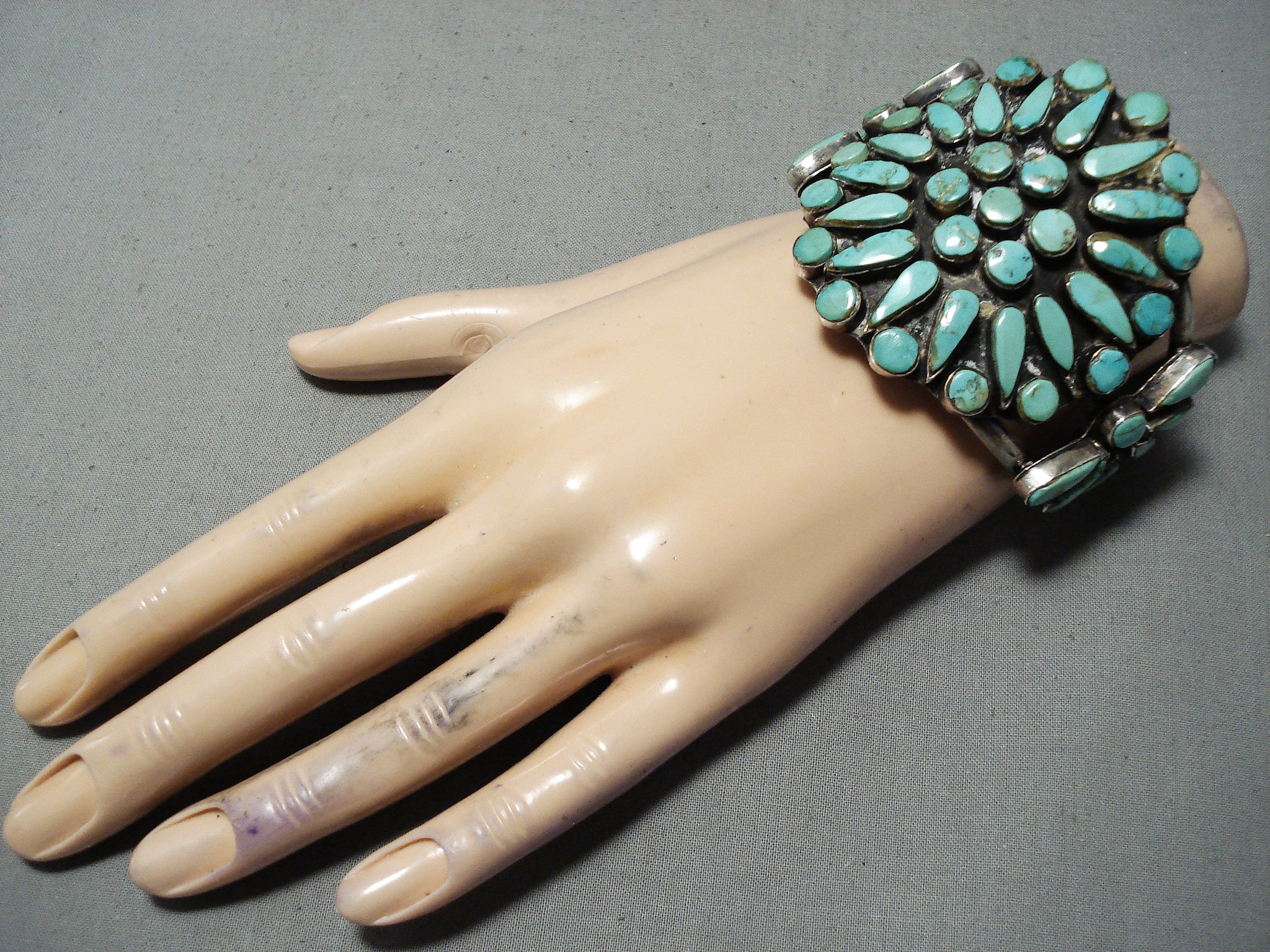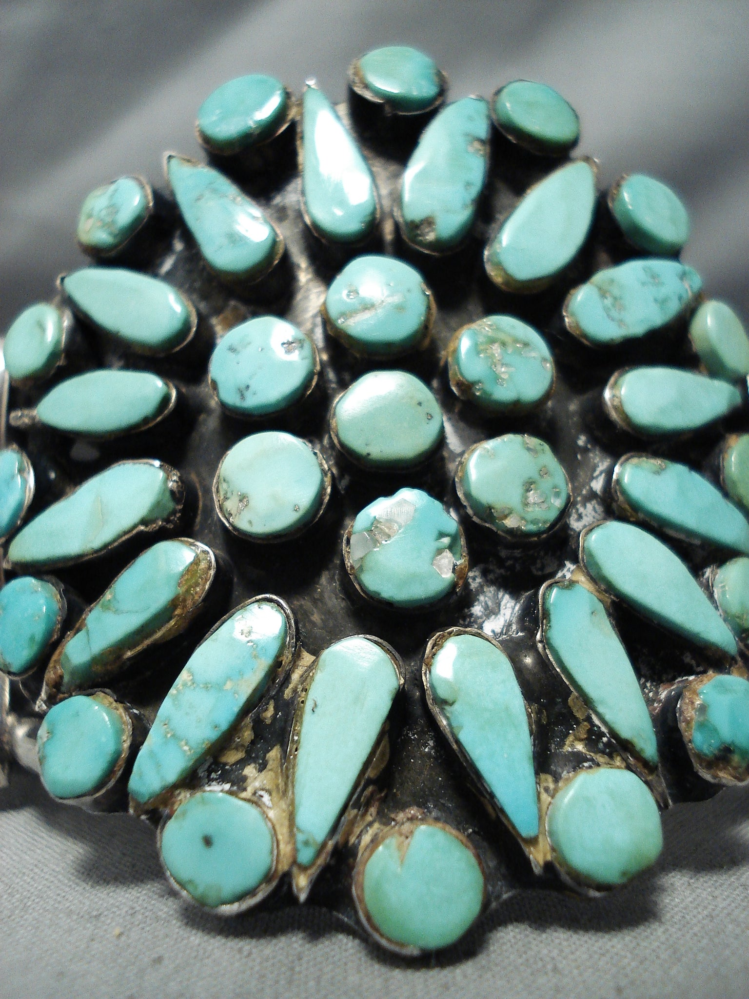 One Of The Best Vintage Native American Navajo Turquoise Sun Cluster Sterling Silver Bracelet