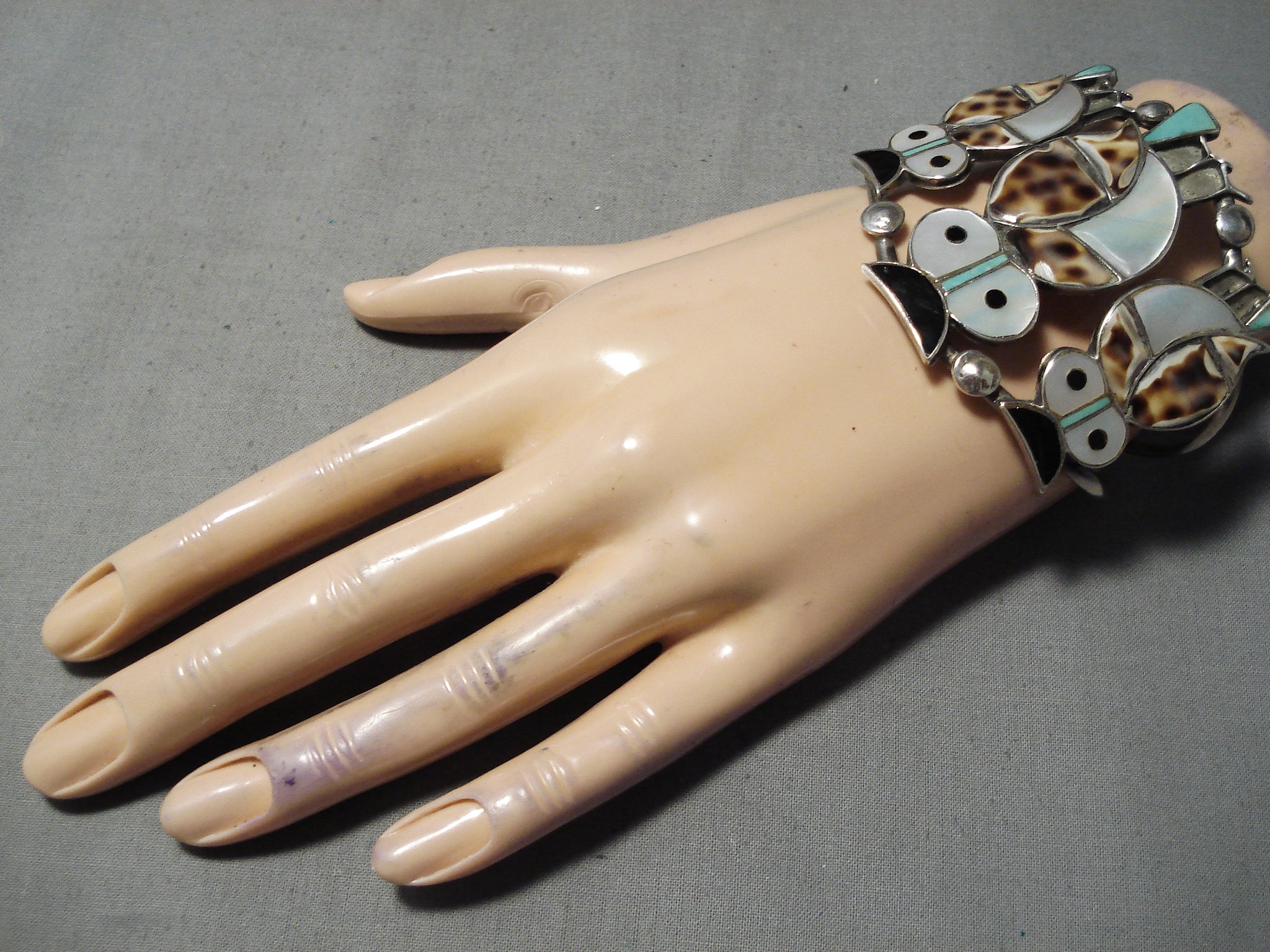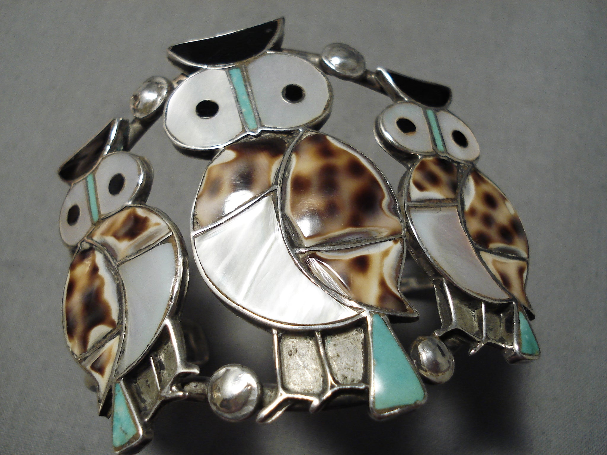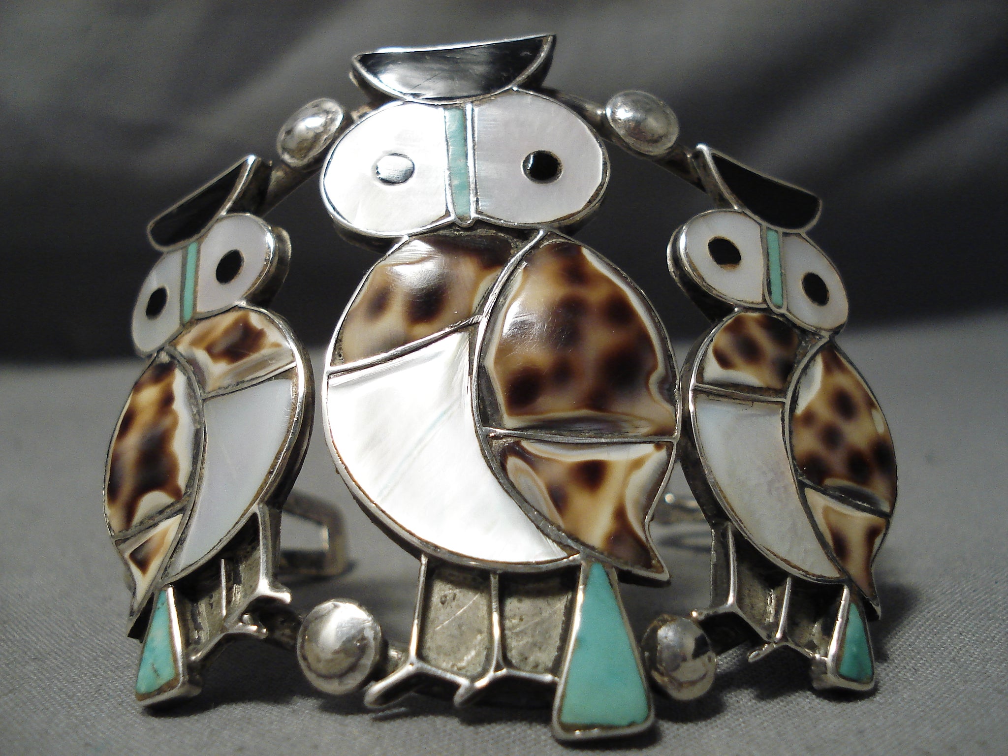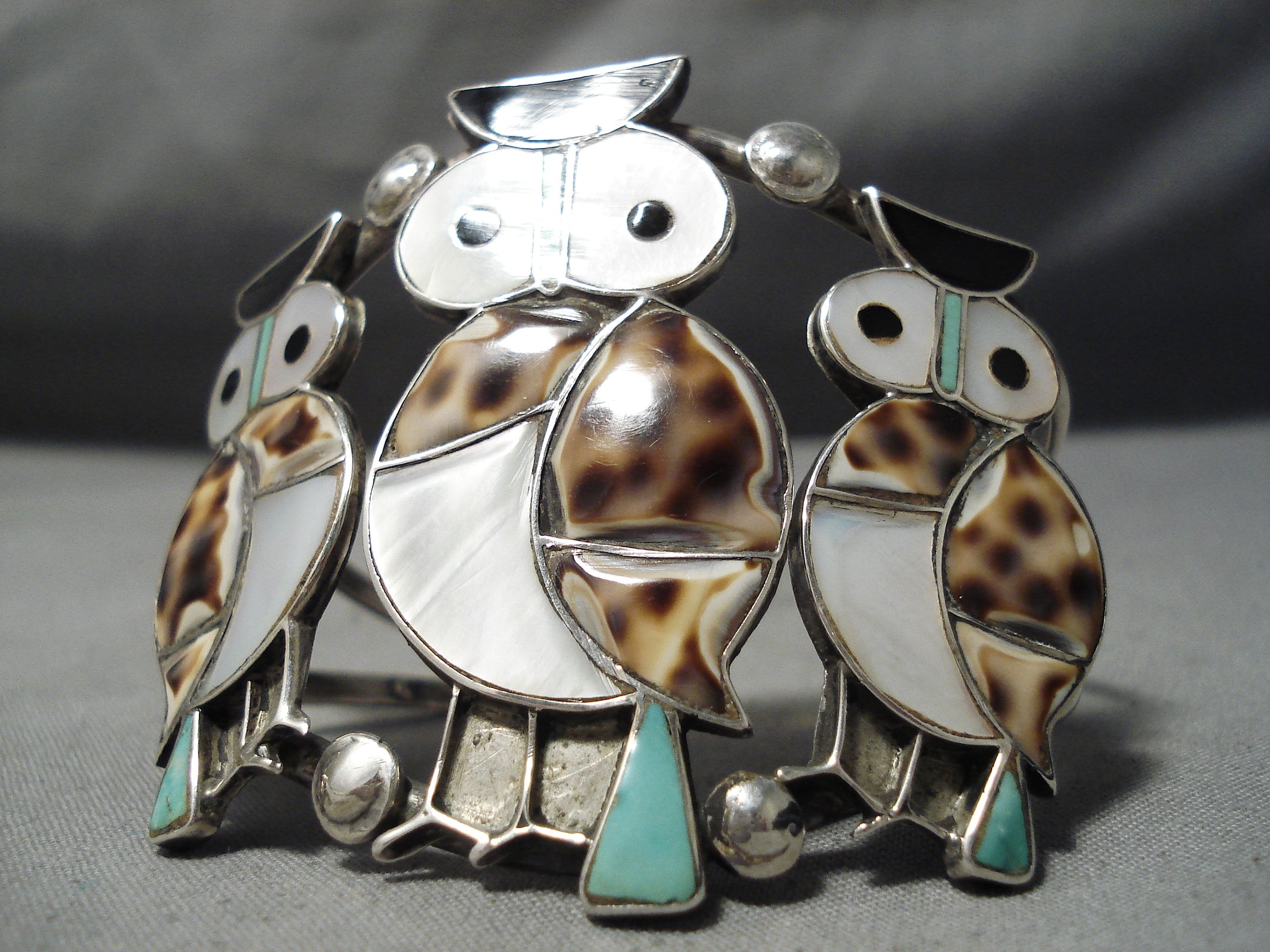 One Of The Best Vintage Native American Navajo Zuni Turquoise Sterling Silver Owl Bracelet