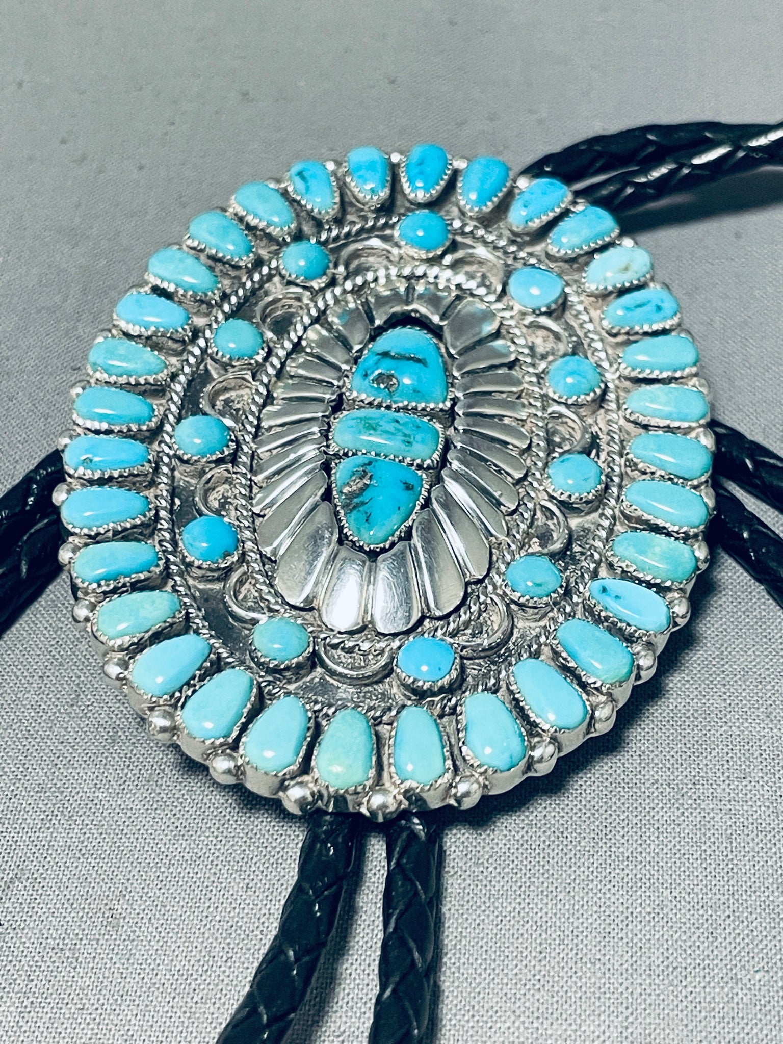 One Of The Best Vintage Native American Zuni Blue Gem Turquoise Sterling Silver Bolo Tie
