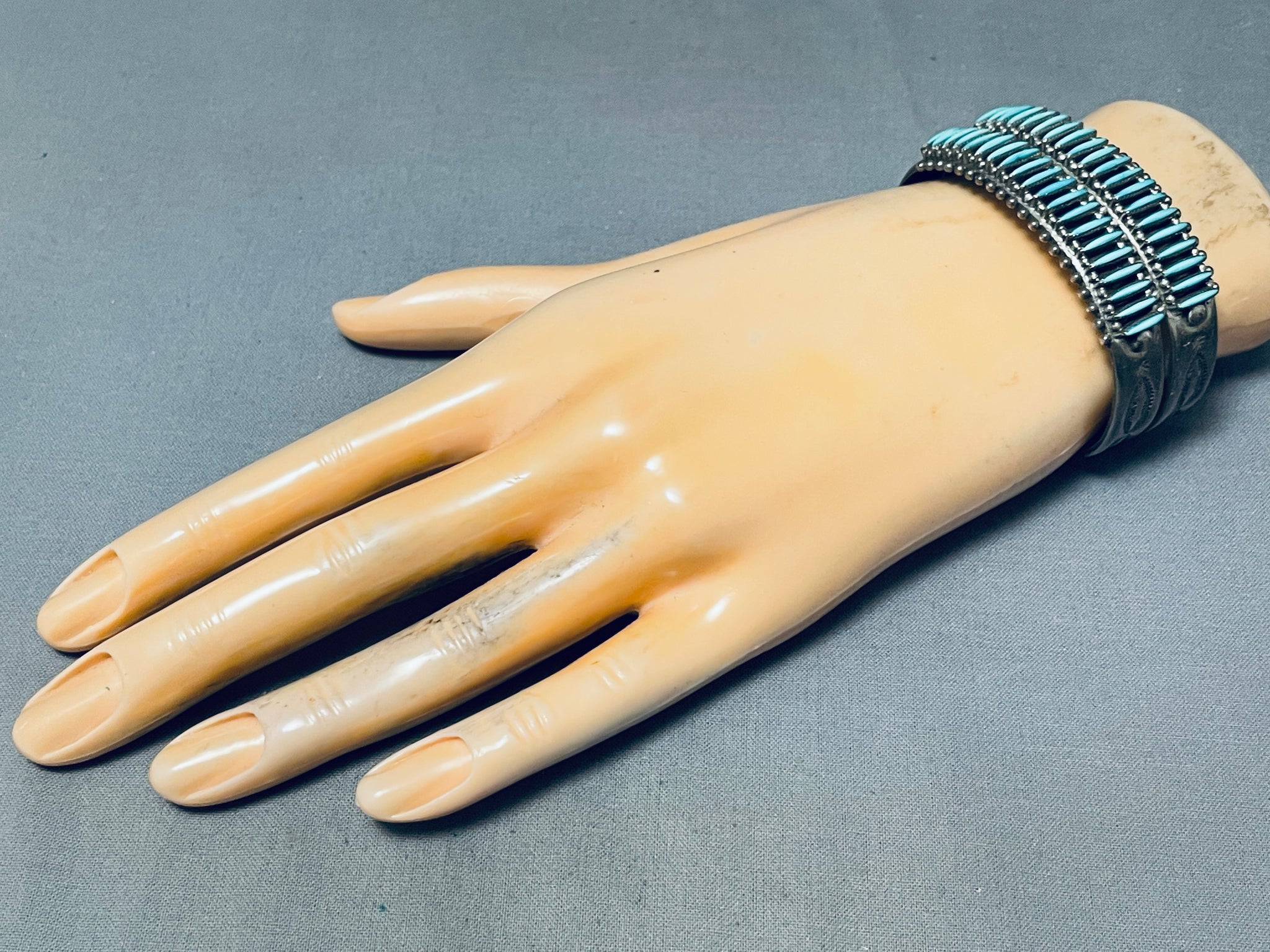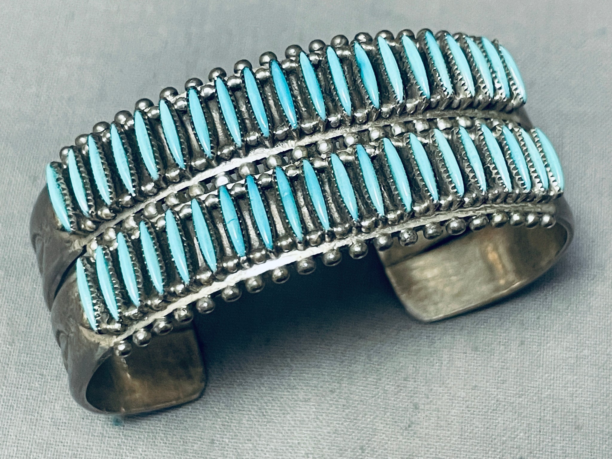 One Of The Best Vintage Native American Zuni Needle Turquoise Sterling Silver Bracelet