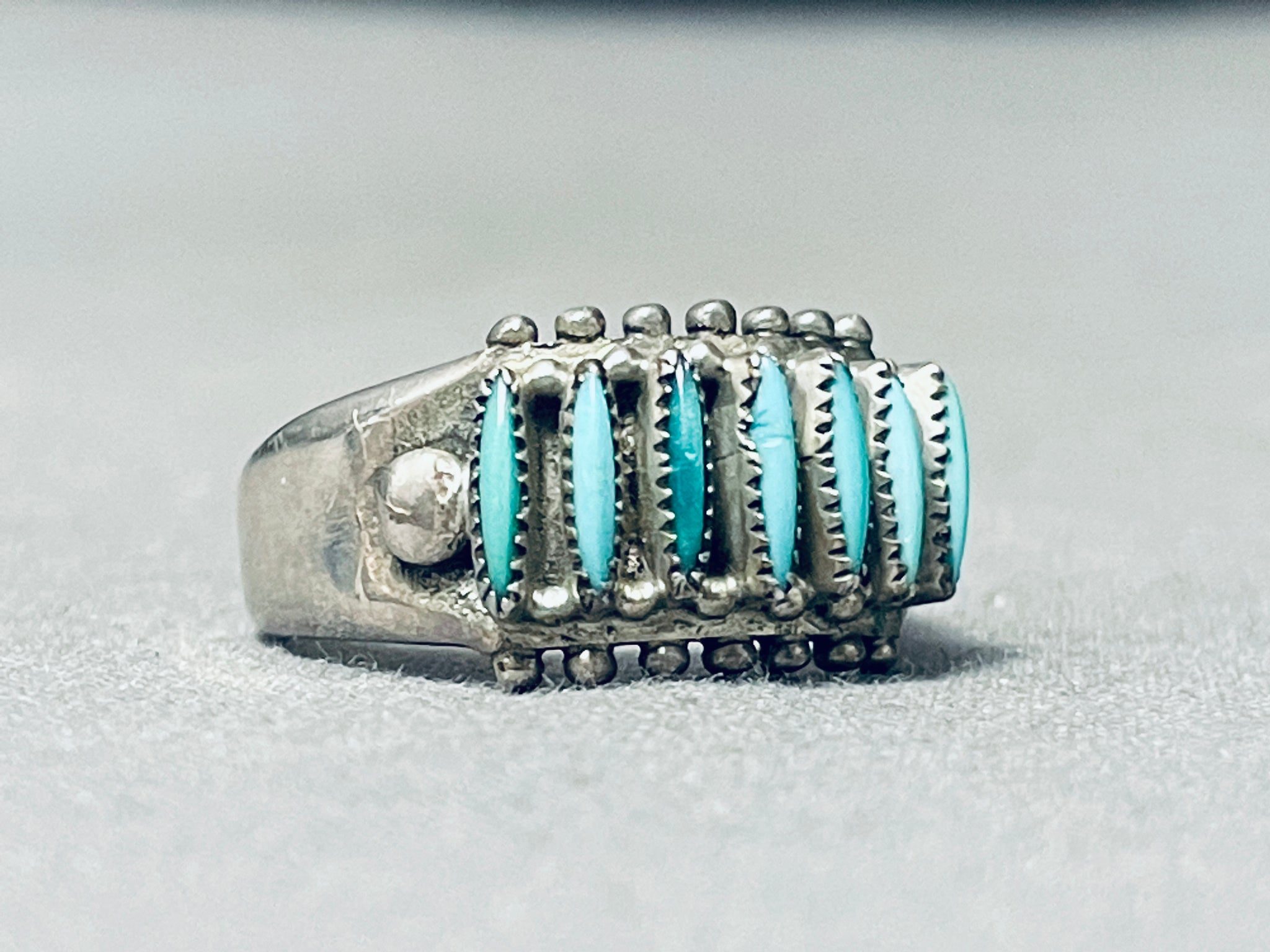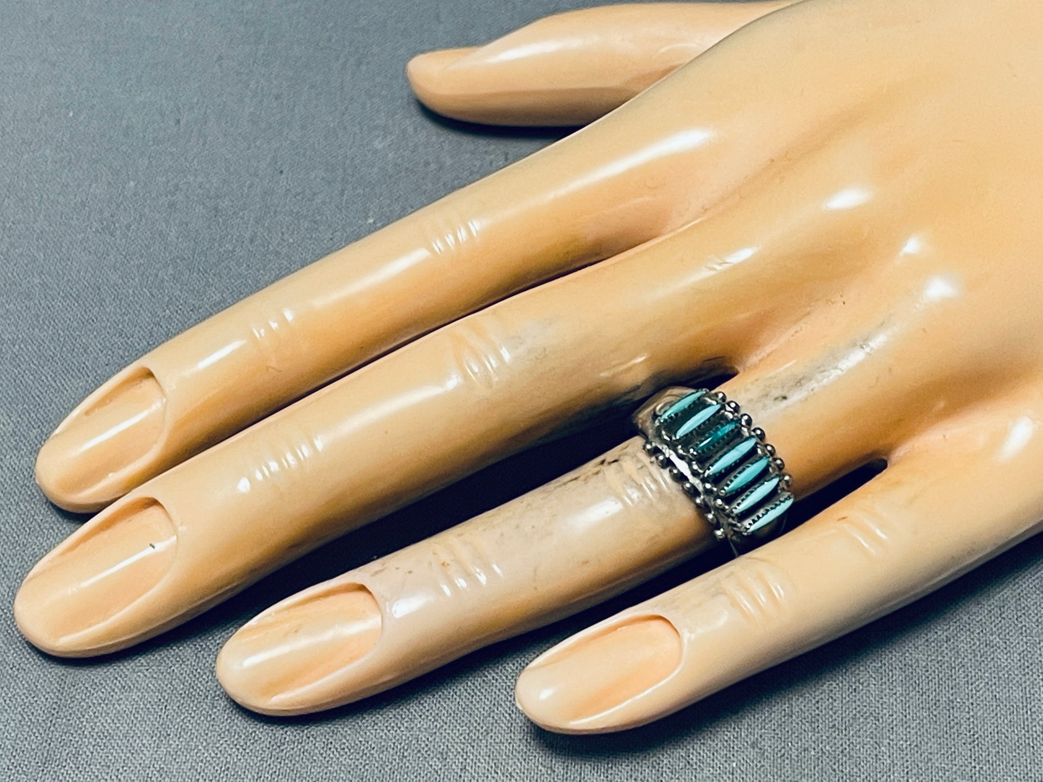 One Of The Best Vintage Native American Zuni Needle Turquoise Sterling Silver Ring Old