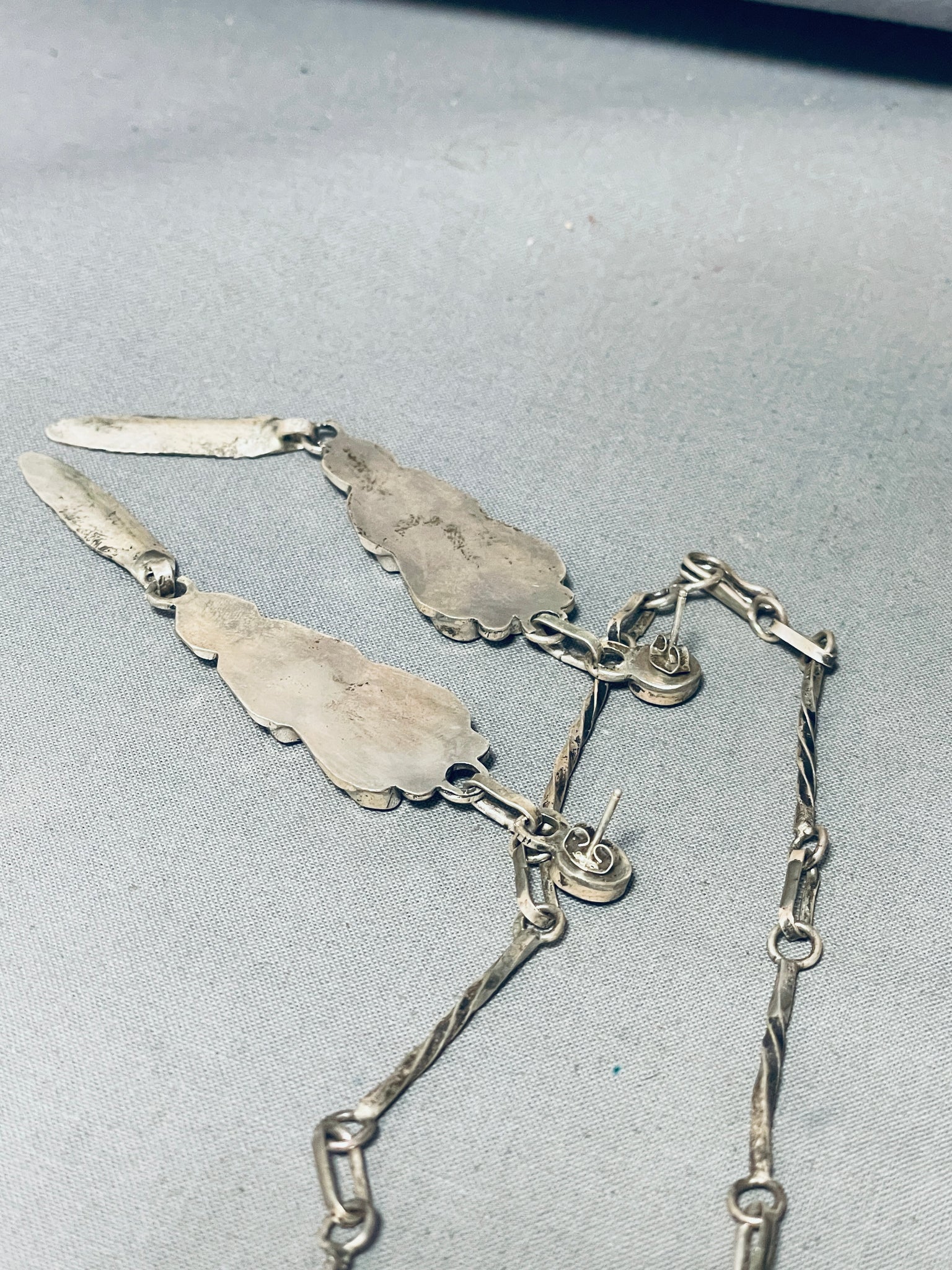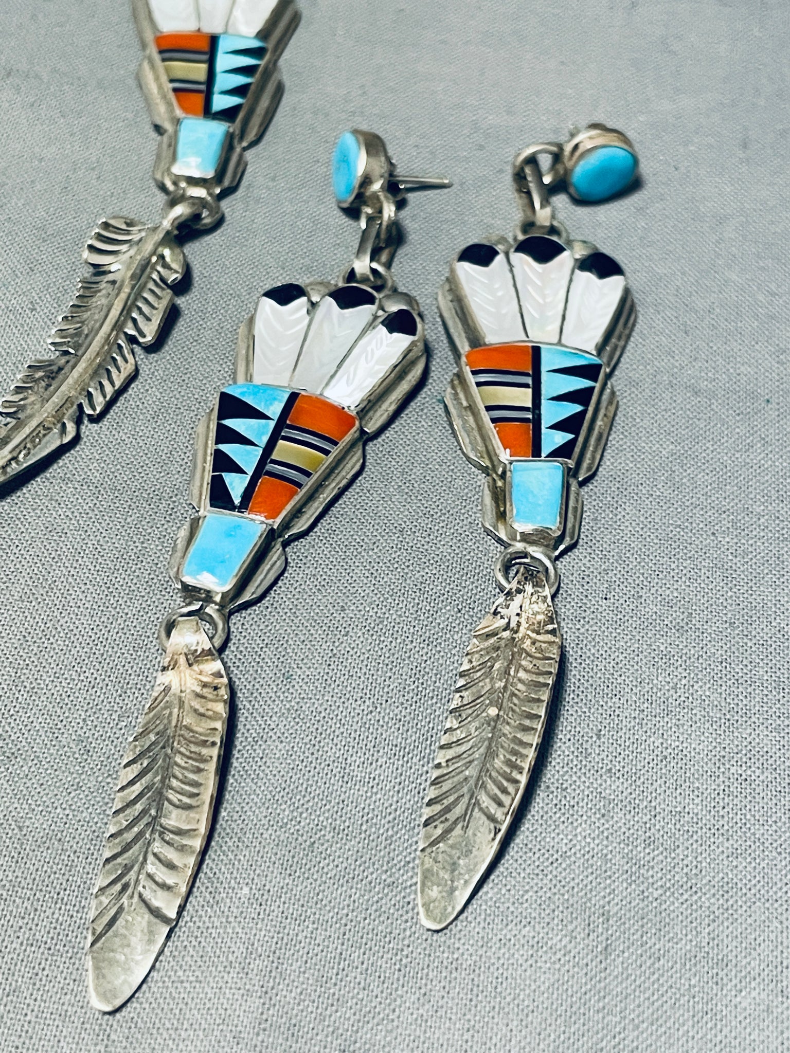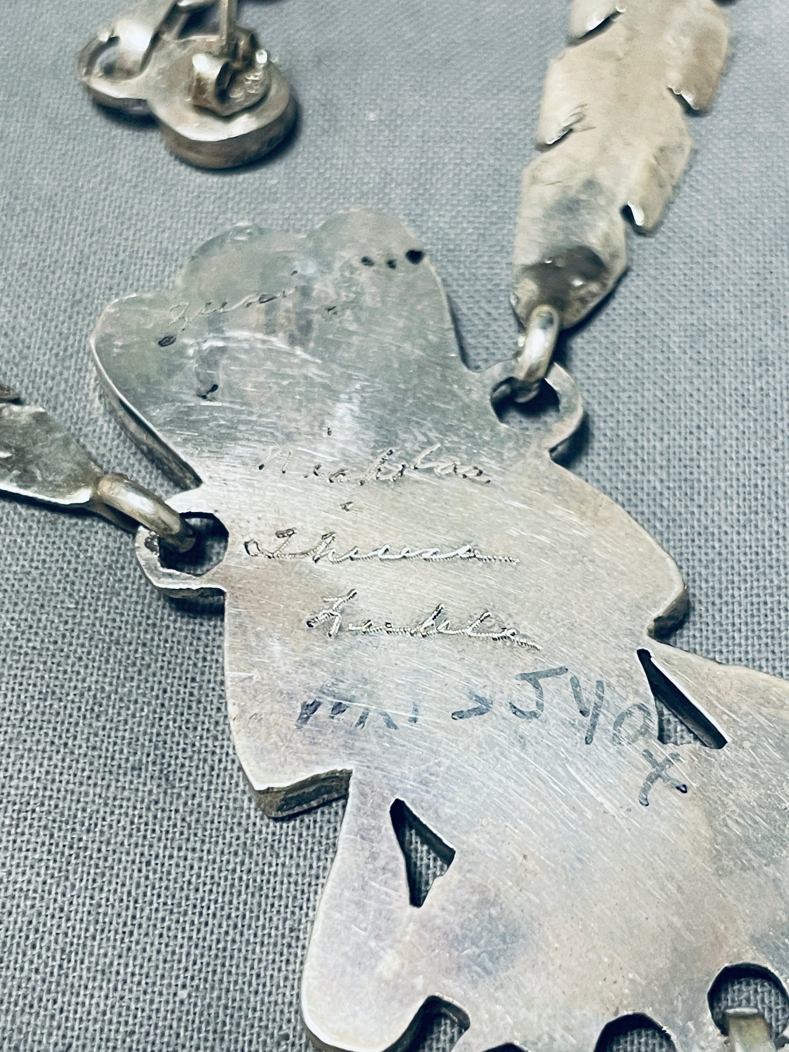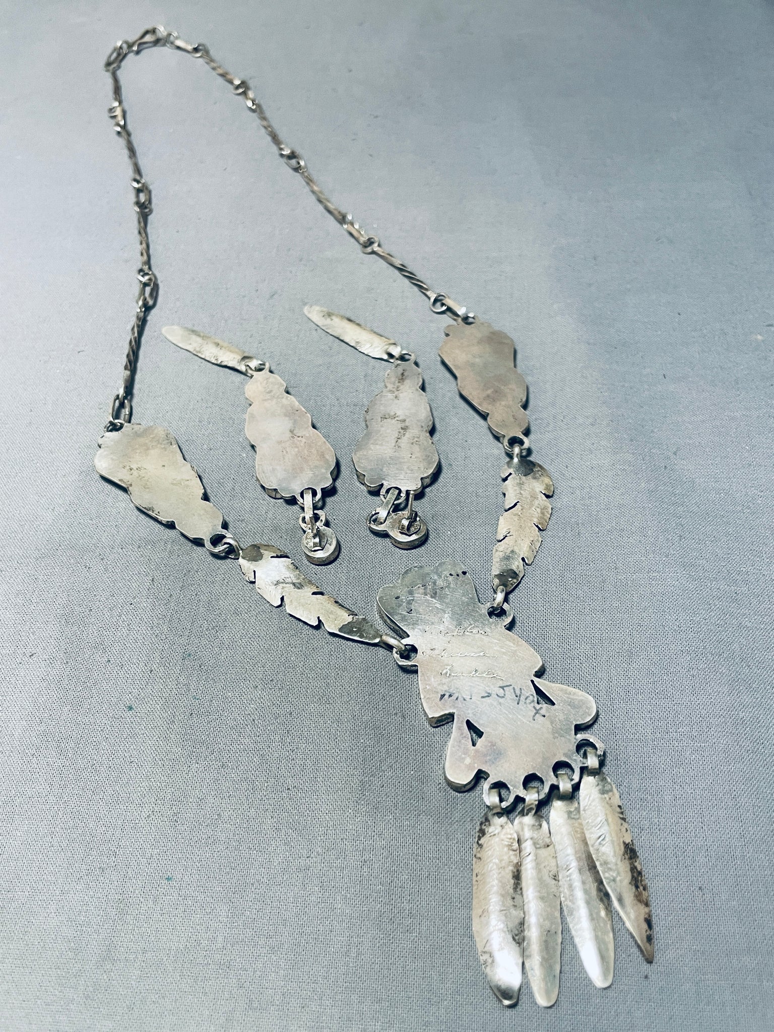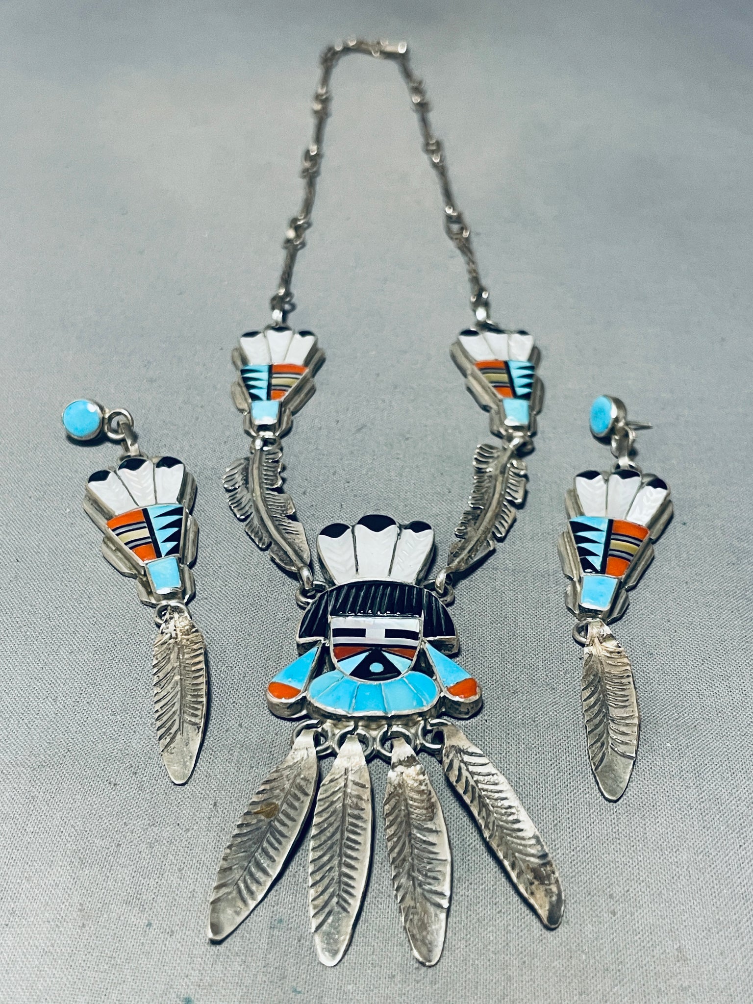 One Of The Best Vintage Native American Zuni Turquoise Inlay Kachina Sterling Silver Necklace