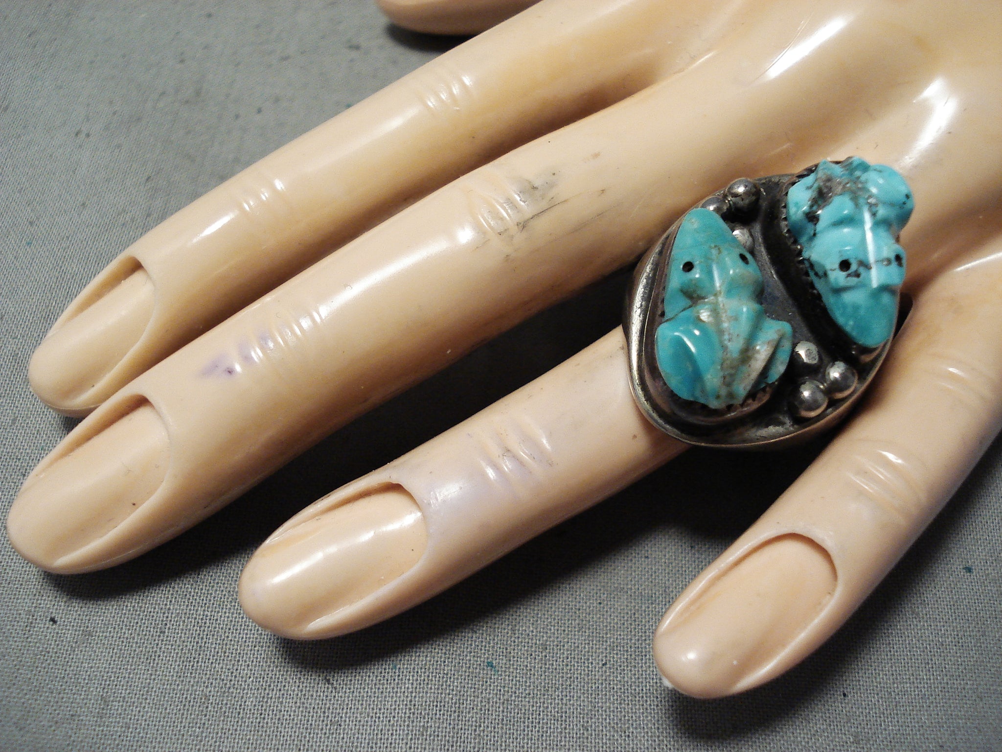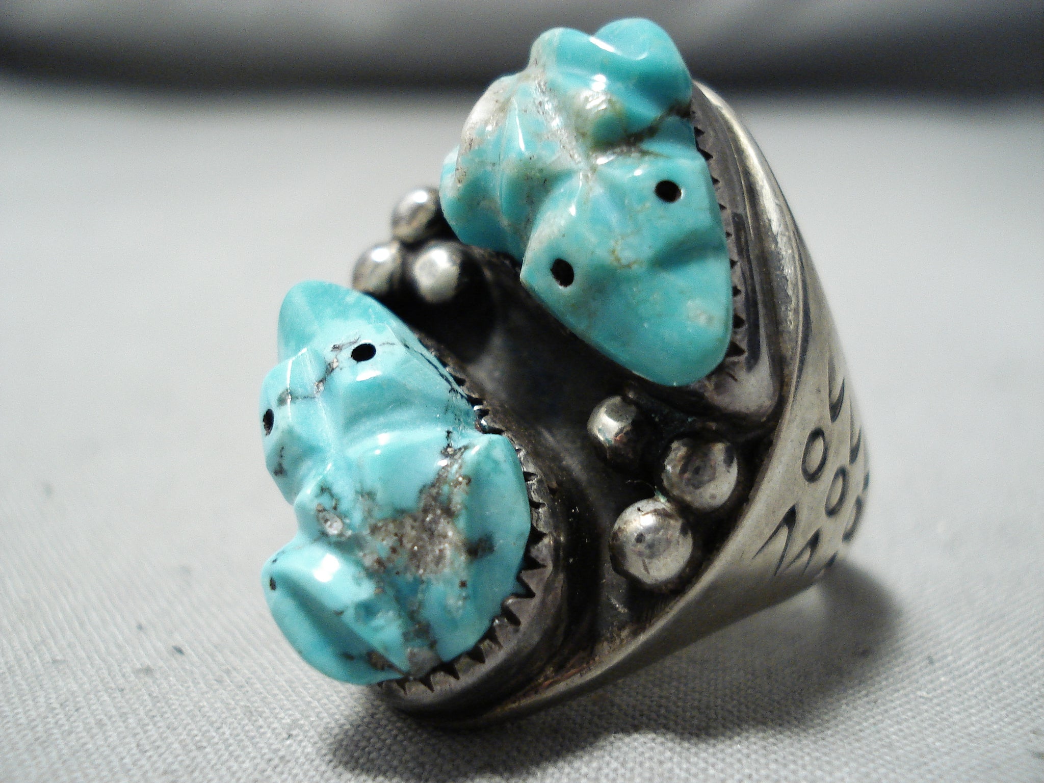One Of The Best Vintage Zuni/ Native American Navajo Turquoise Fetish Sterling Silver Ring