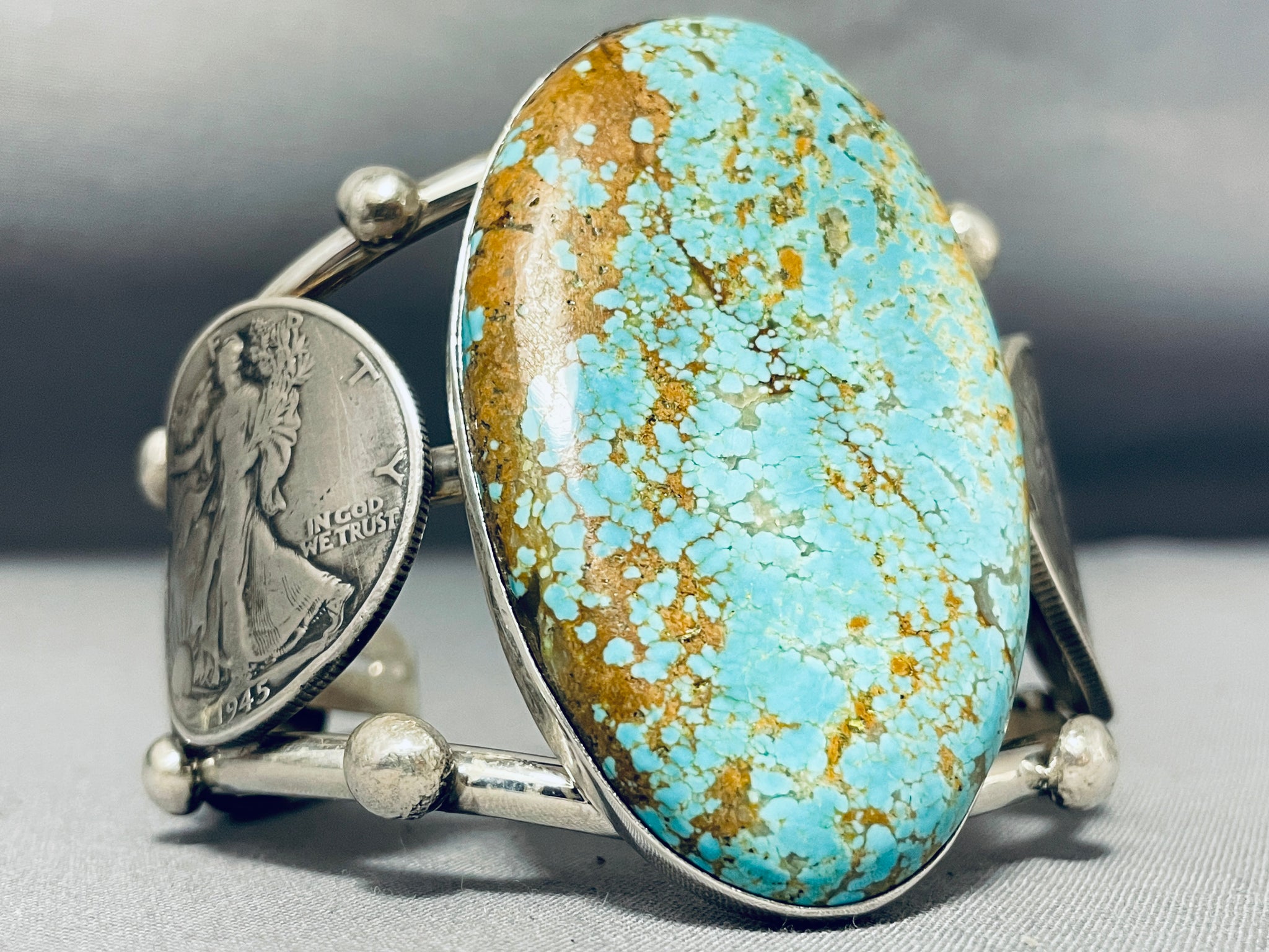 One Of The Biggest Best Native American #8 Turquoise Sterling Silver Bracelet