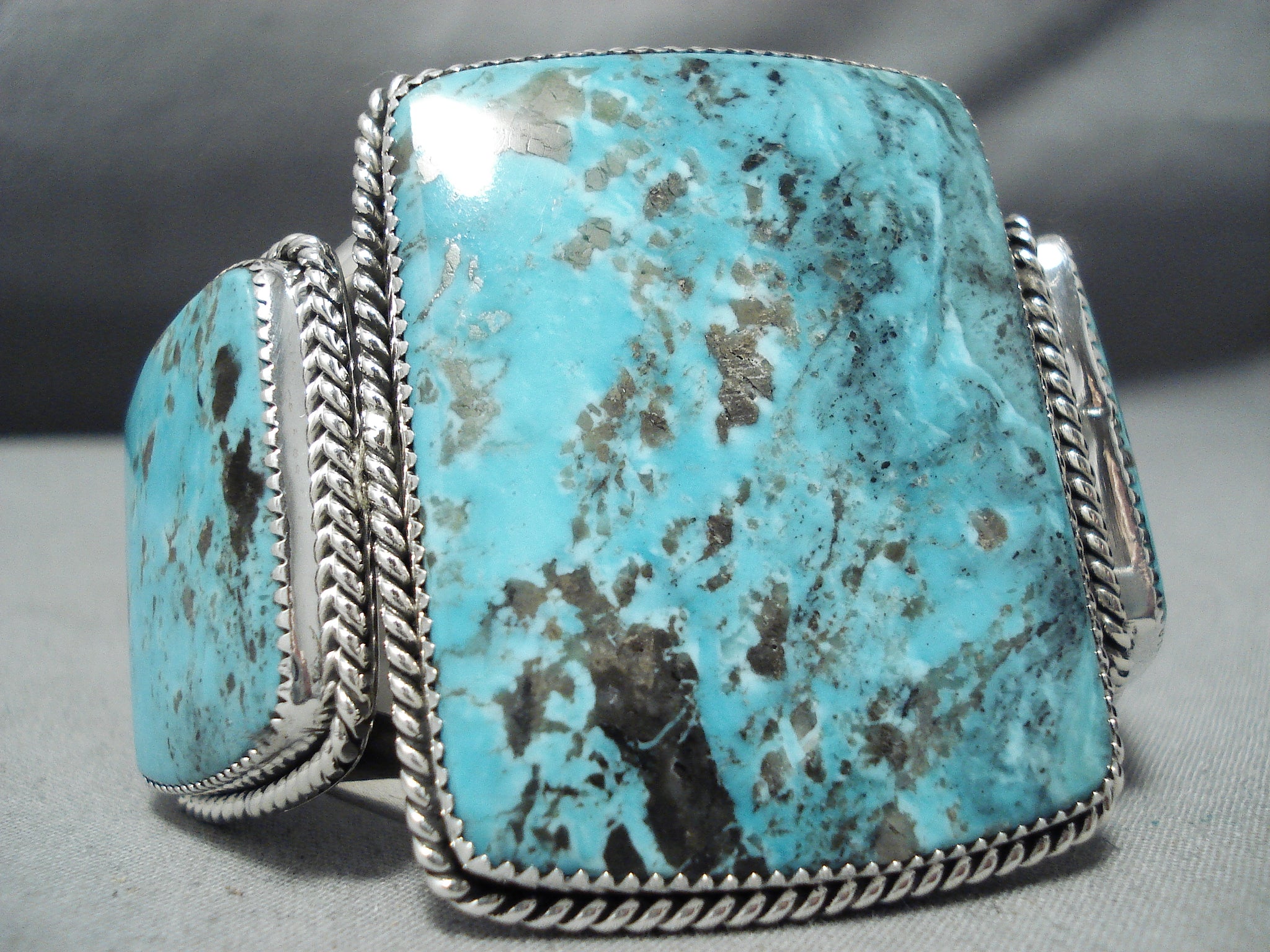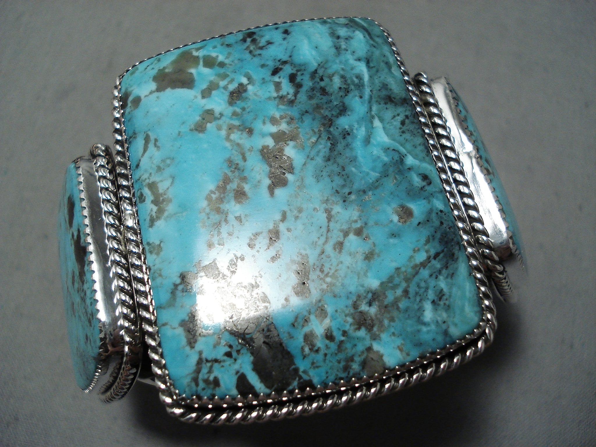 One Of The Biggest Craziest Native American Navajo Squared Turquoise Sterling Silver Bracelet