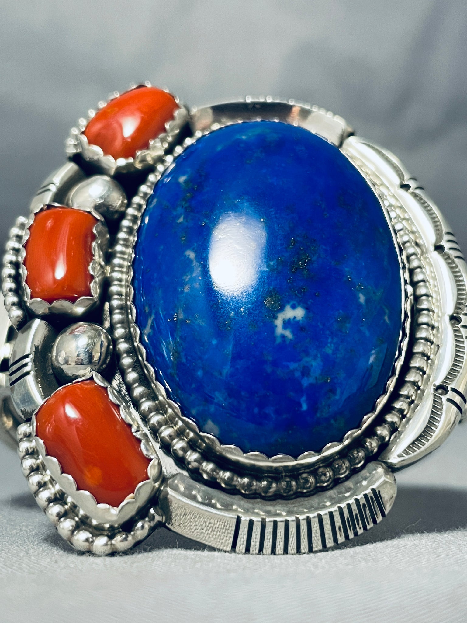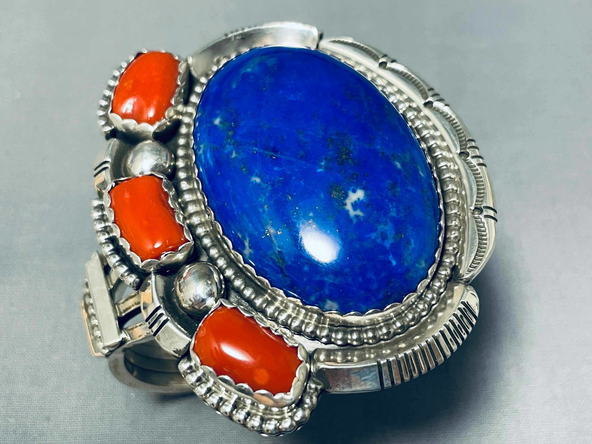 One Of The Biggest Most Unique Native American Navajo Lapis Coral Sterling Silver Bracelet