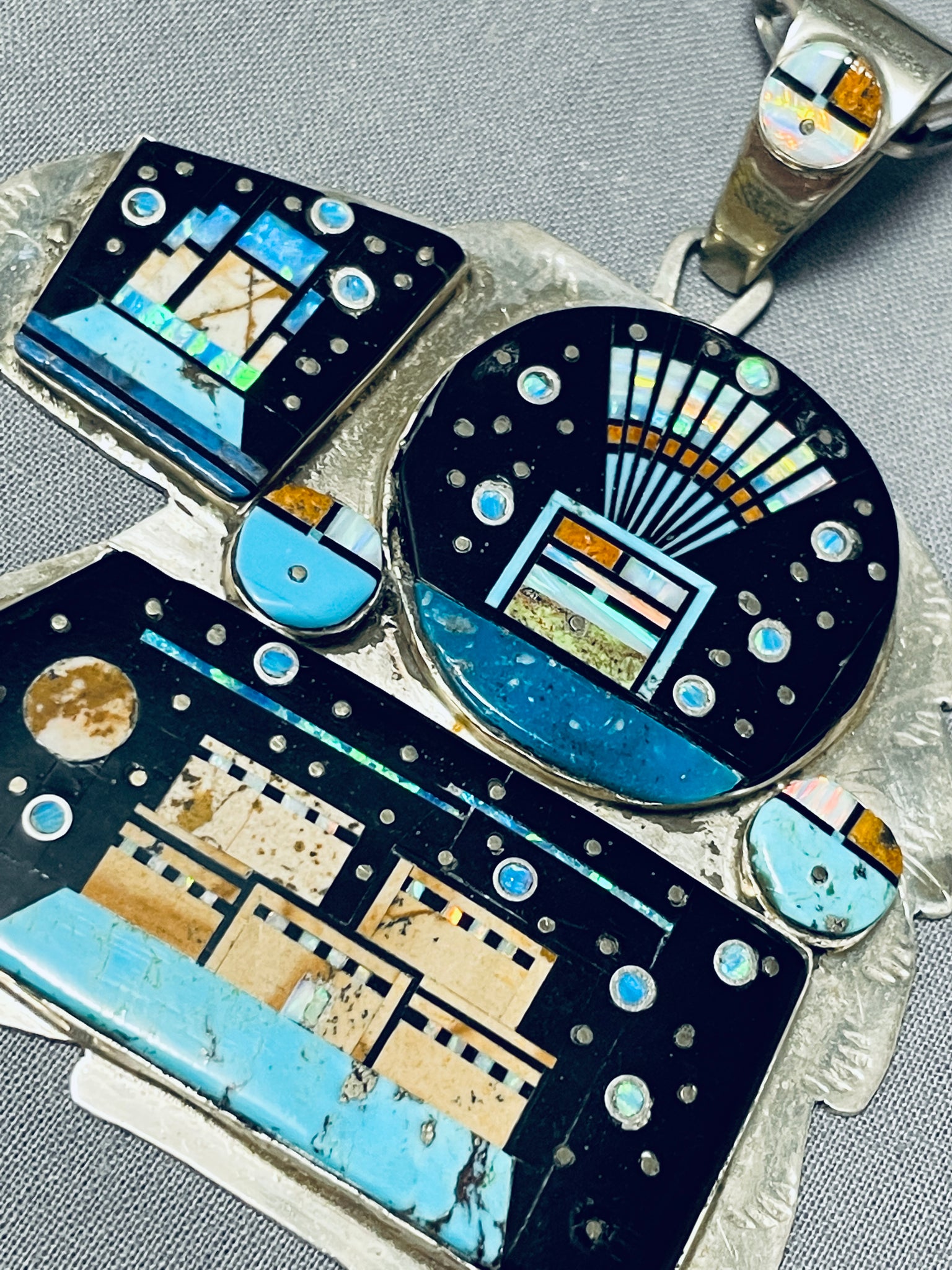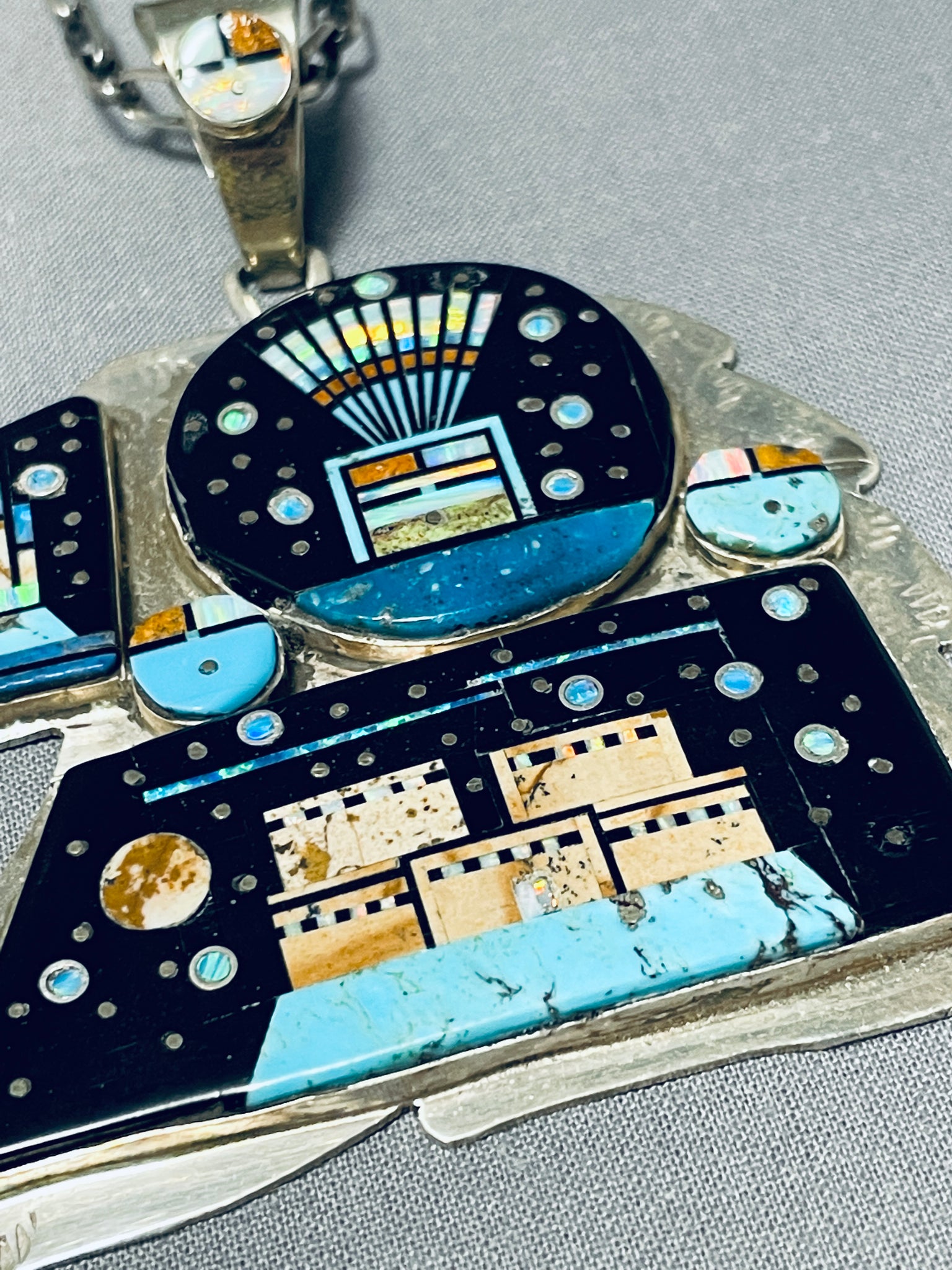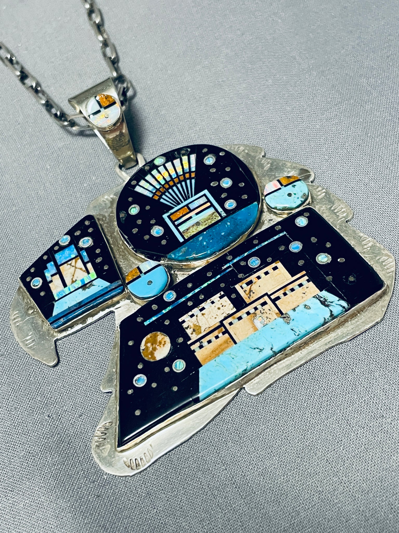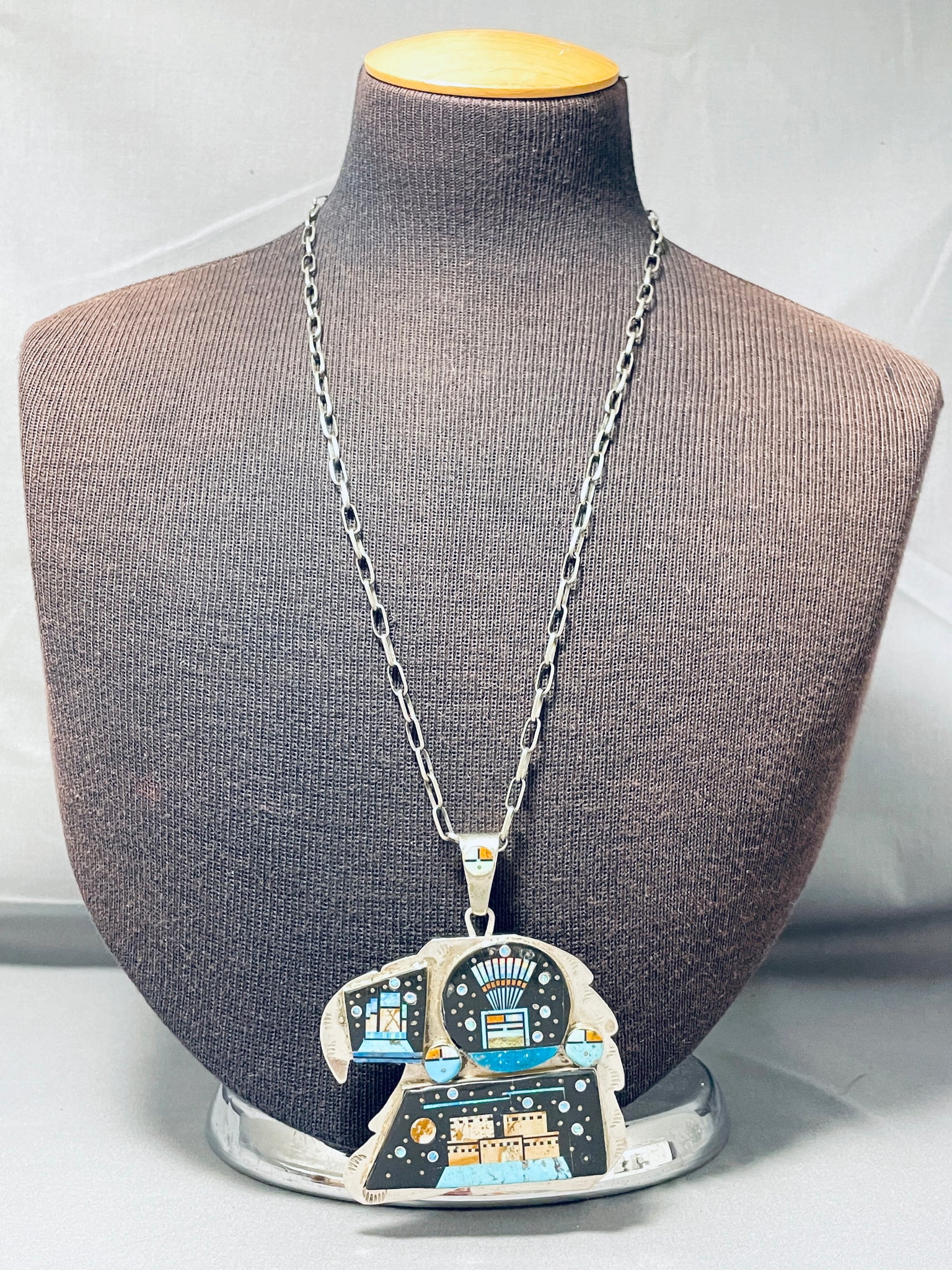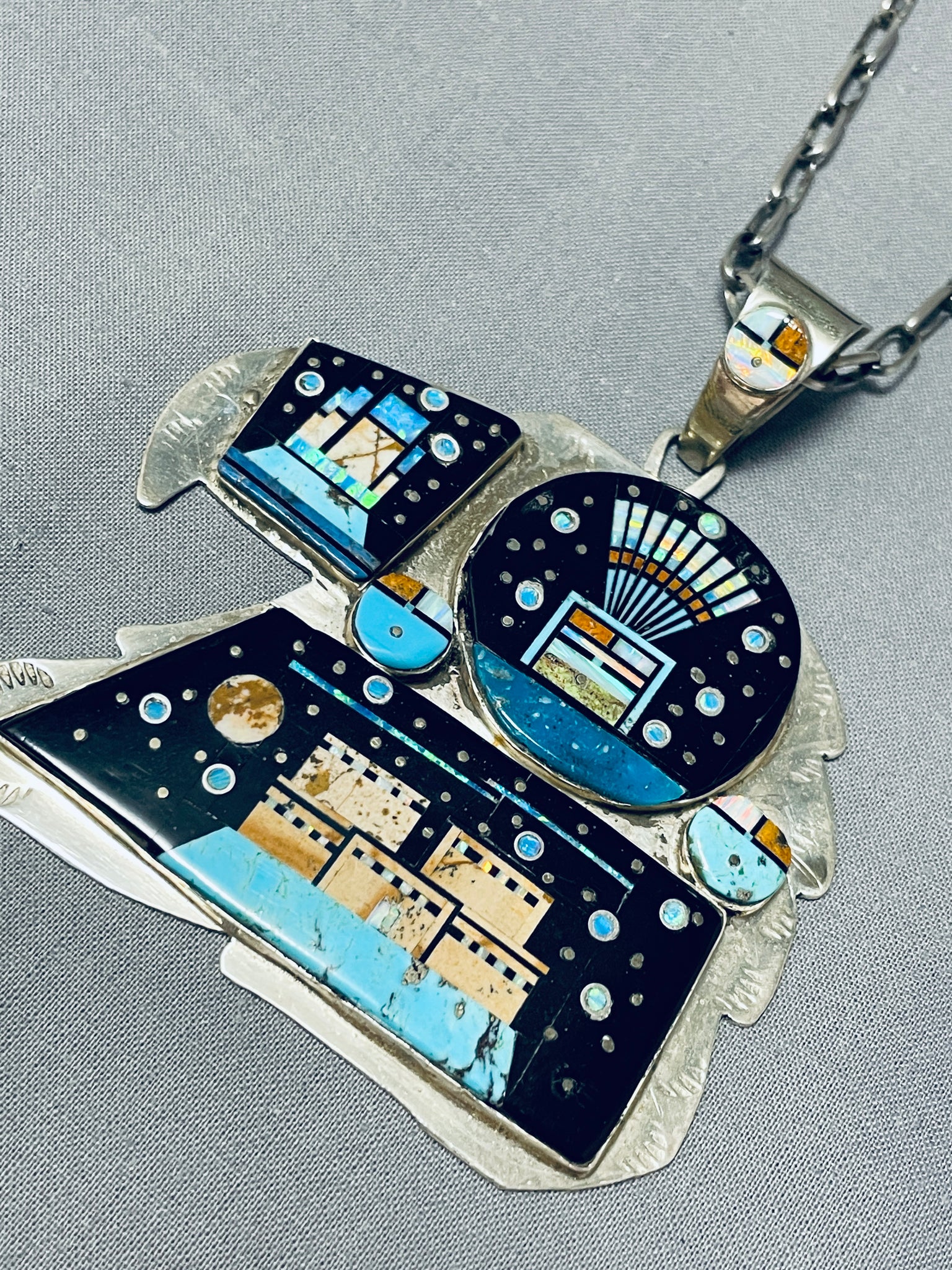 One Of The Biggest Native American Navajo Micro Inlay Turquoise Sterling Silver Necklace