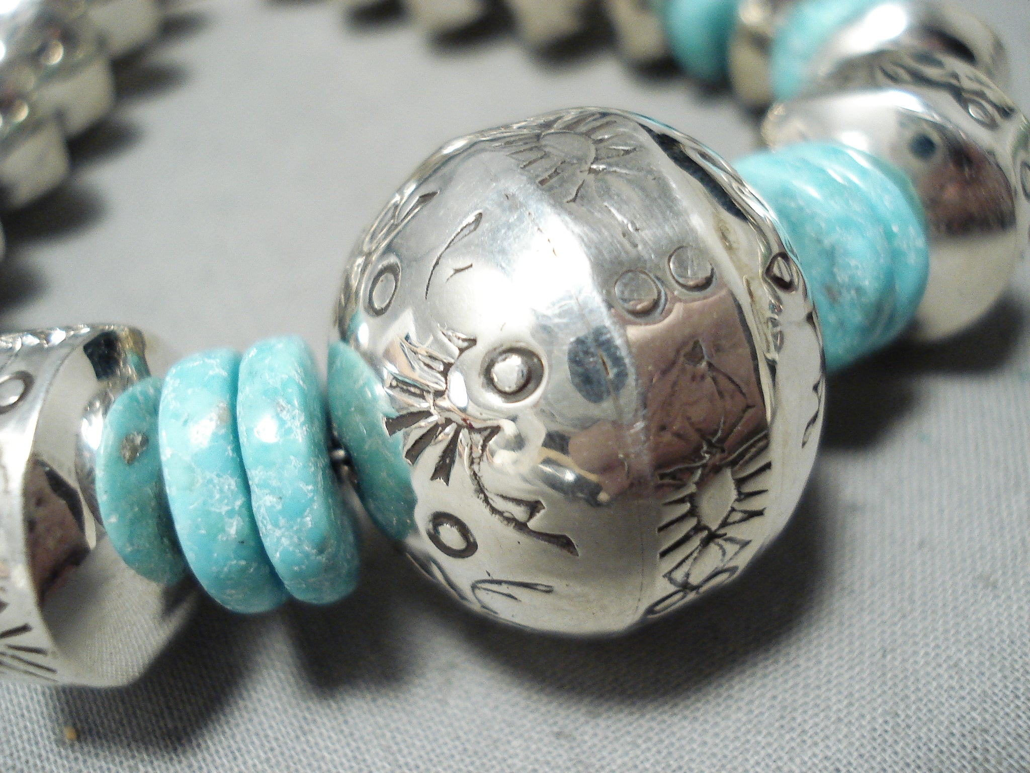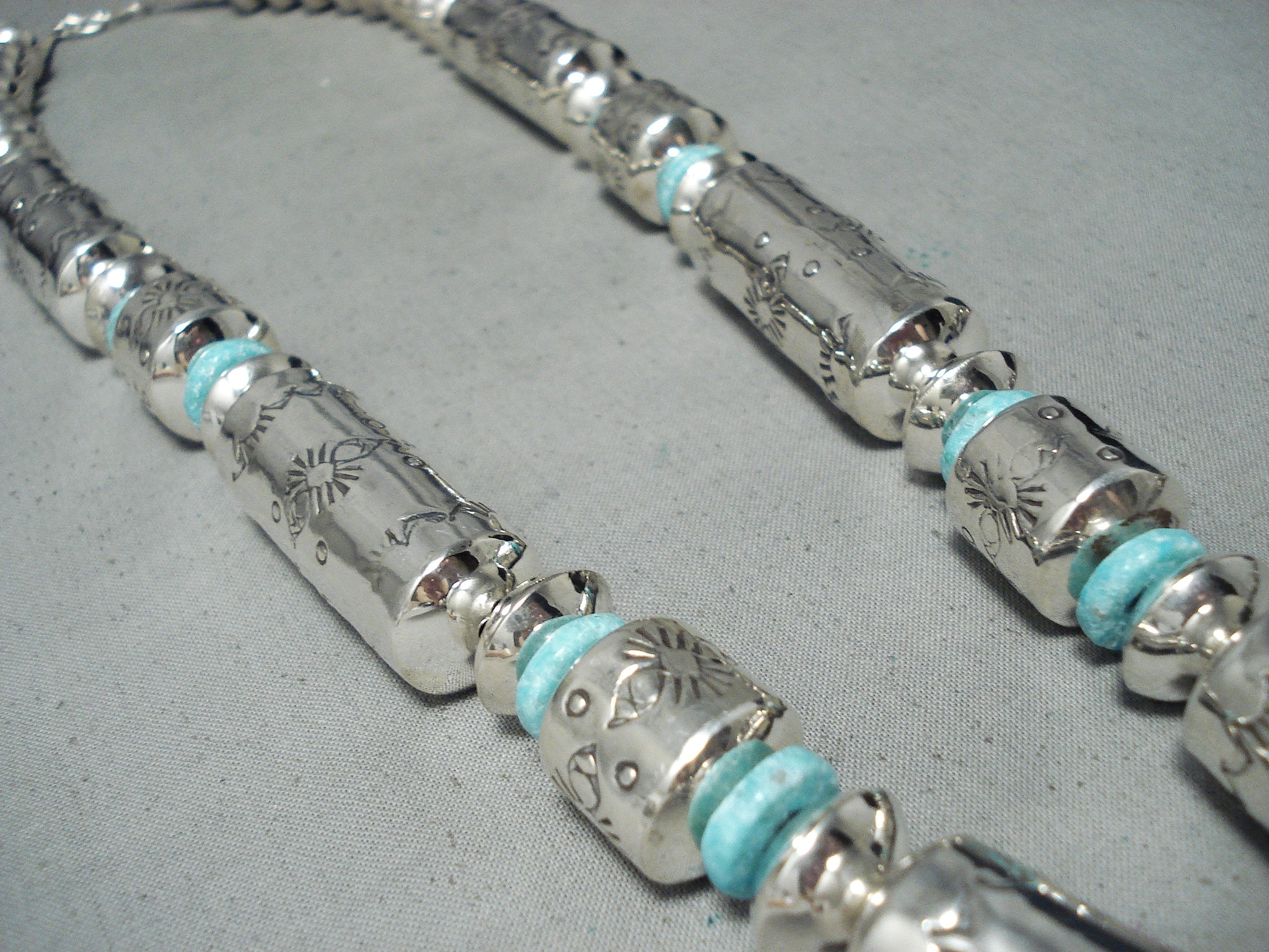 One Of The Biggest Native American Navajo Tubule Turquoise Sterling Silver Necklace