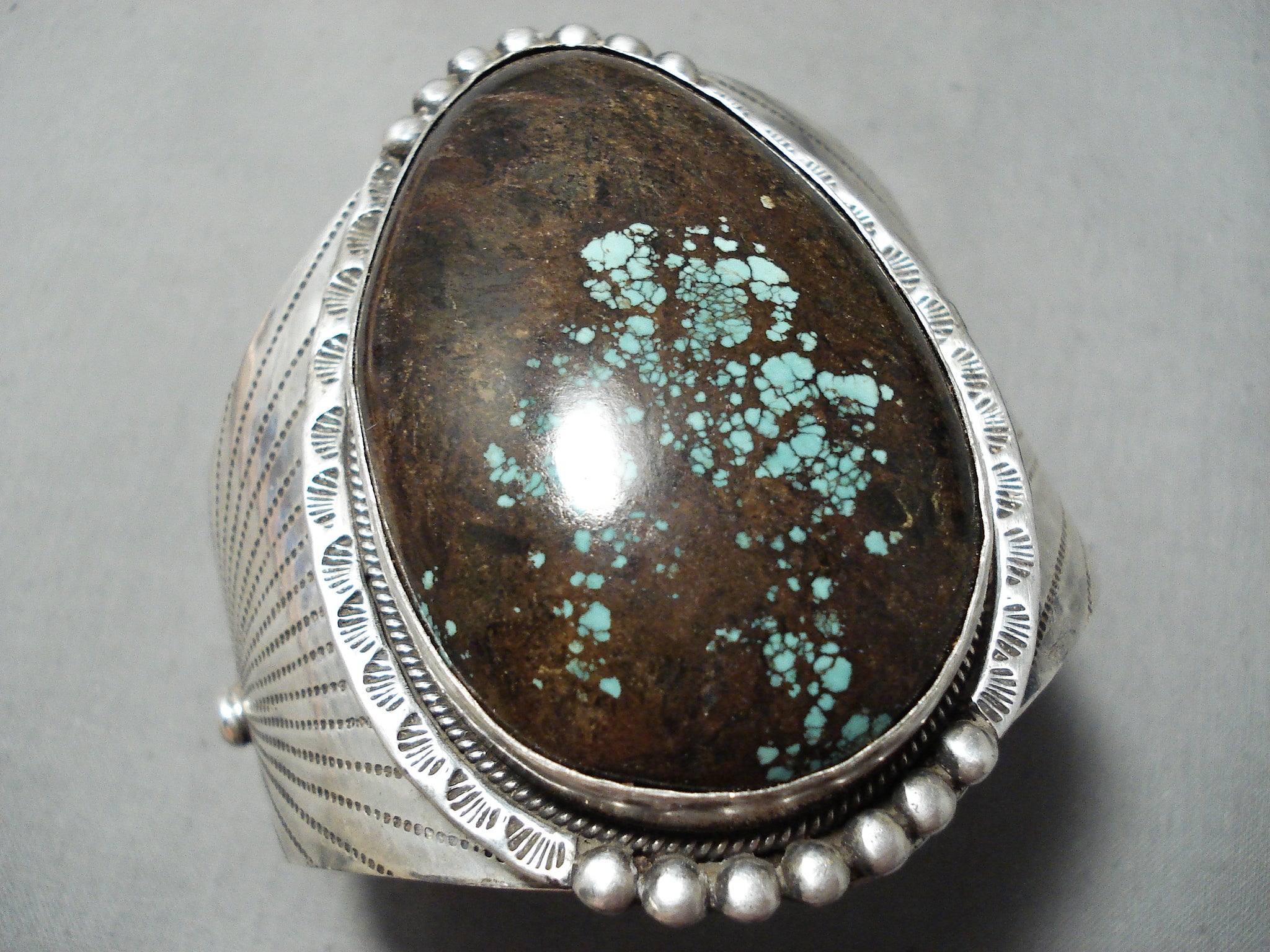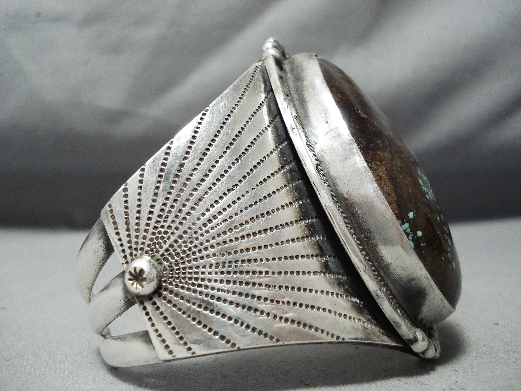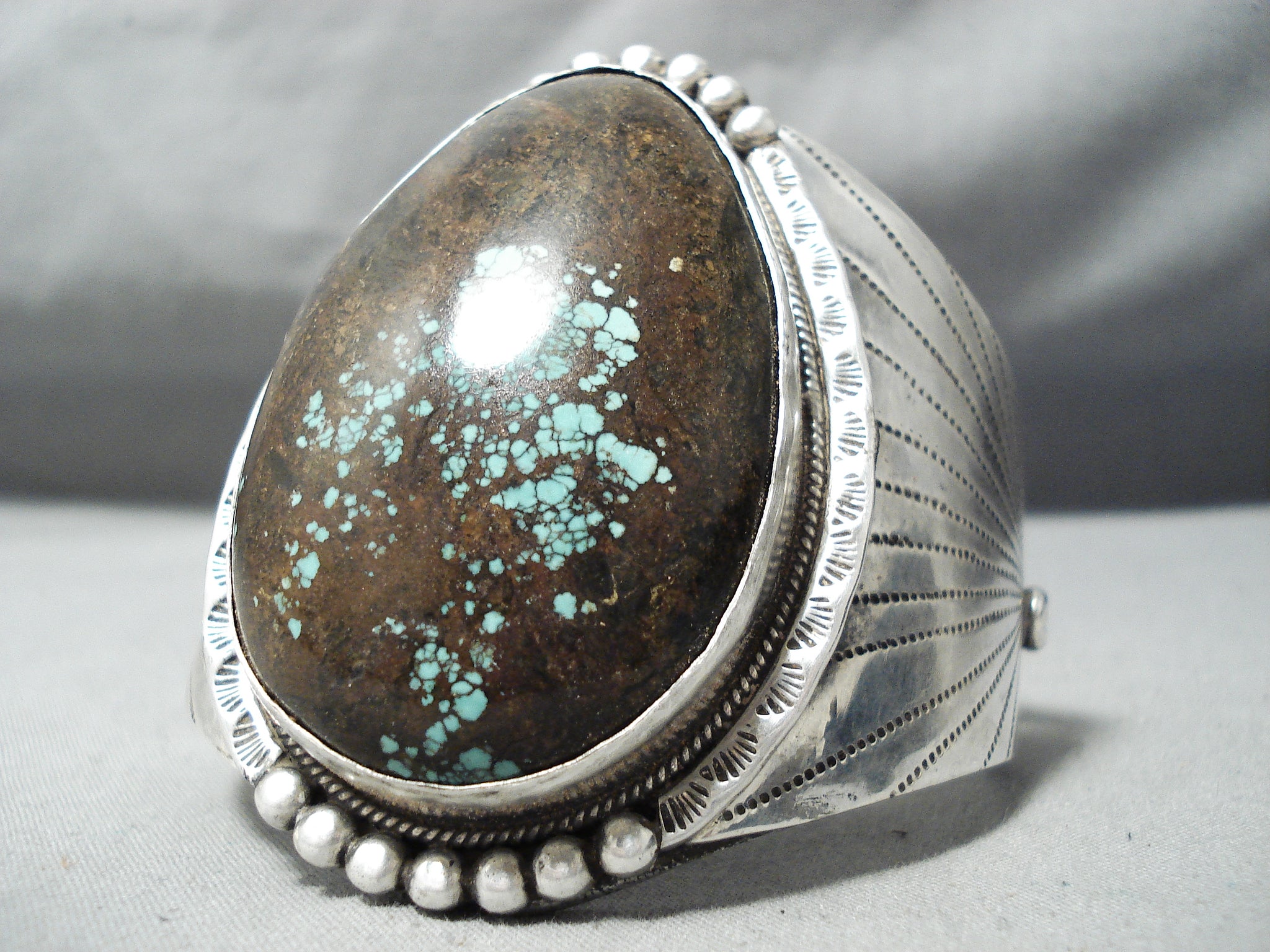 One Of The Biggest Teardrop Green Turquoise Native American Navajo Sterling Silver Bracelet