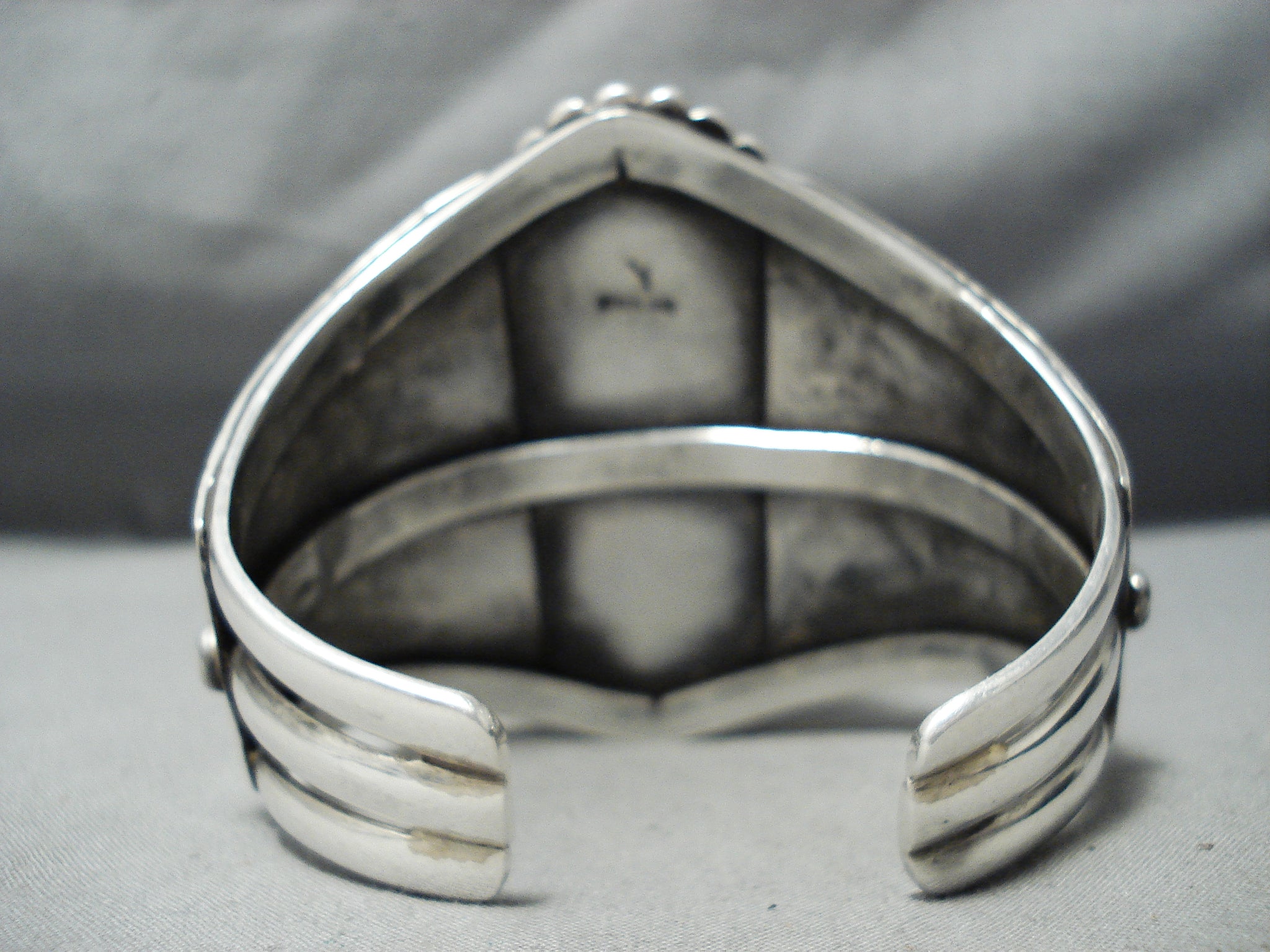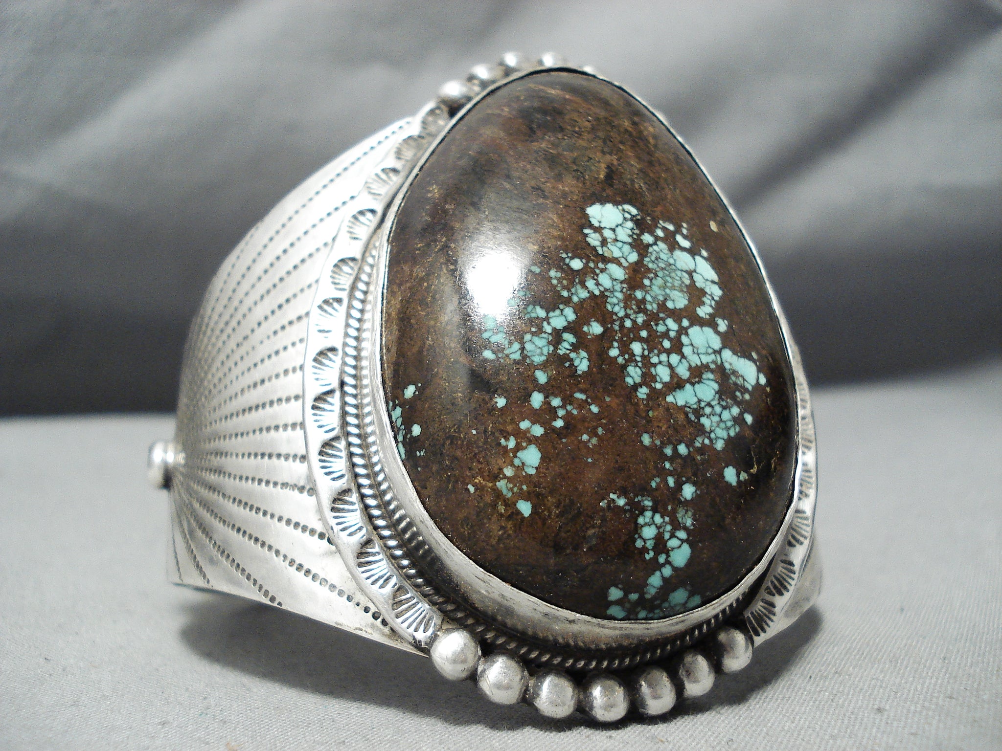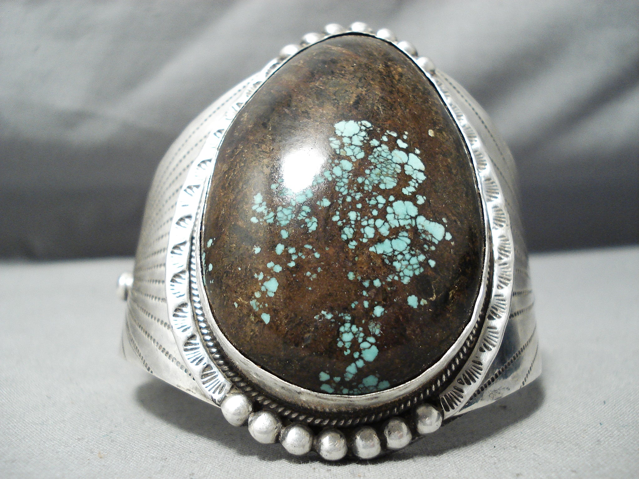 One Of The Biggest Teardrop Green Turquoise Native American Navajo Sterling Silver Bracelet