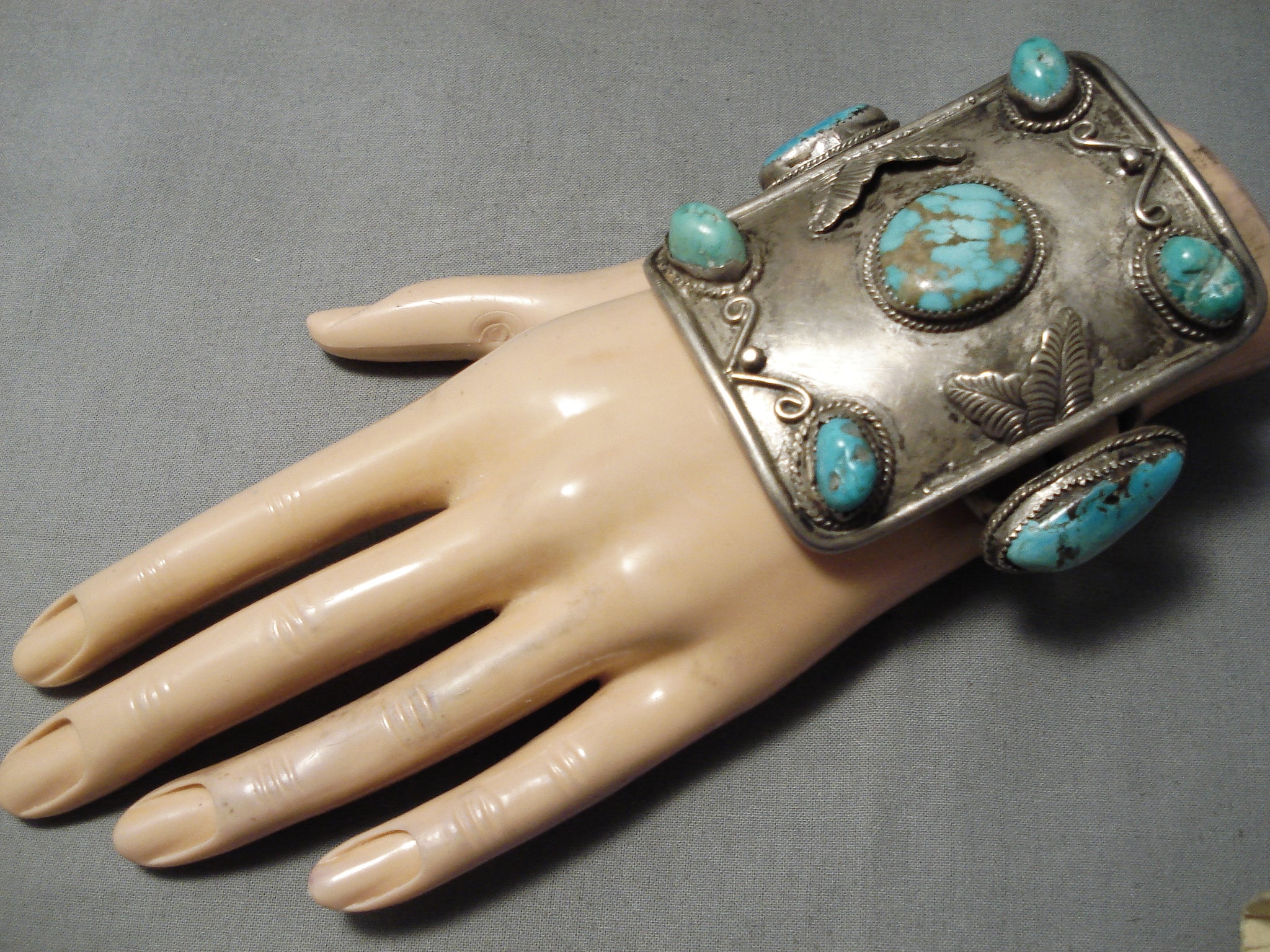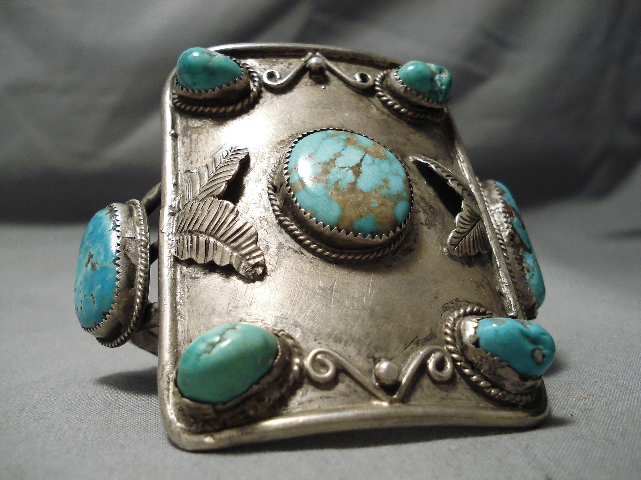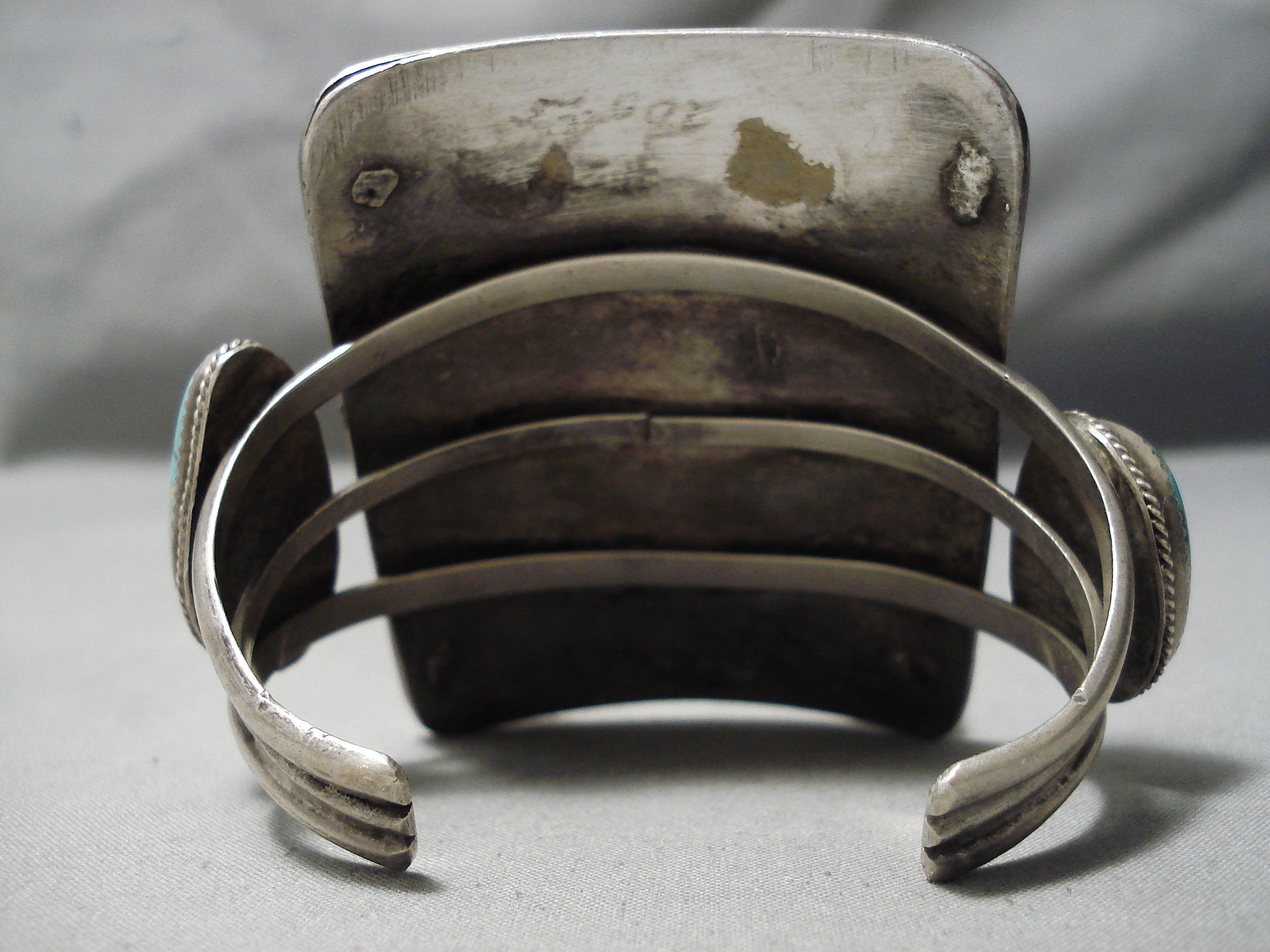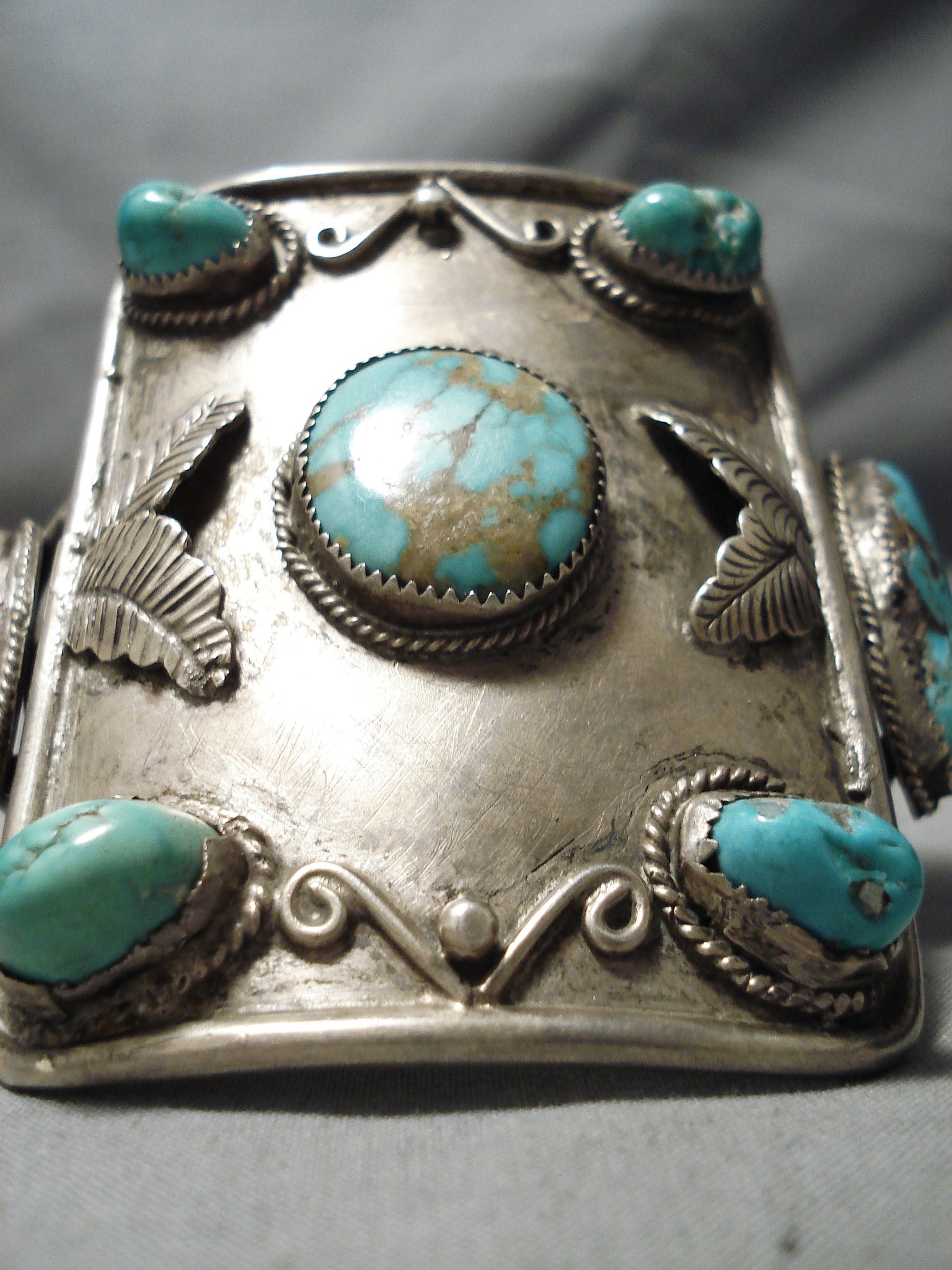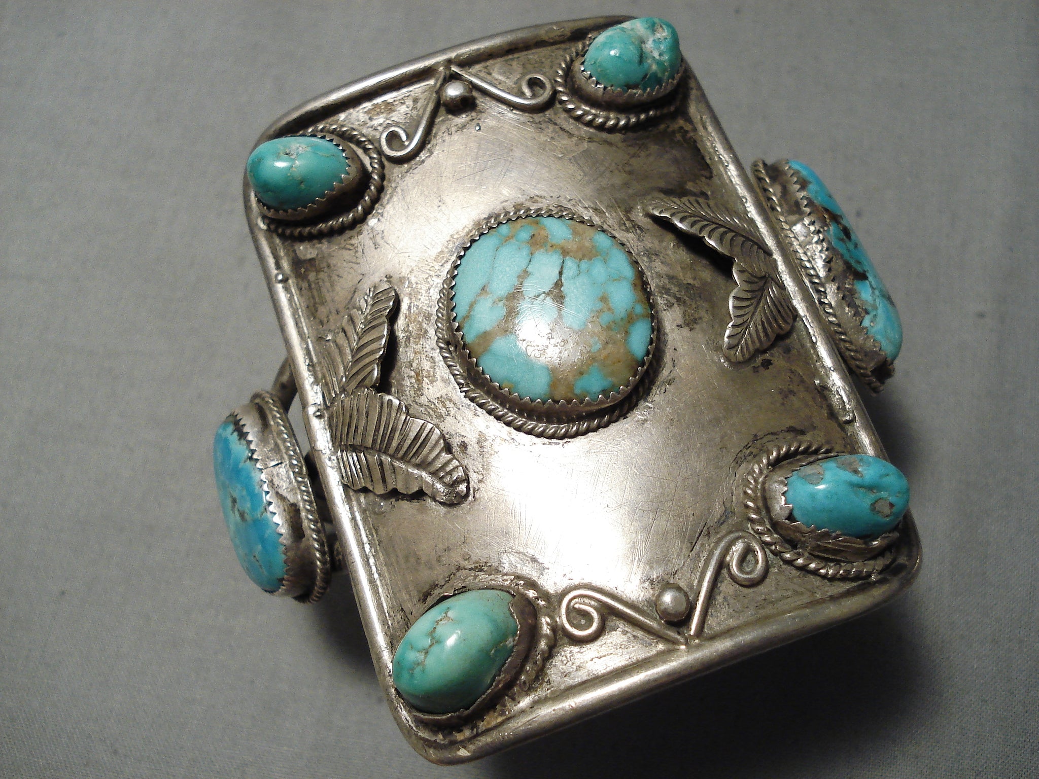 One Of The Biggest Vintage Native American Navajo #8 Turquoise Sterling Silver Bracelet Cuff Old