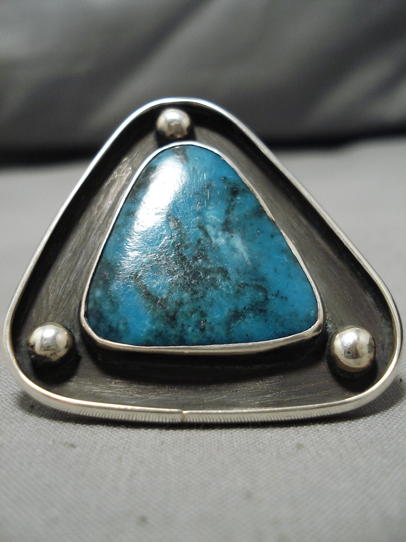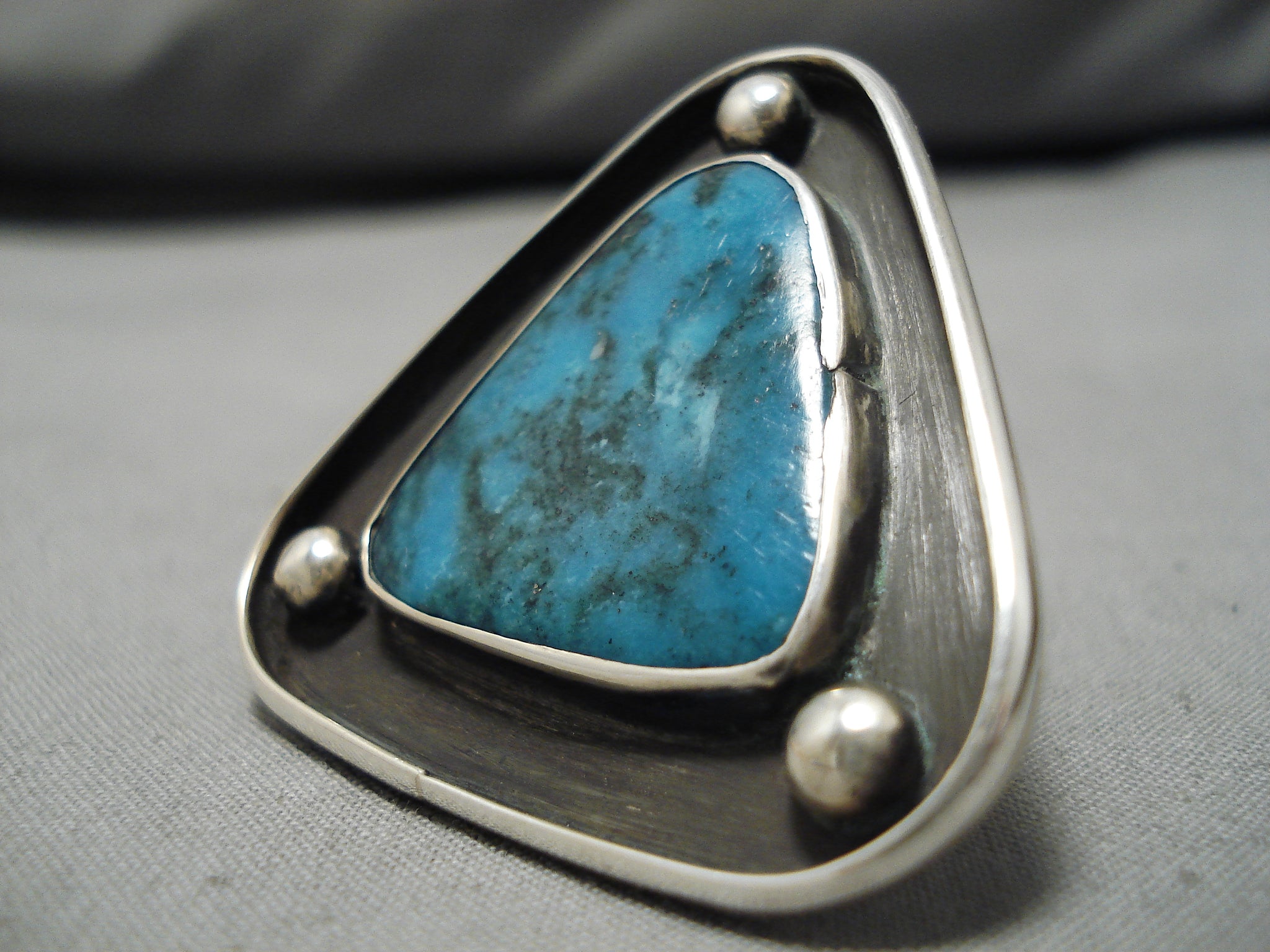 One Of The Biggest Vintage Native American Navajo Blue Diamond Turquoise Sterling Silver Ring
