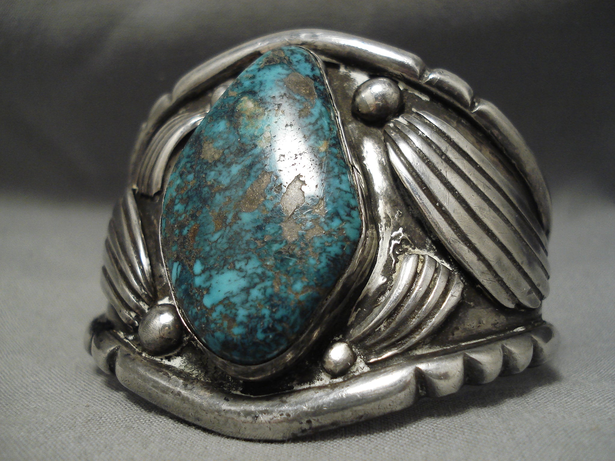 One Of The Biggest Vintage Native American Navajo Royston Turquoise Sterling Silver Bracelet Old