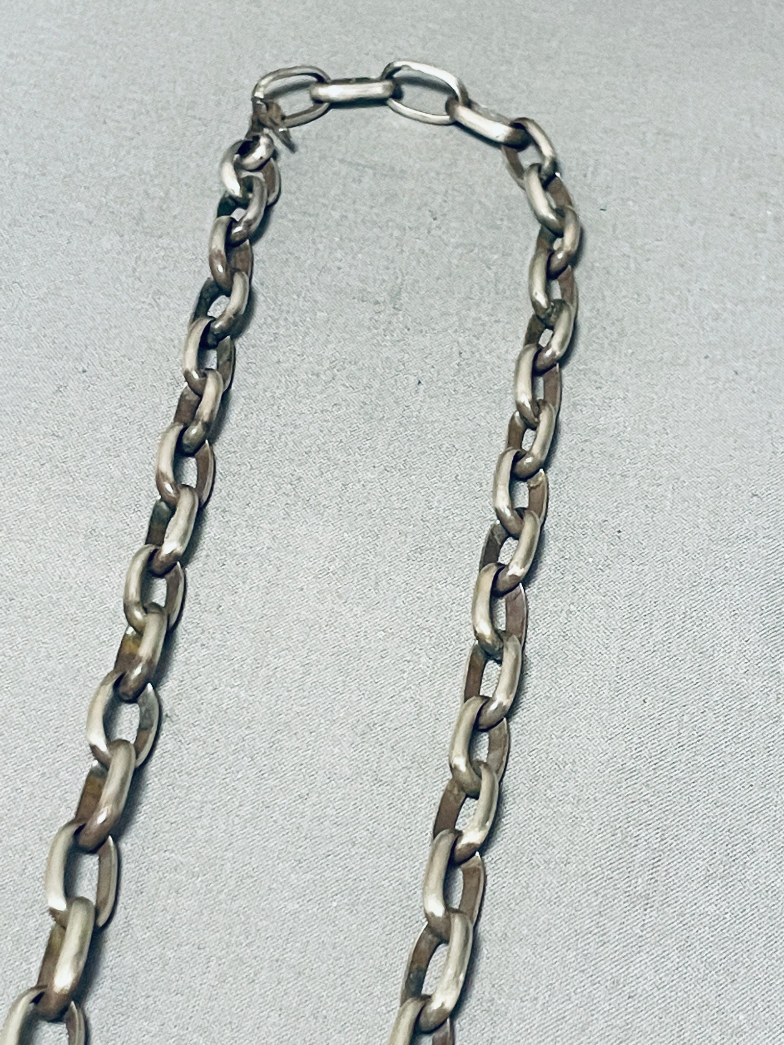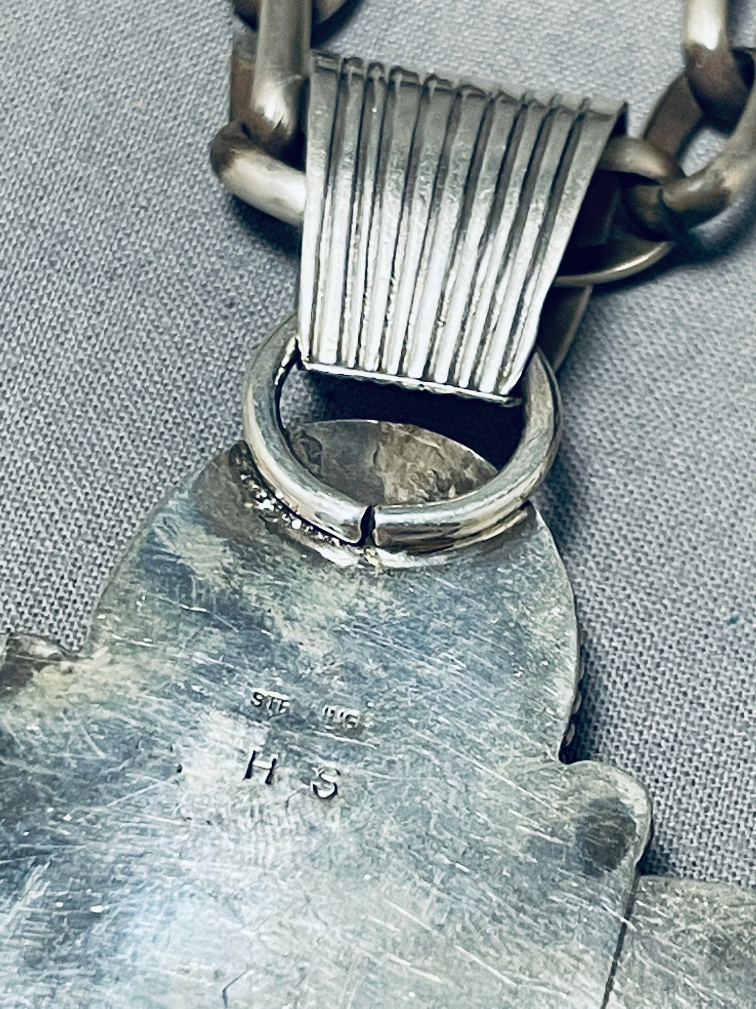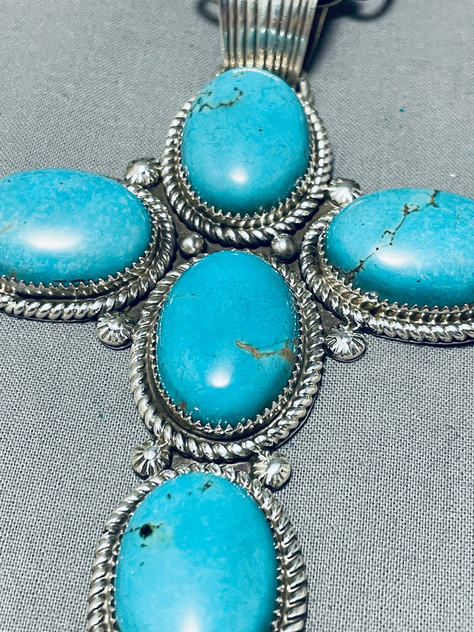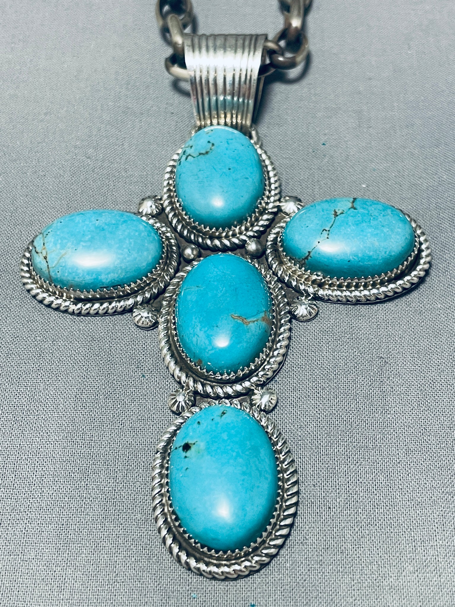 One Of The Biggest Vintage Native American Navajo Turquoise Cross Sterling Silver Necklace