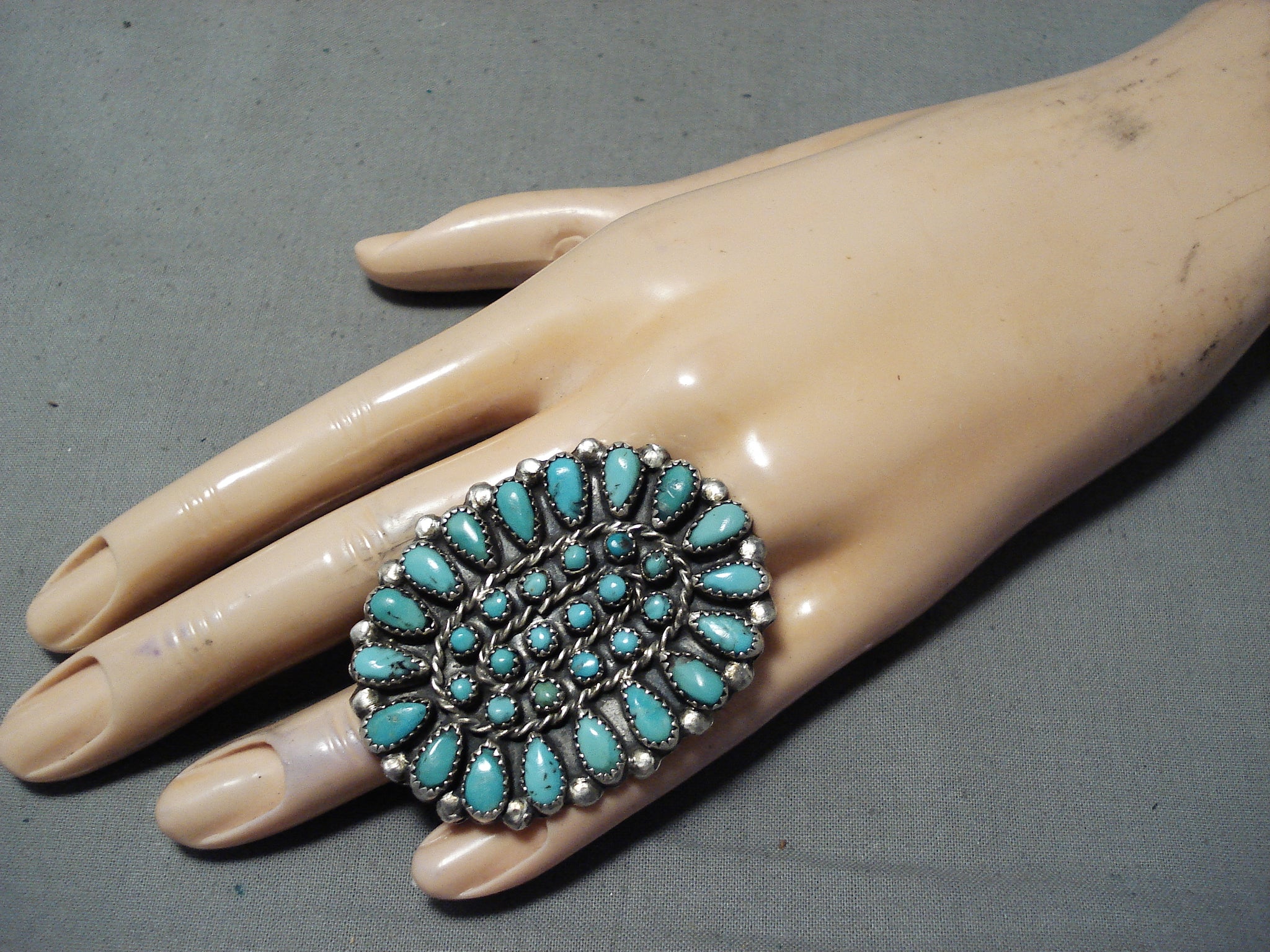 One Of The Biggest Vintage Native American Navajo Turquoise Sterling Silver Ring