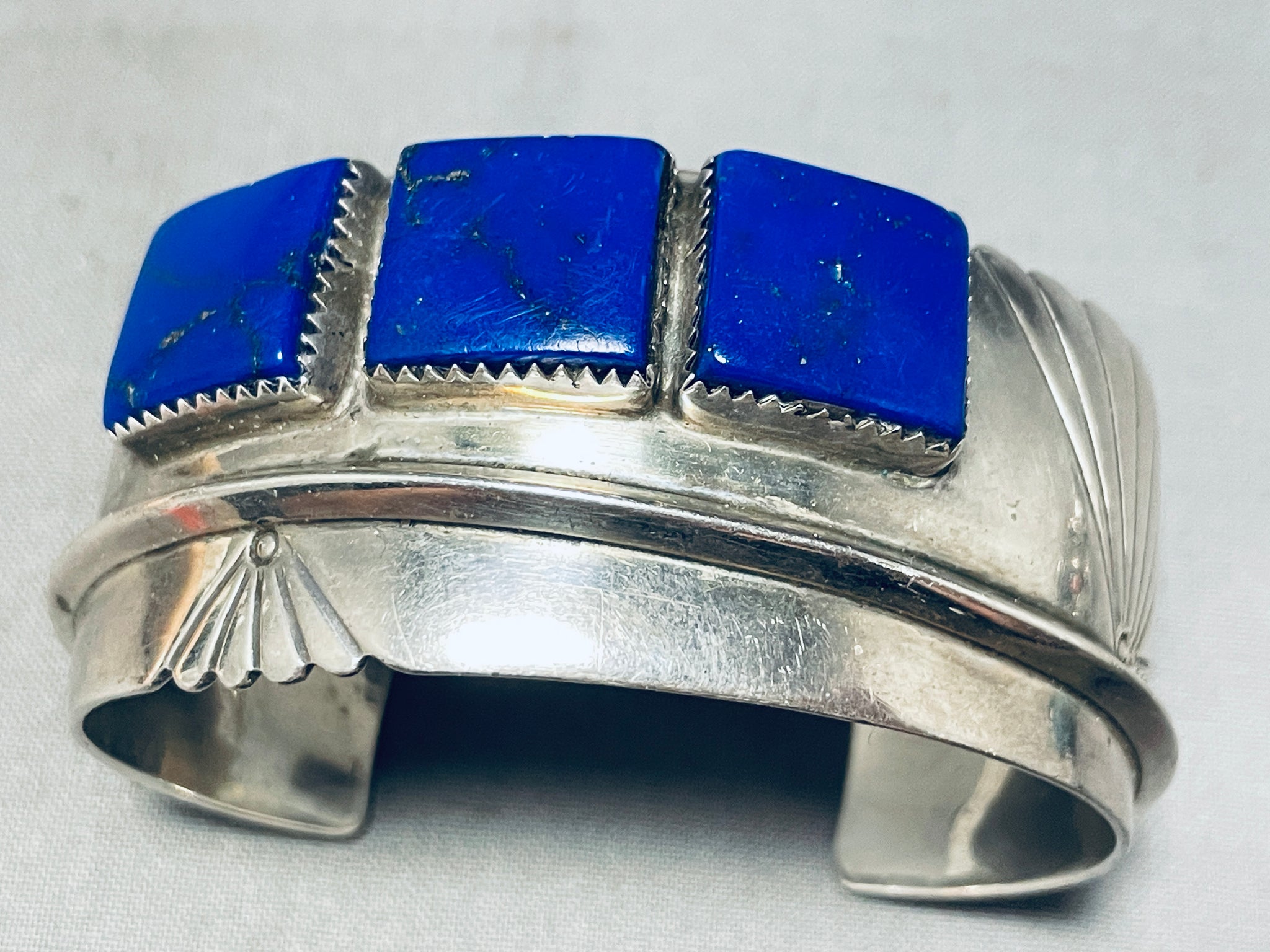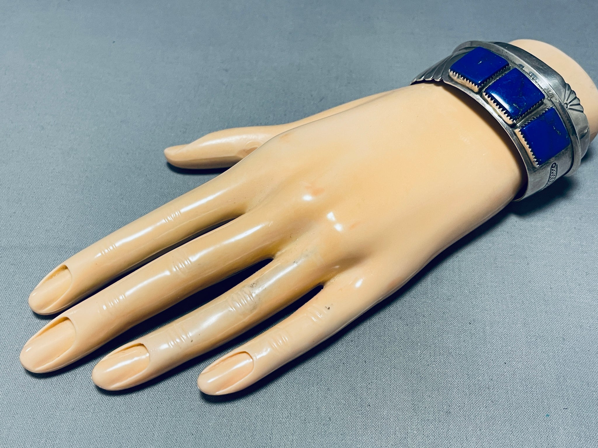 One Of The Coolest Ever Vintage Native American Navajo Lapis Sterling Silver Bracelet