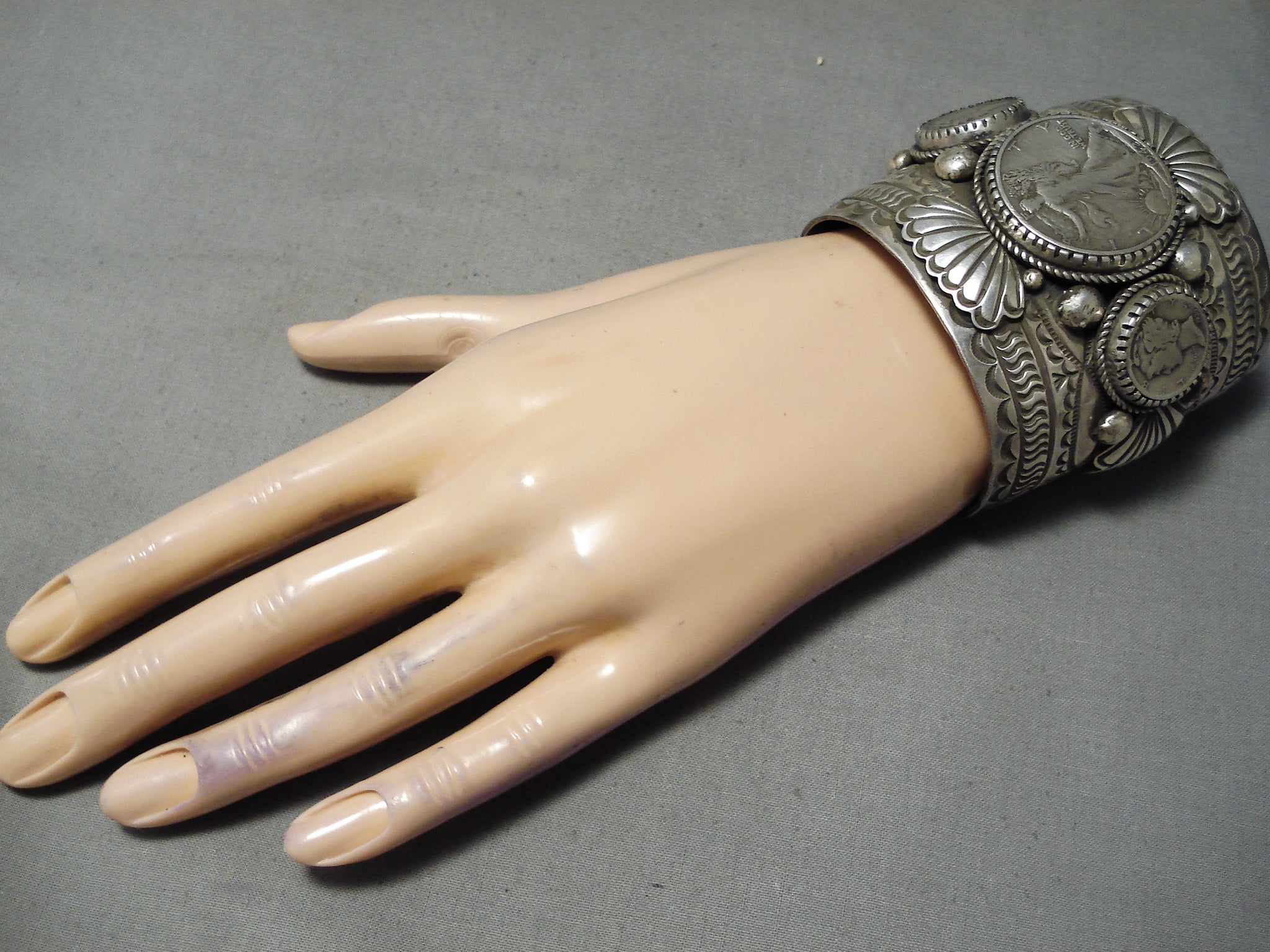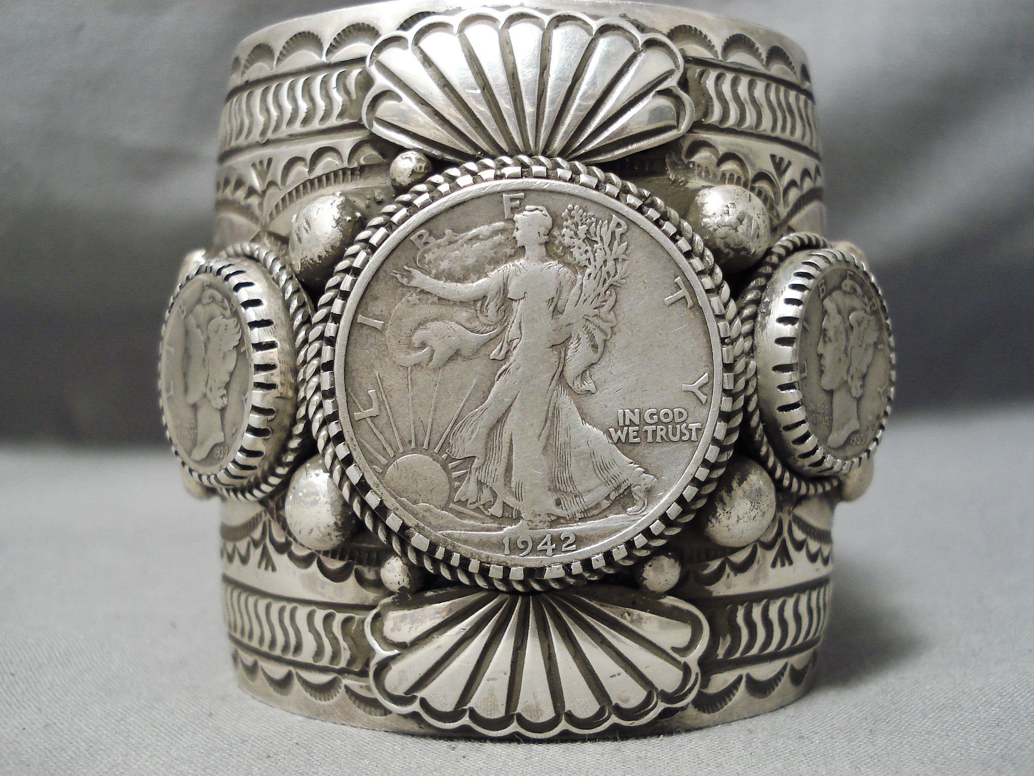 One Of The Craziest Biggest Native American Navajo Al Sanchez Sterling Silver Coin Bracelet