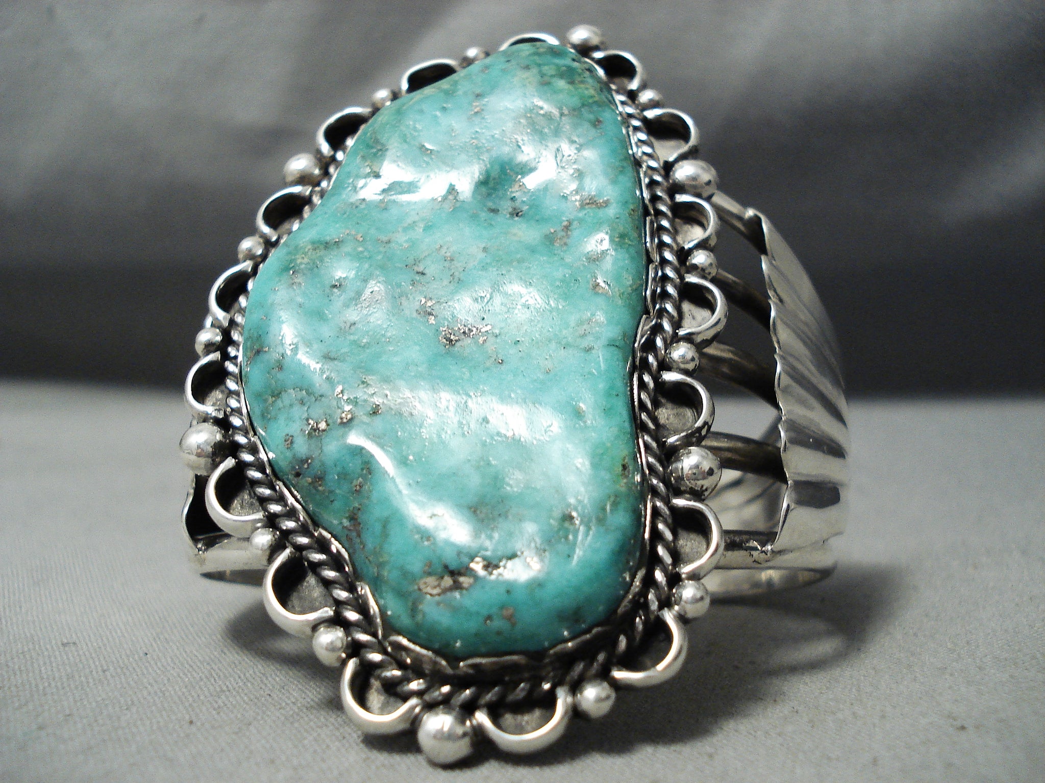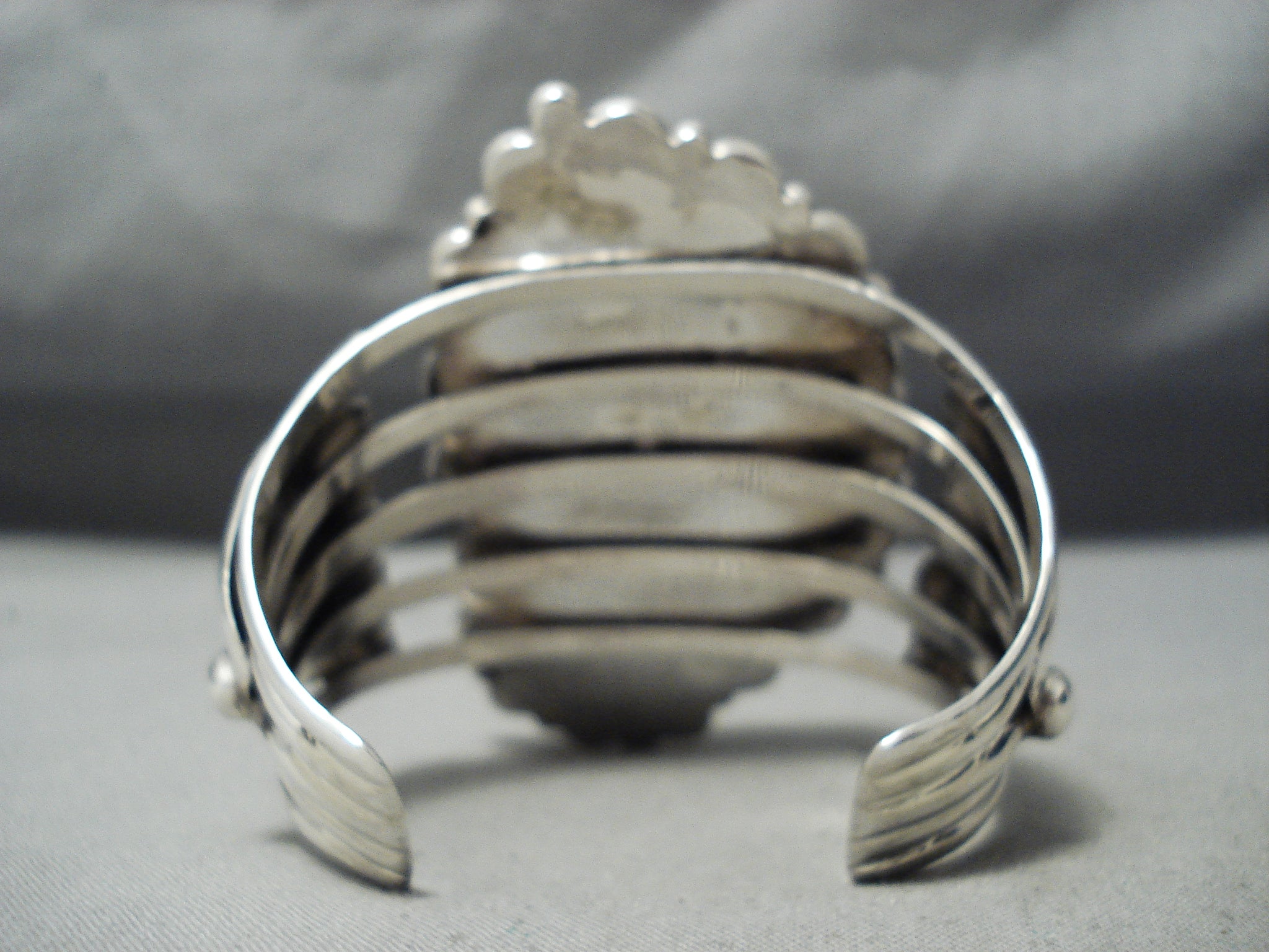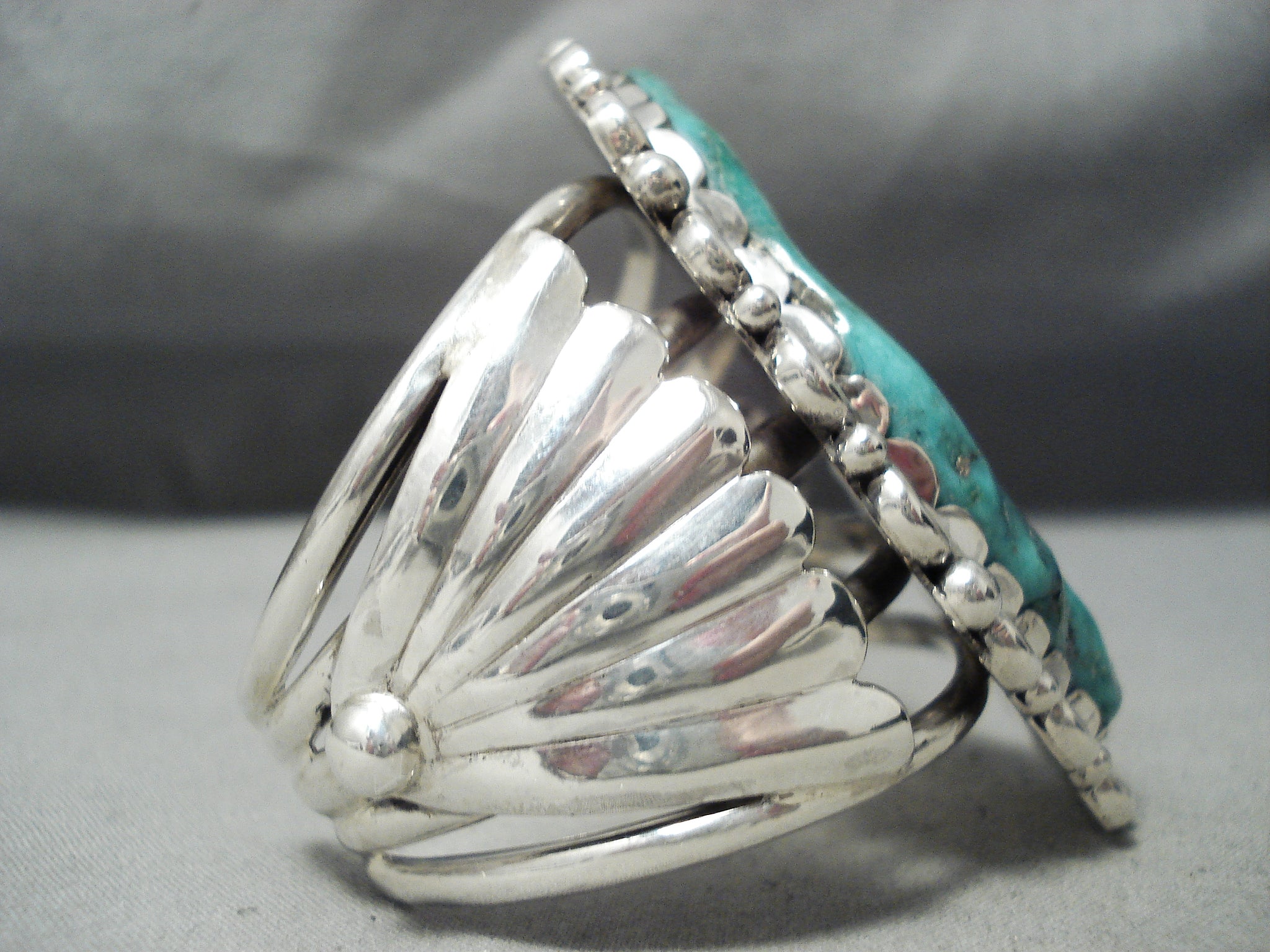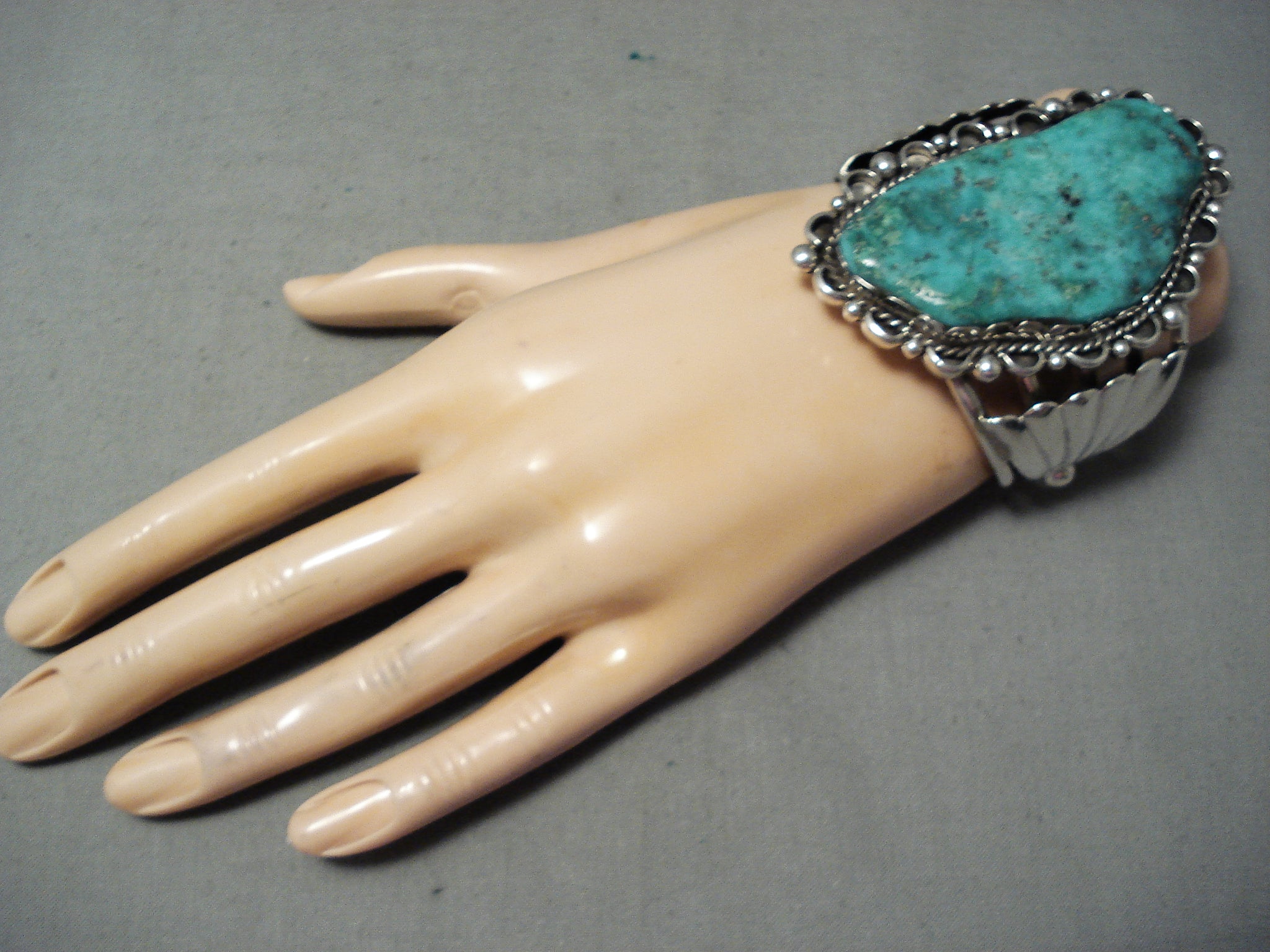 One Of The Craziest Vintage Native American Navajo Big Turquoise Sterling Silver Flank Bracelet