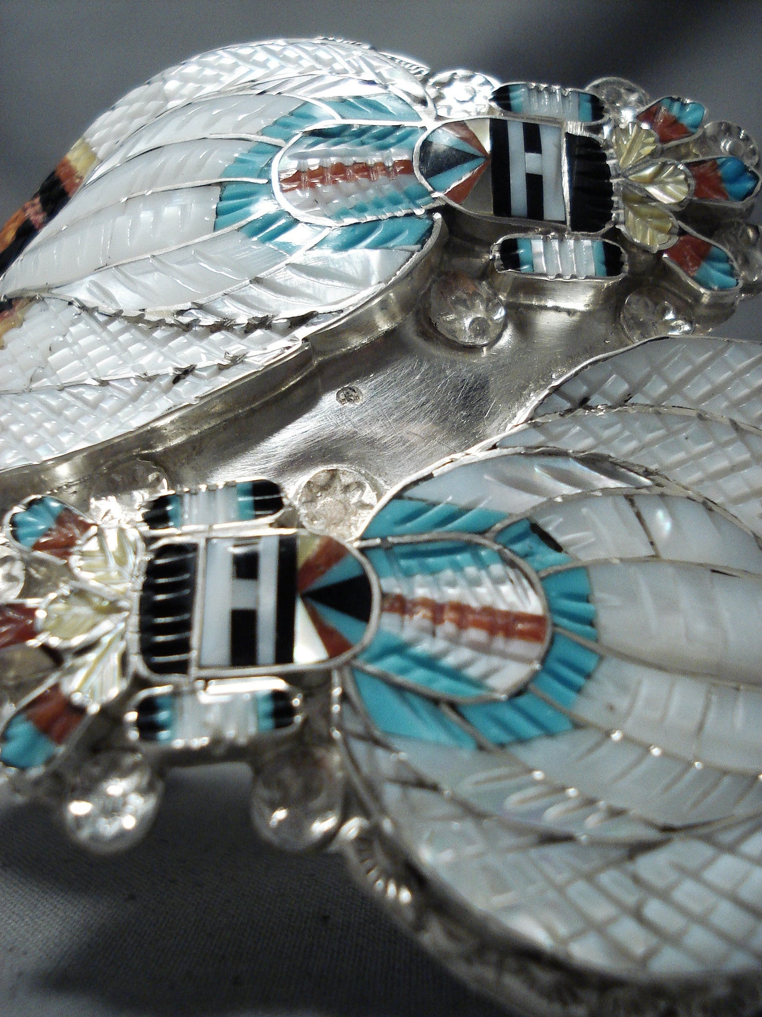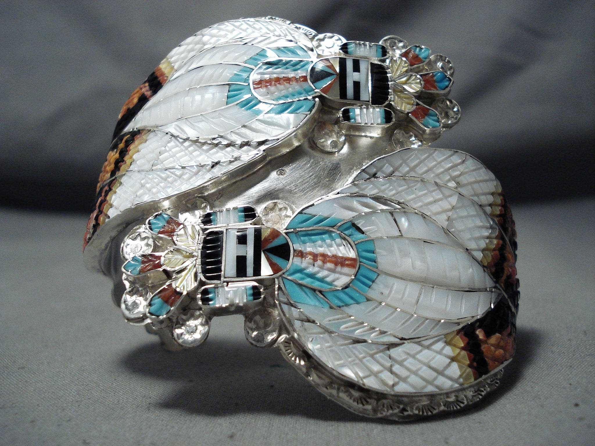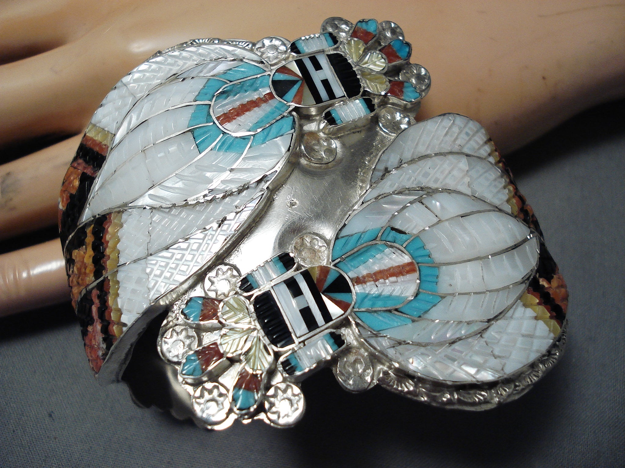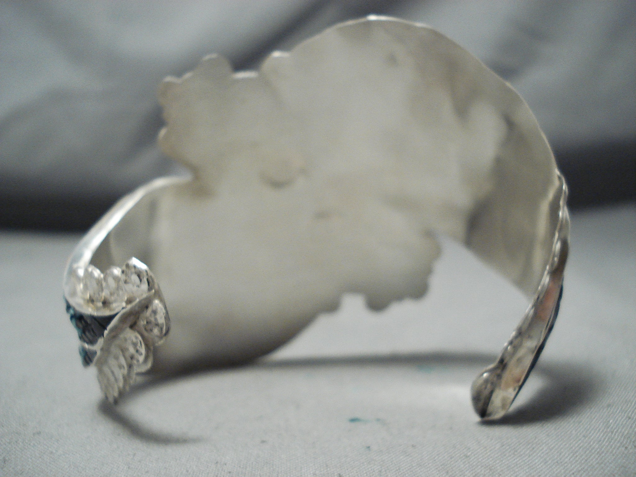 One Of The Finest Inlay Native American Zuni Turquoise Sterling Silver Bracelet