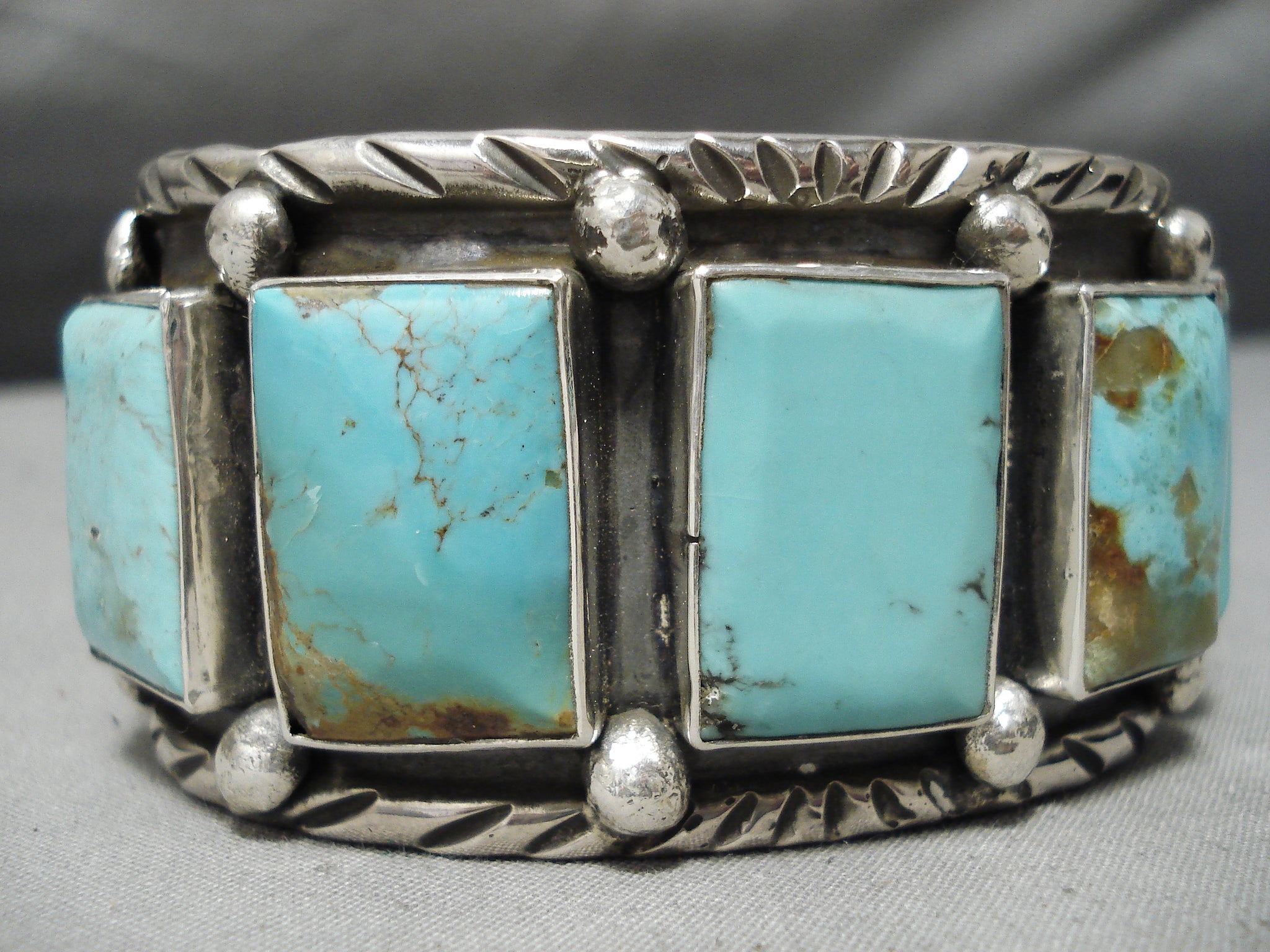 One Of The Finest Native American Squared Turquoise Sterling Silver Bracelet