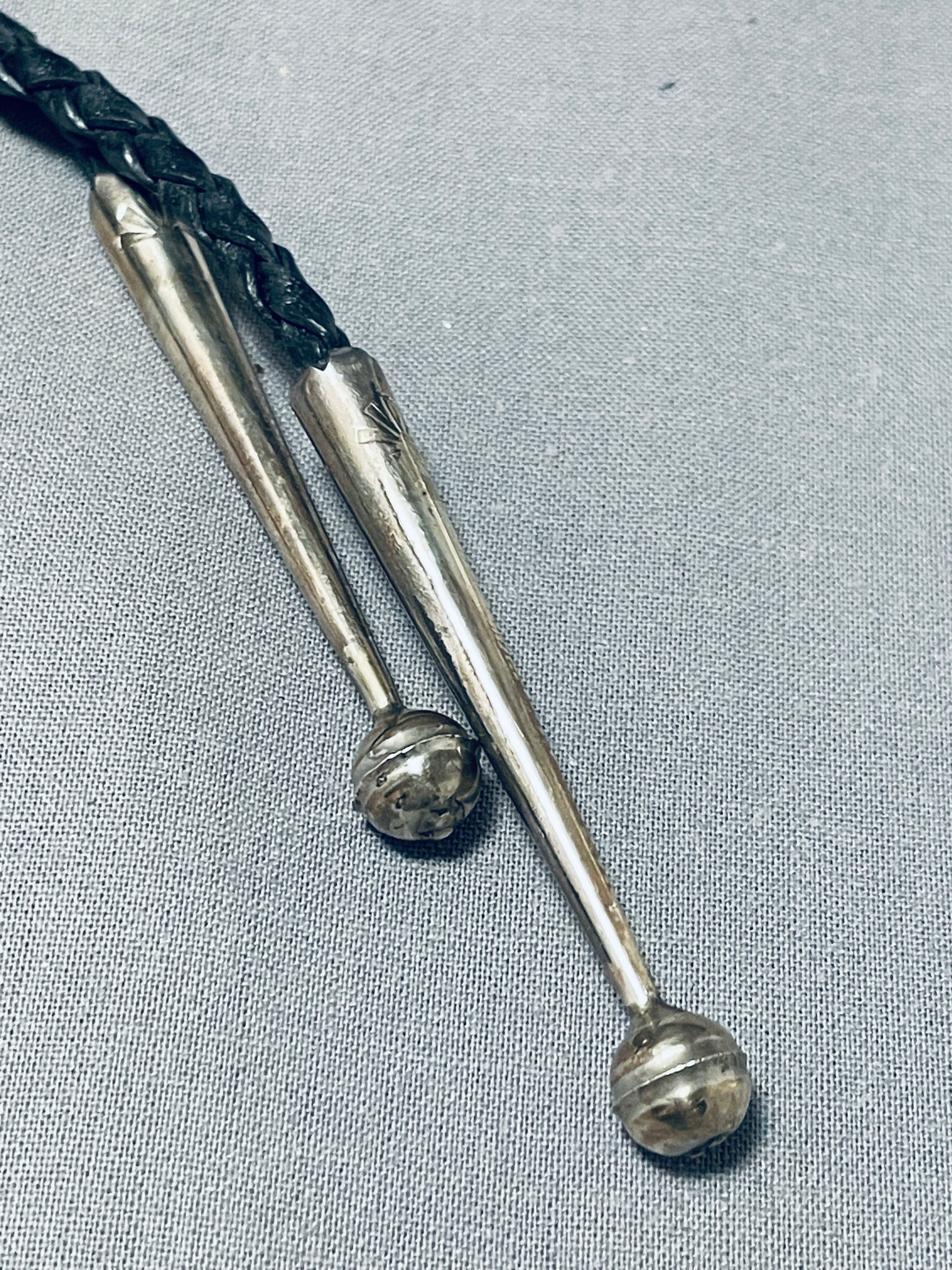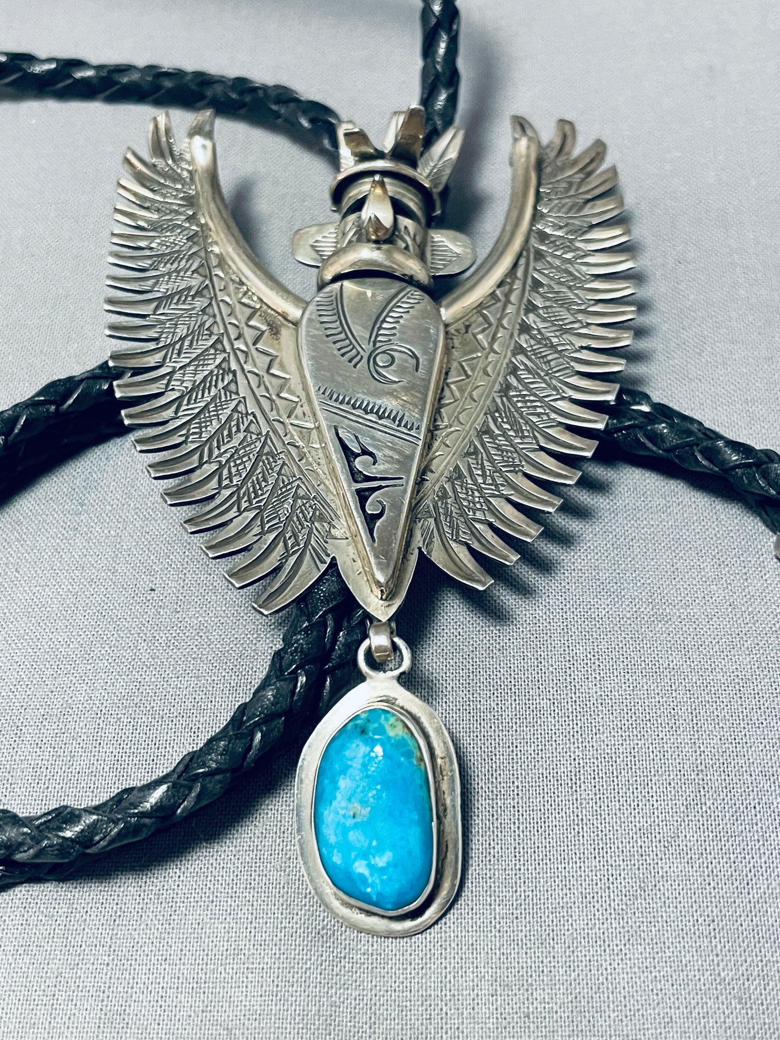 One Of The Finest Vintage Native American Navajo Turquoise Sterling Silver Bolo Tie