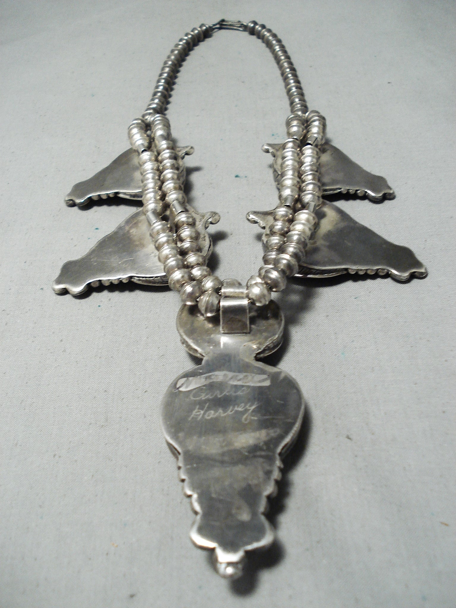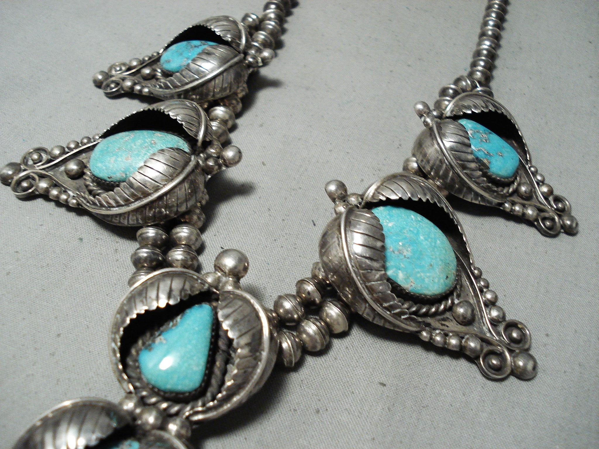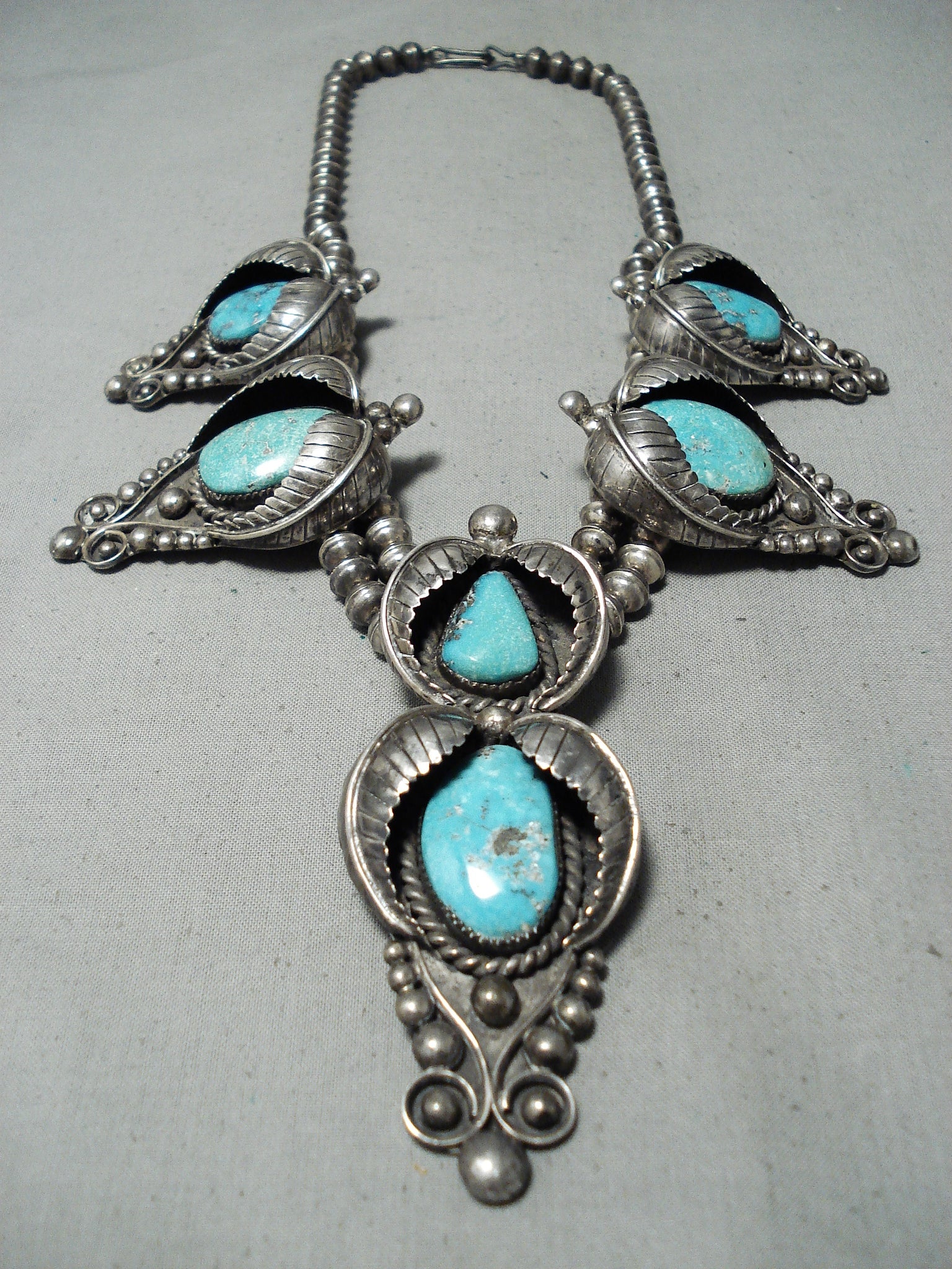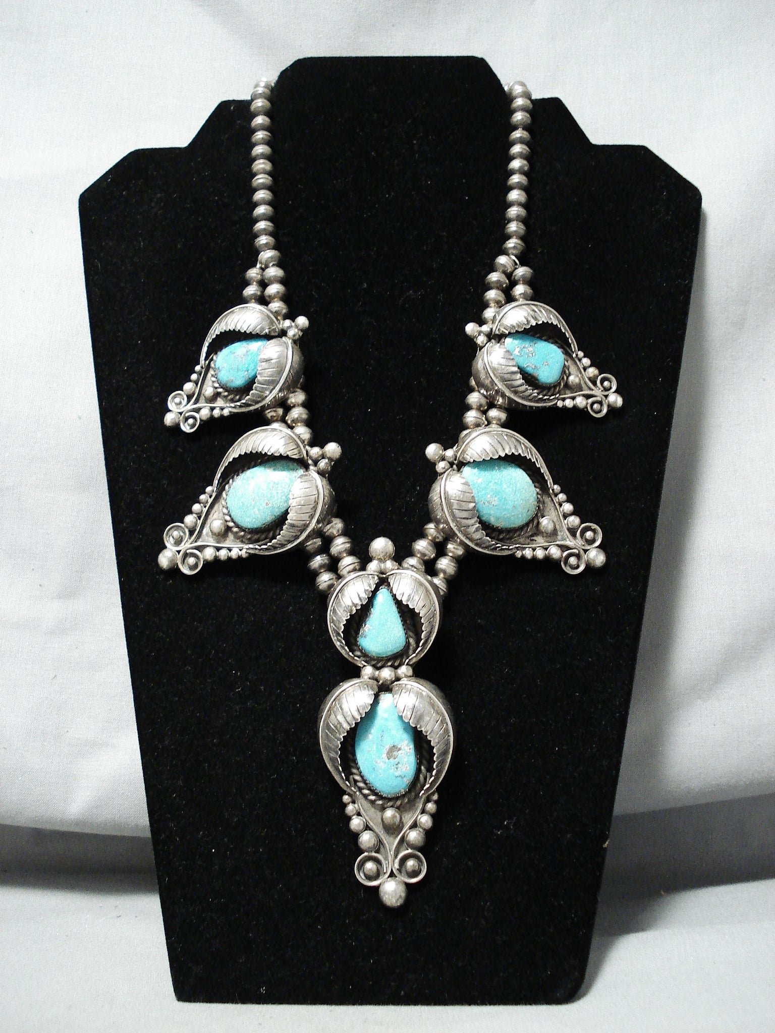 One Of The Finest Vintage Native American Navajo Turquoise Sterling Silver Dangle Necklace