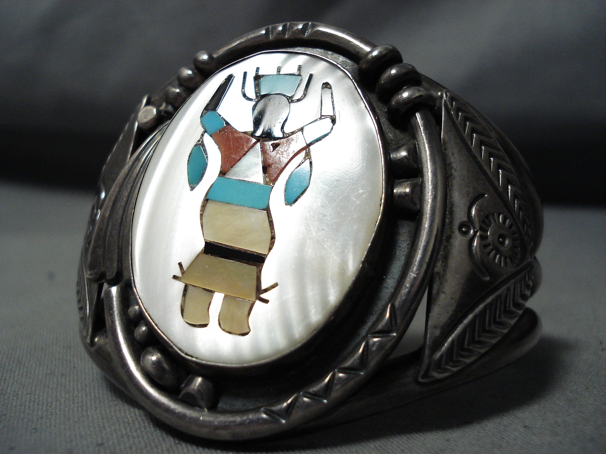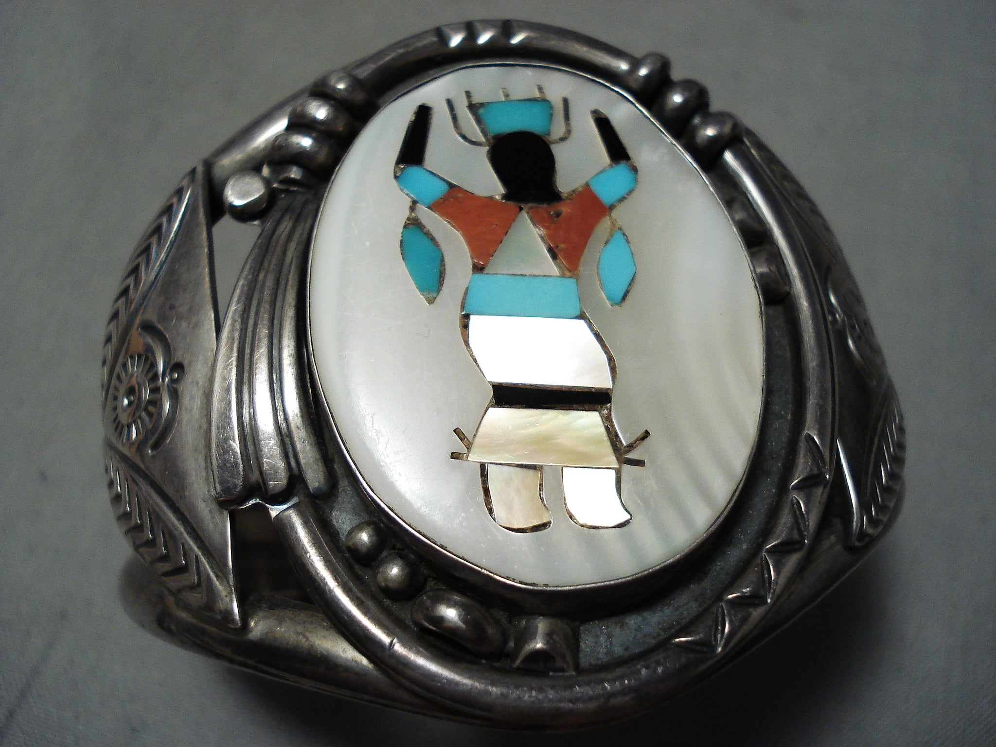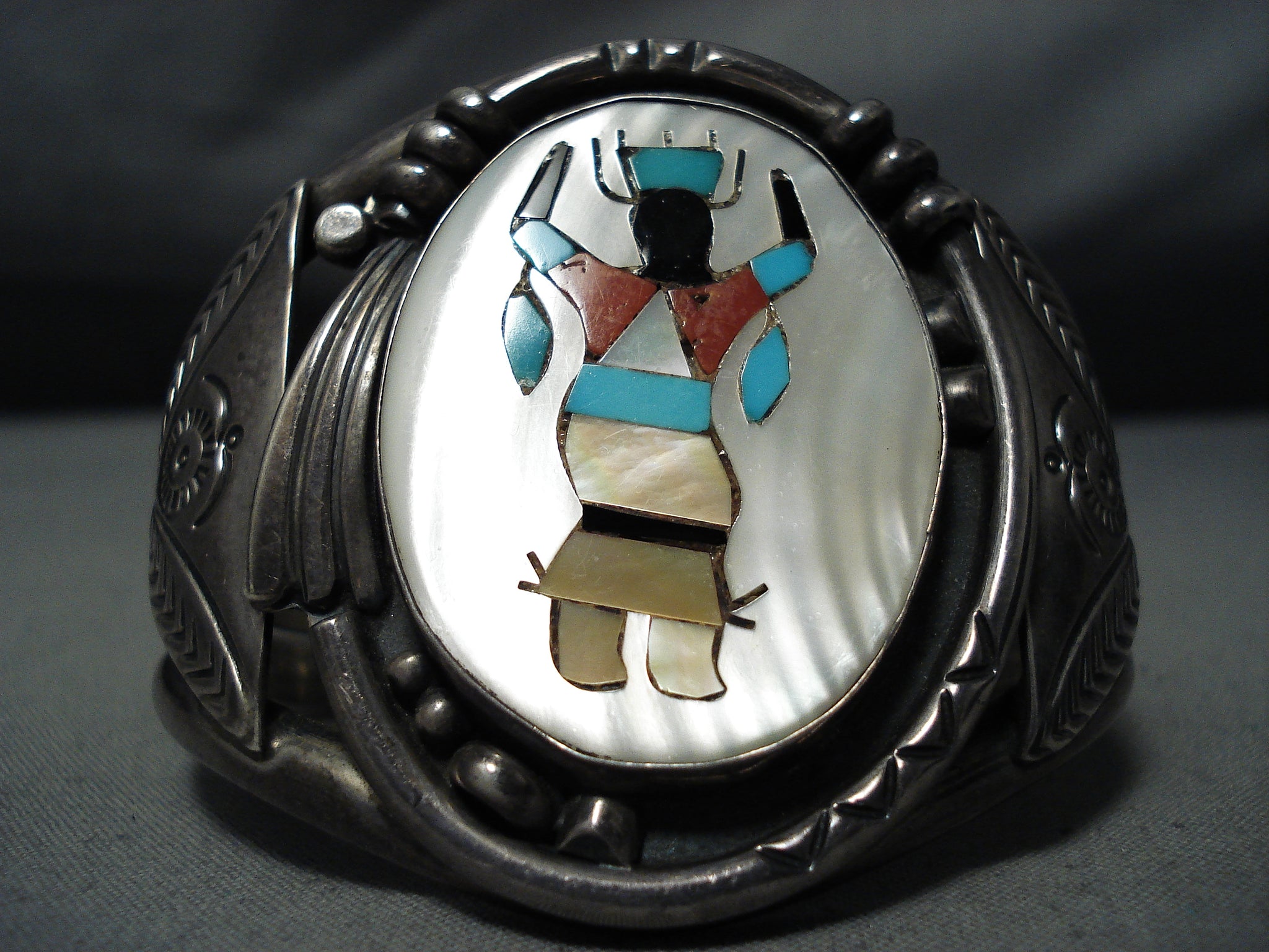 One Of The Heaviest Vintage Native American Navajo Turquoise Kachina Sterling Silver Bracelet