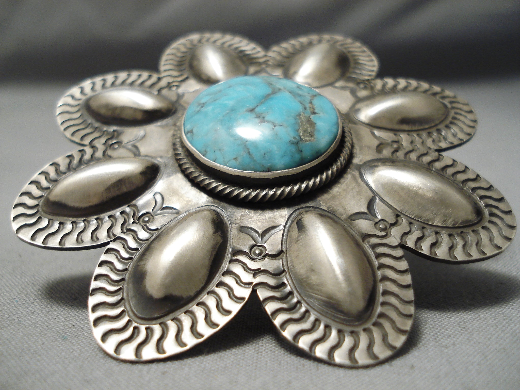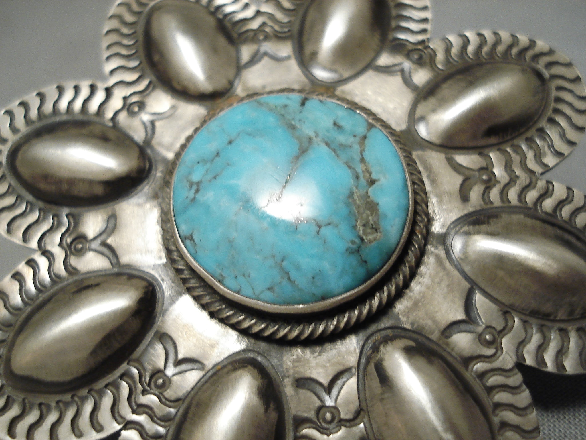 One Of The Largest Native American Zuni Turquoise Sterling Silver Ring Ever Made