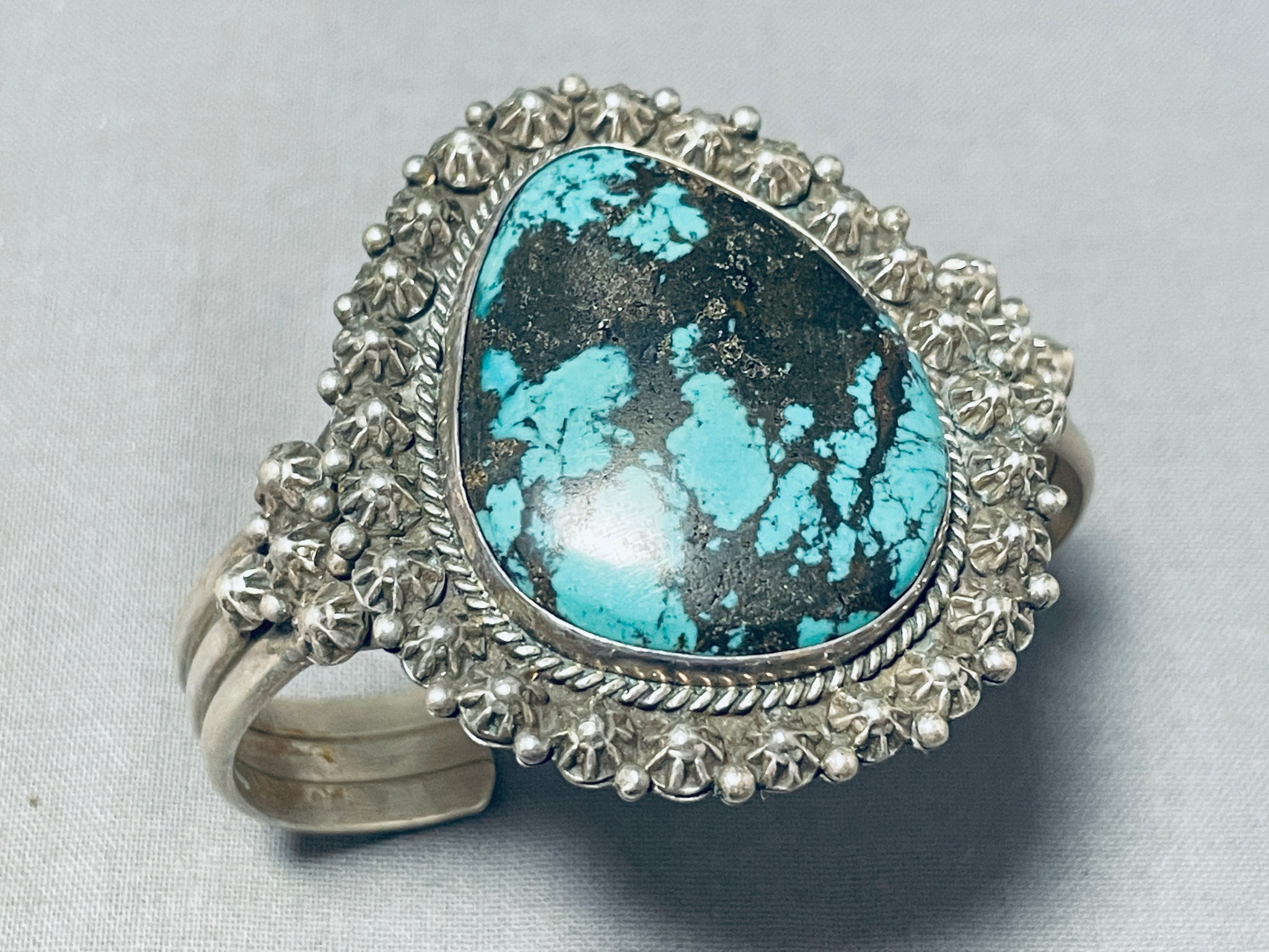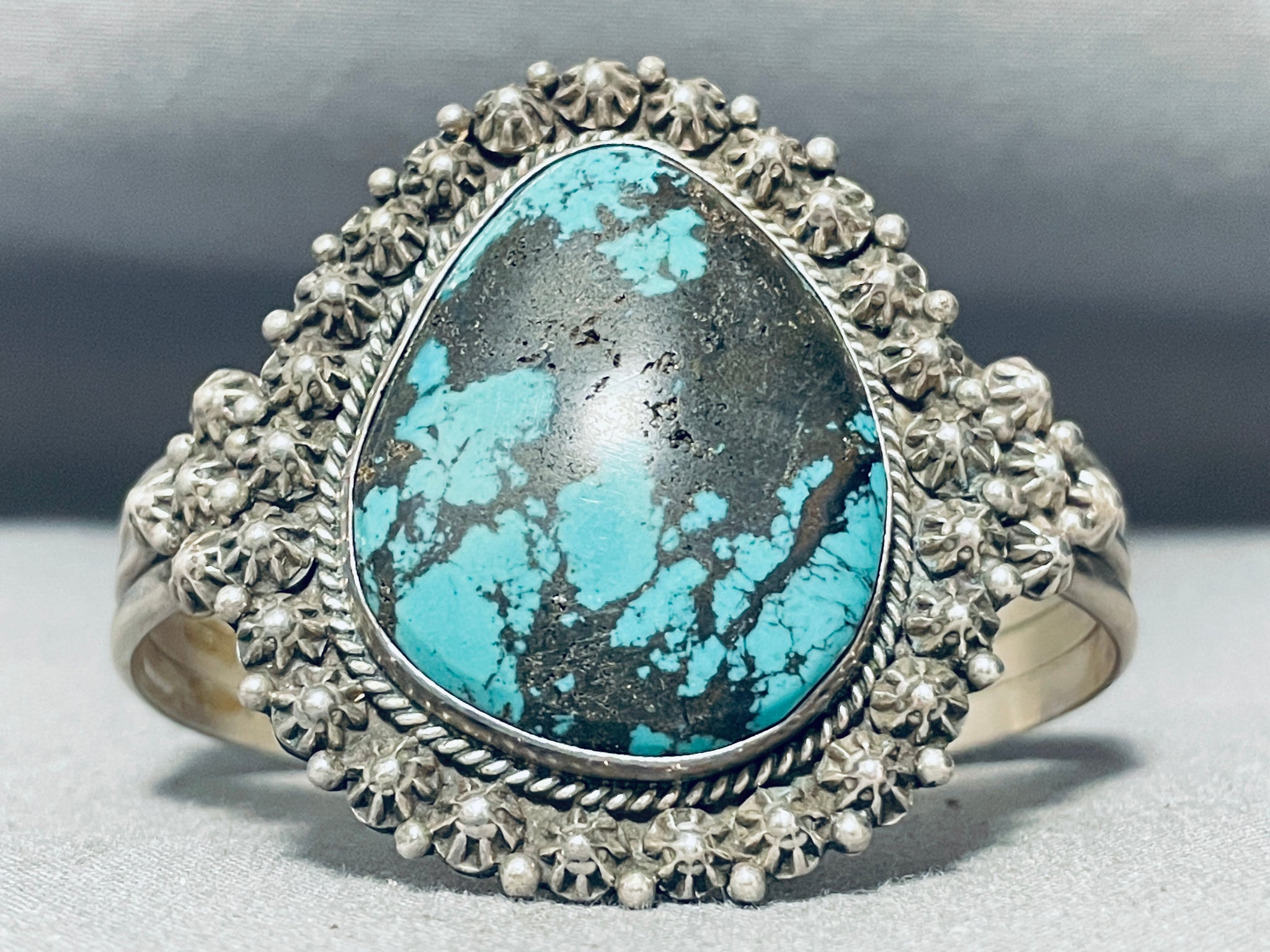 One Of The Largest Teardrop Turquoise Vintage Native American Navajo Sterling Silver Bracelet