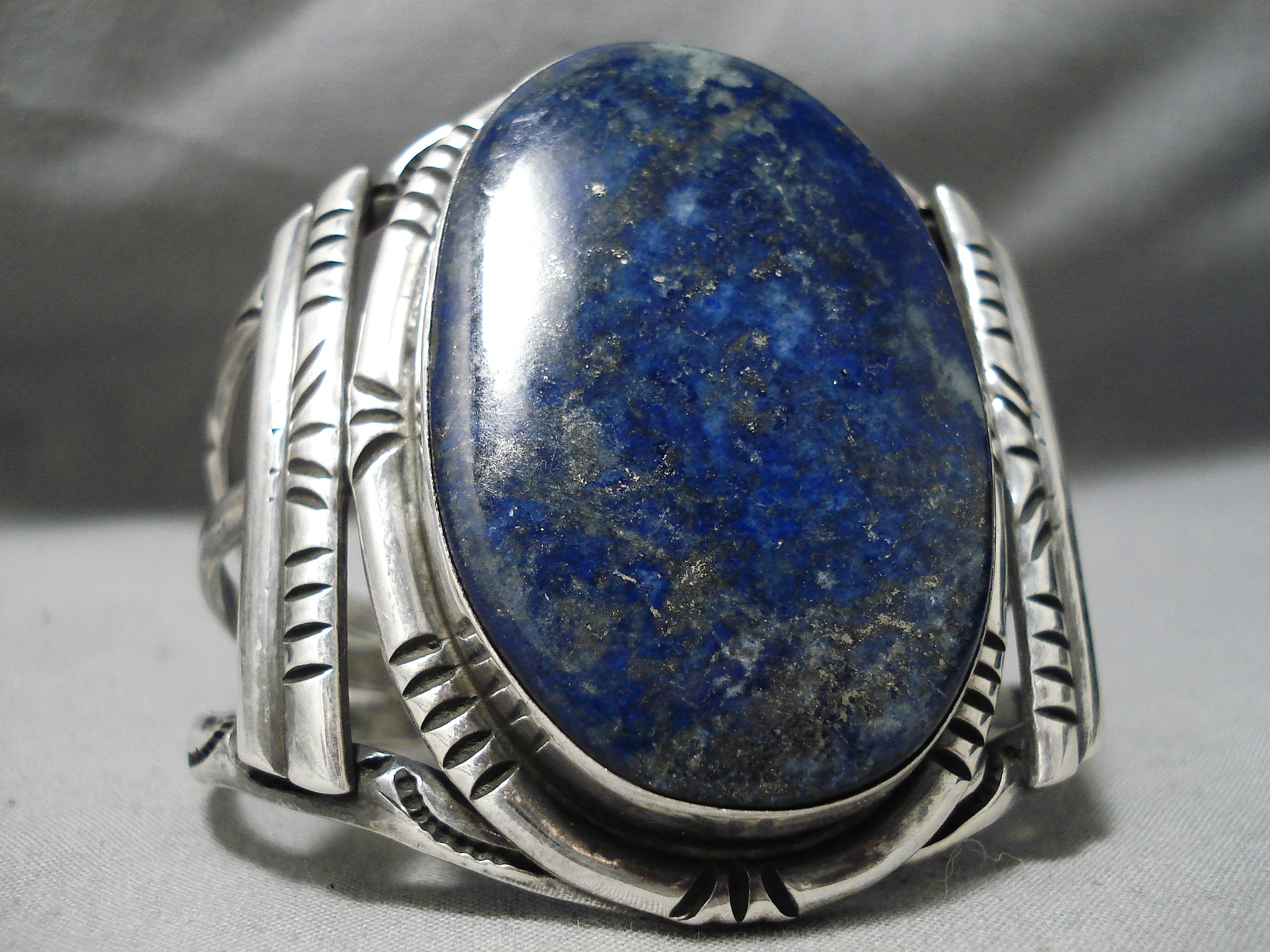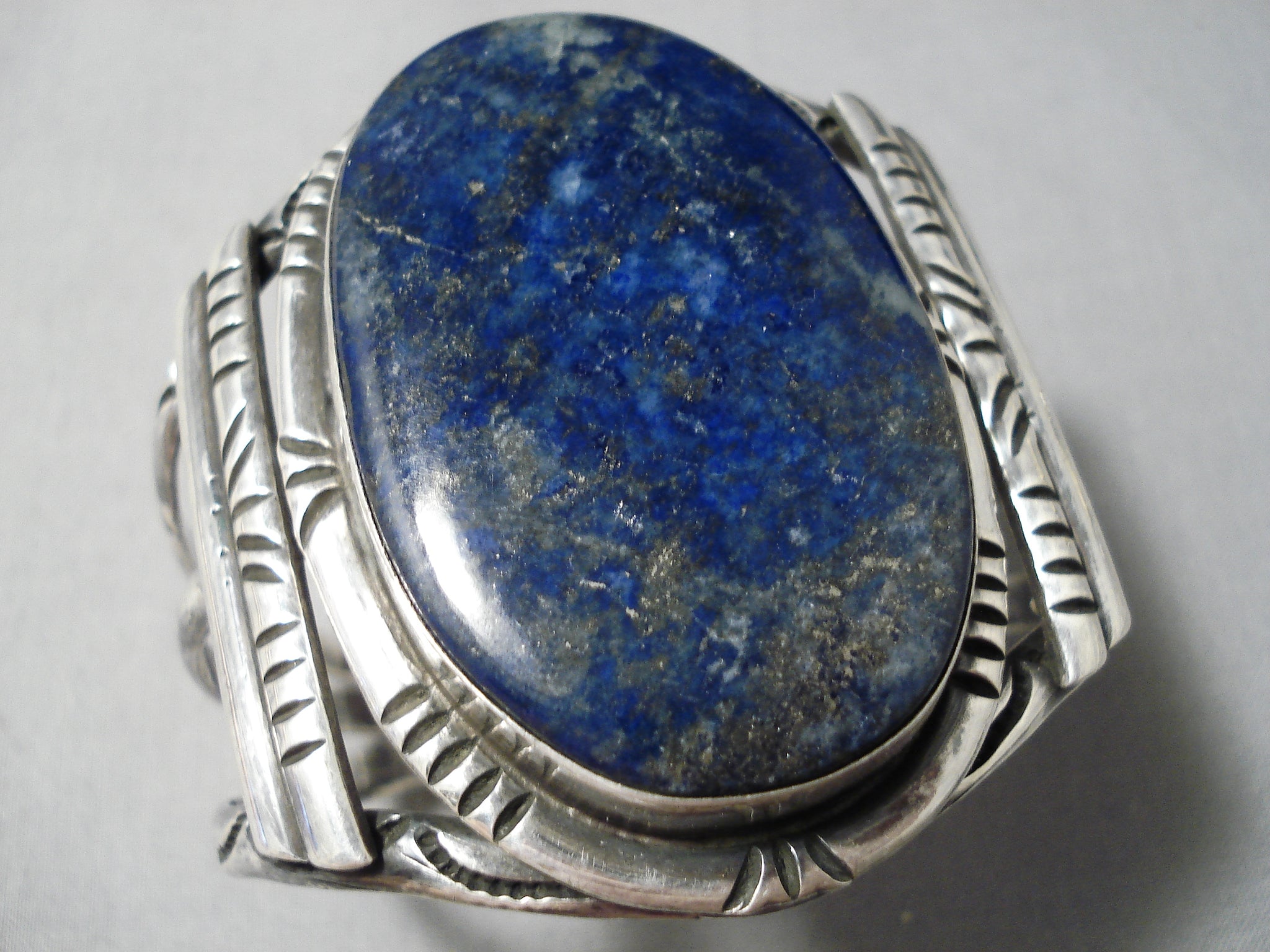 One Of The Largest Vintage Native American Navajo Lapis Sterling Silver Bracelet