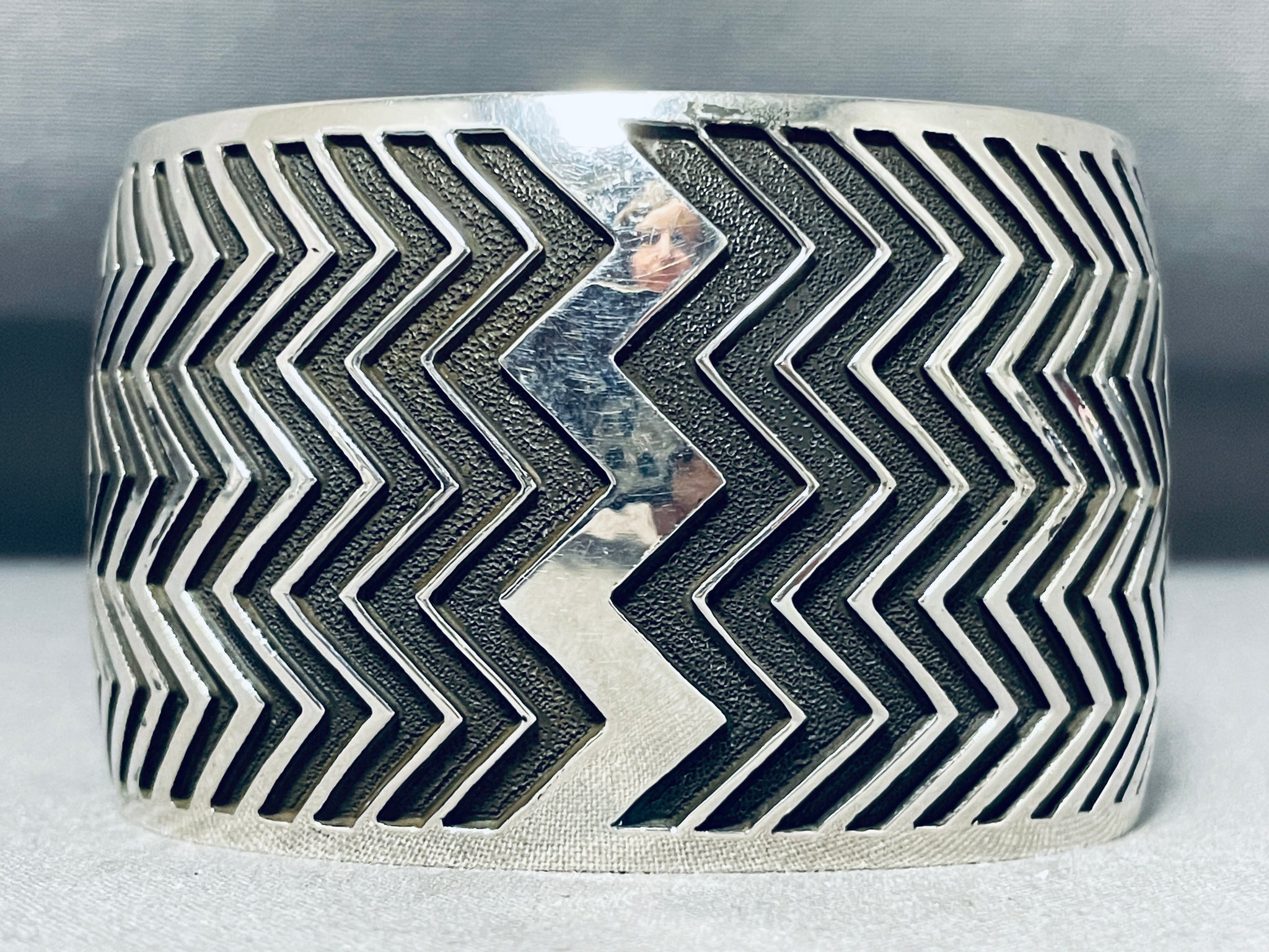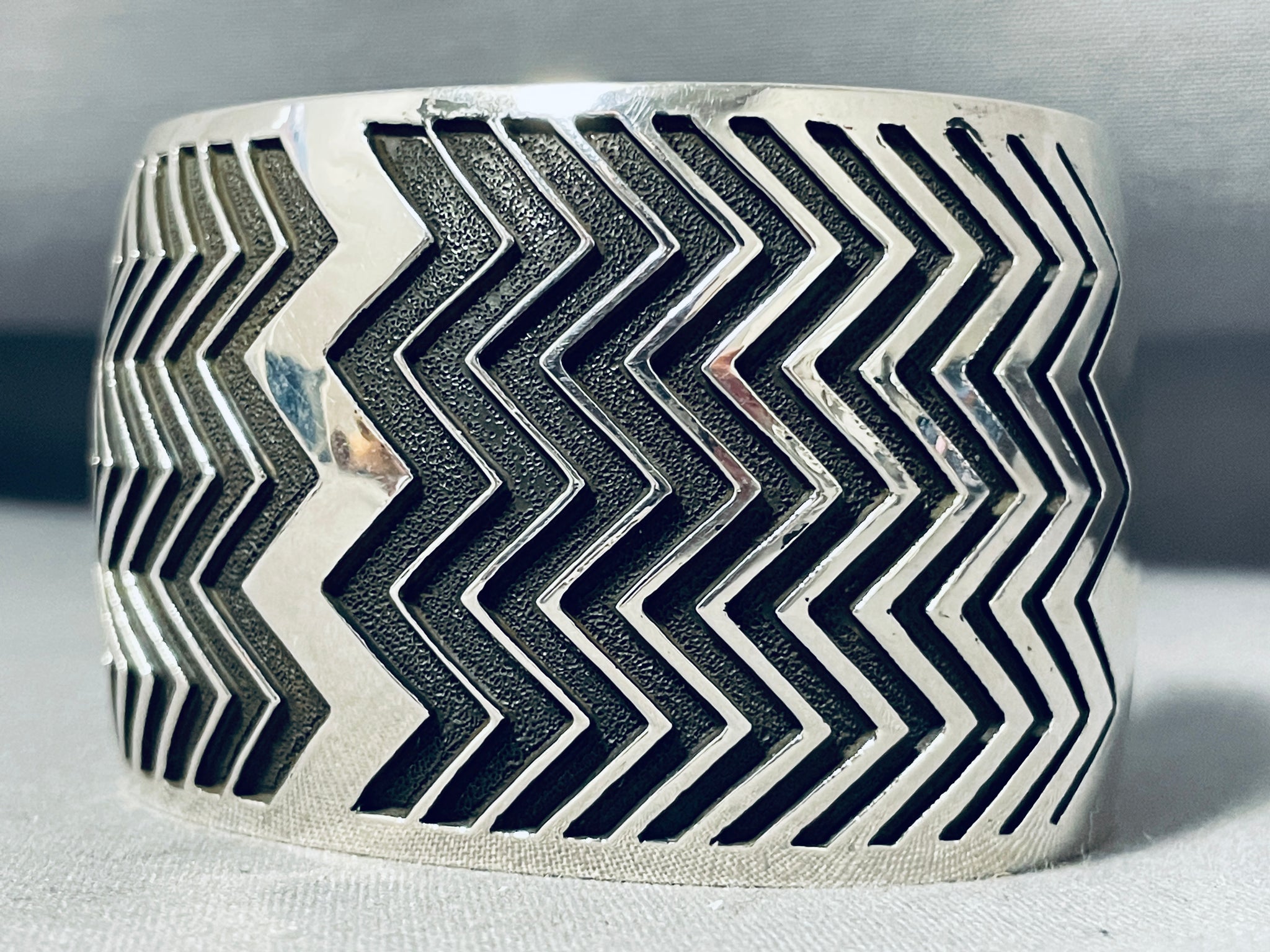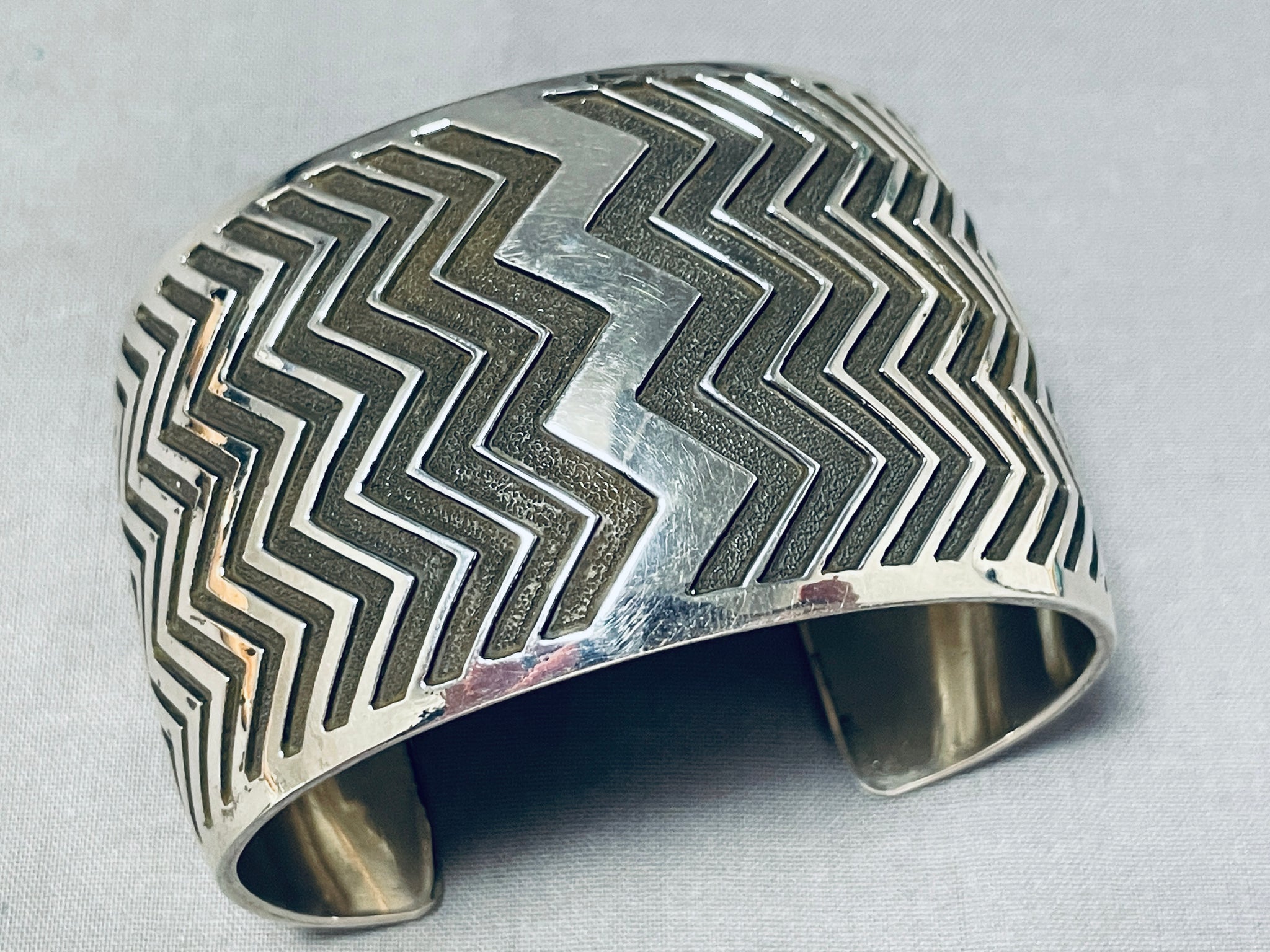One Of The Most Detailed Ever Native American Navajo Sterling Silver Zig Zag Bracelet