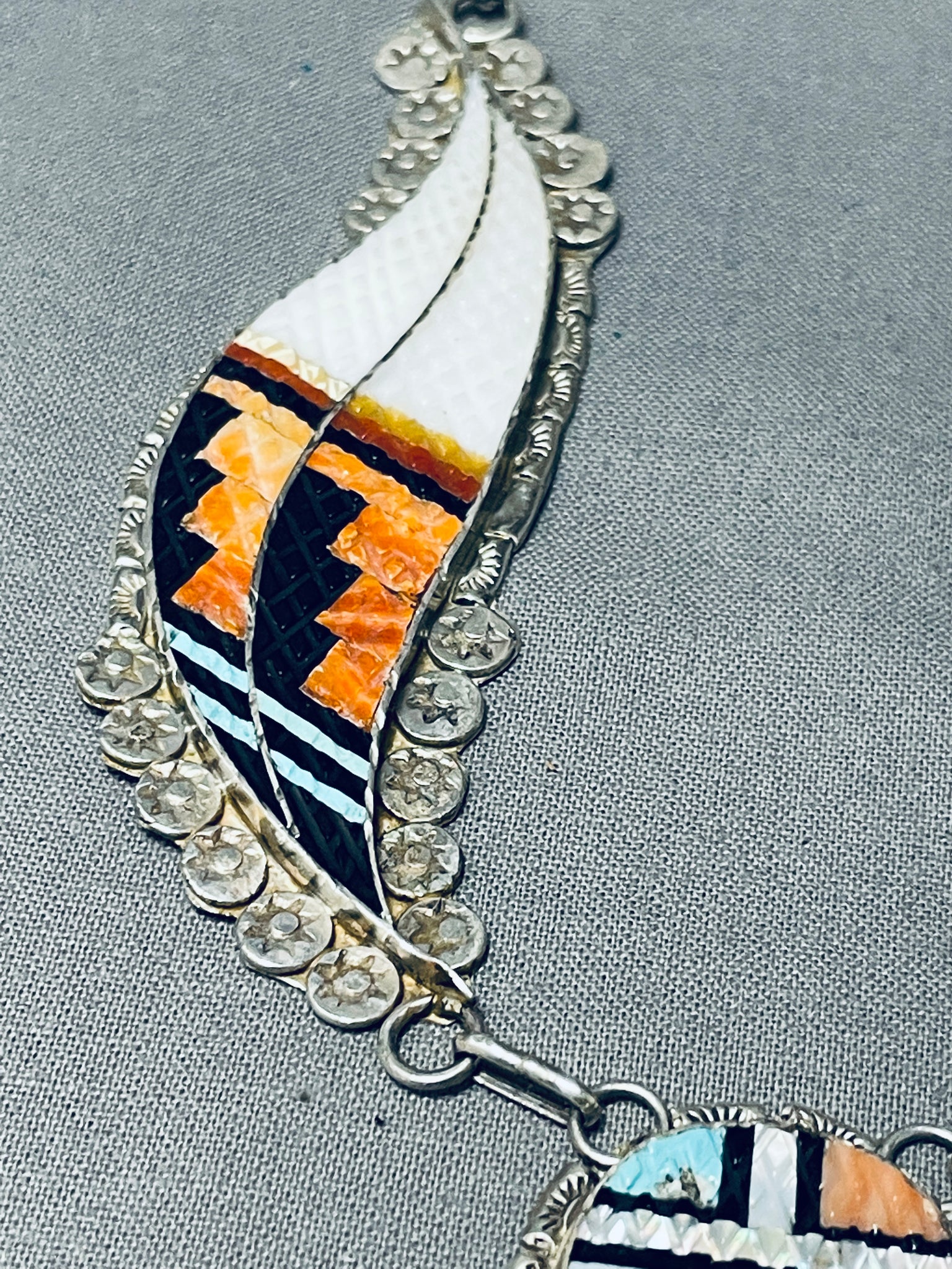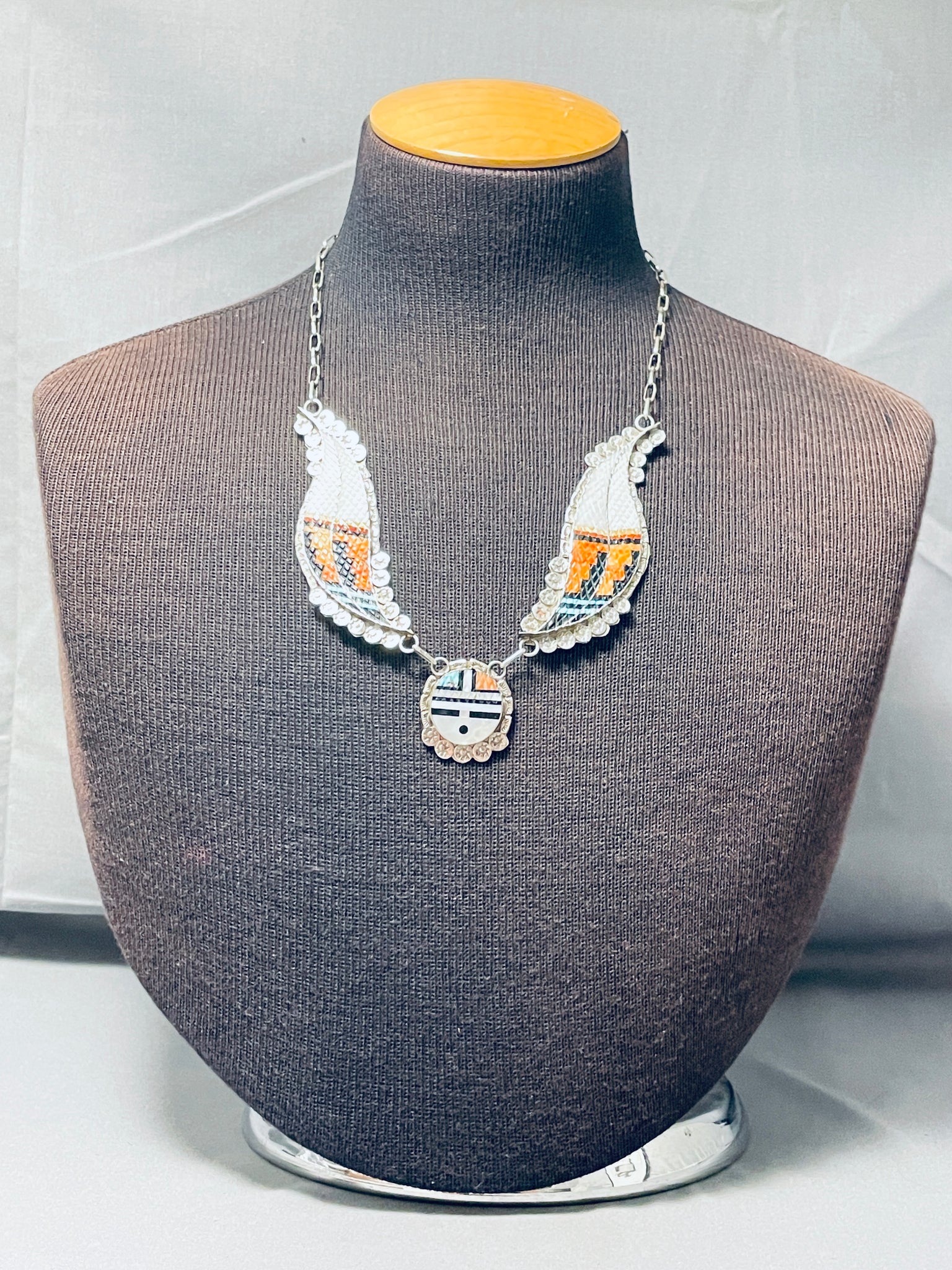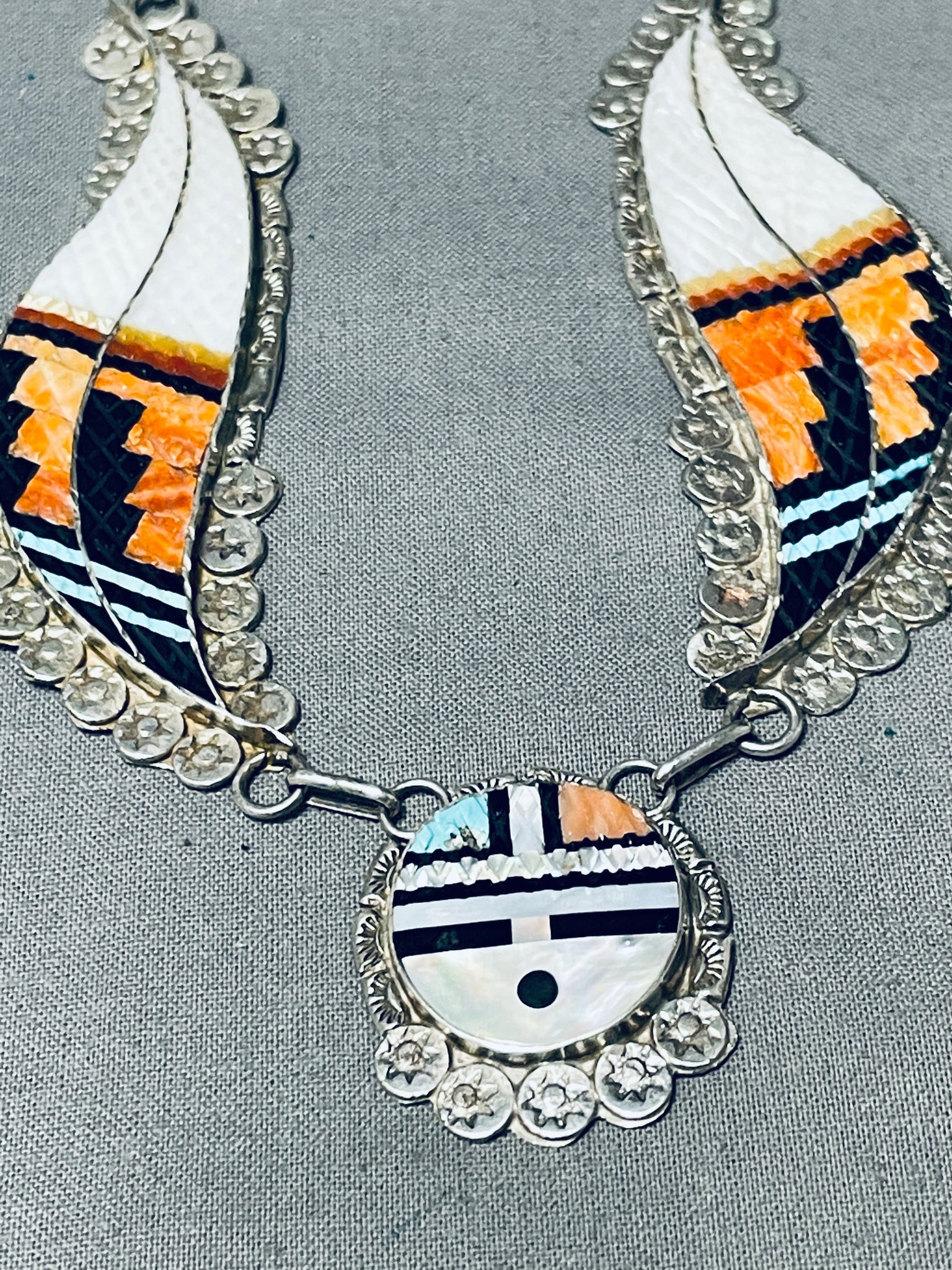 One Of The Most Detailed Ever Vintage Native American Zuni Turquoise Sterling Silver Necklace