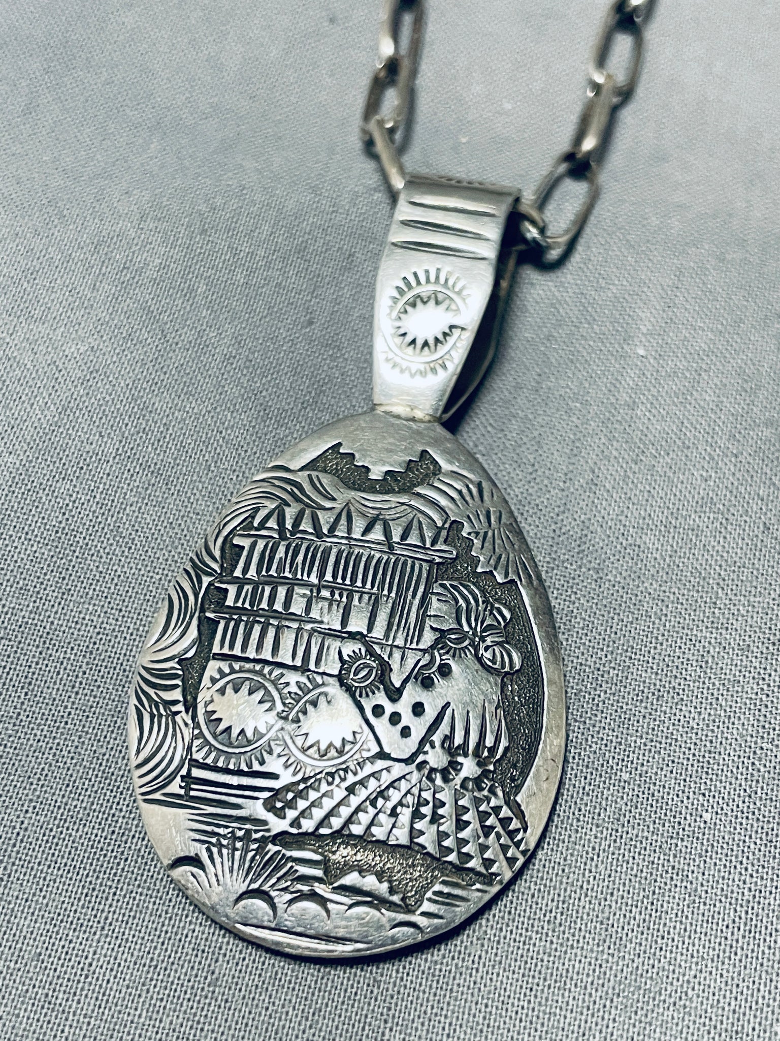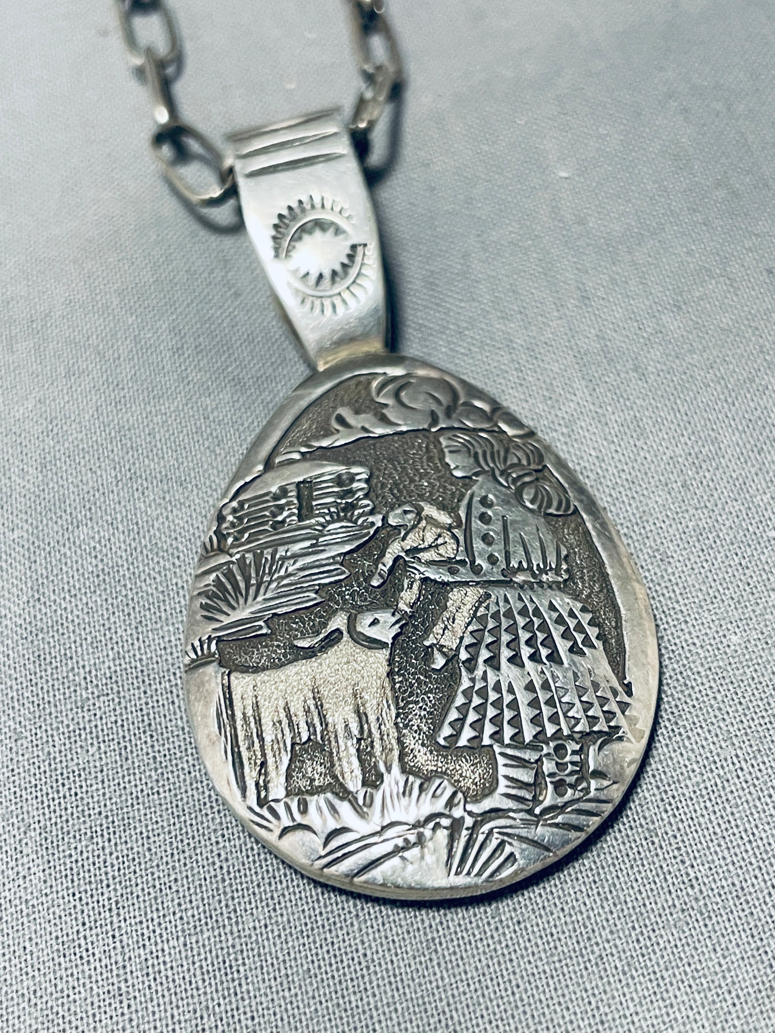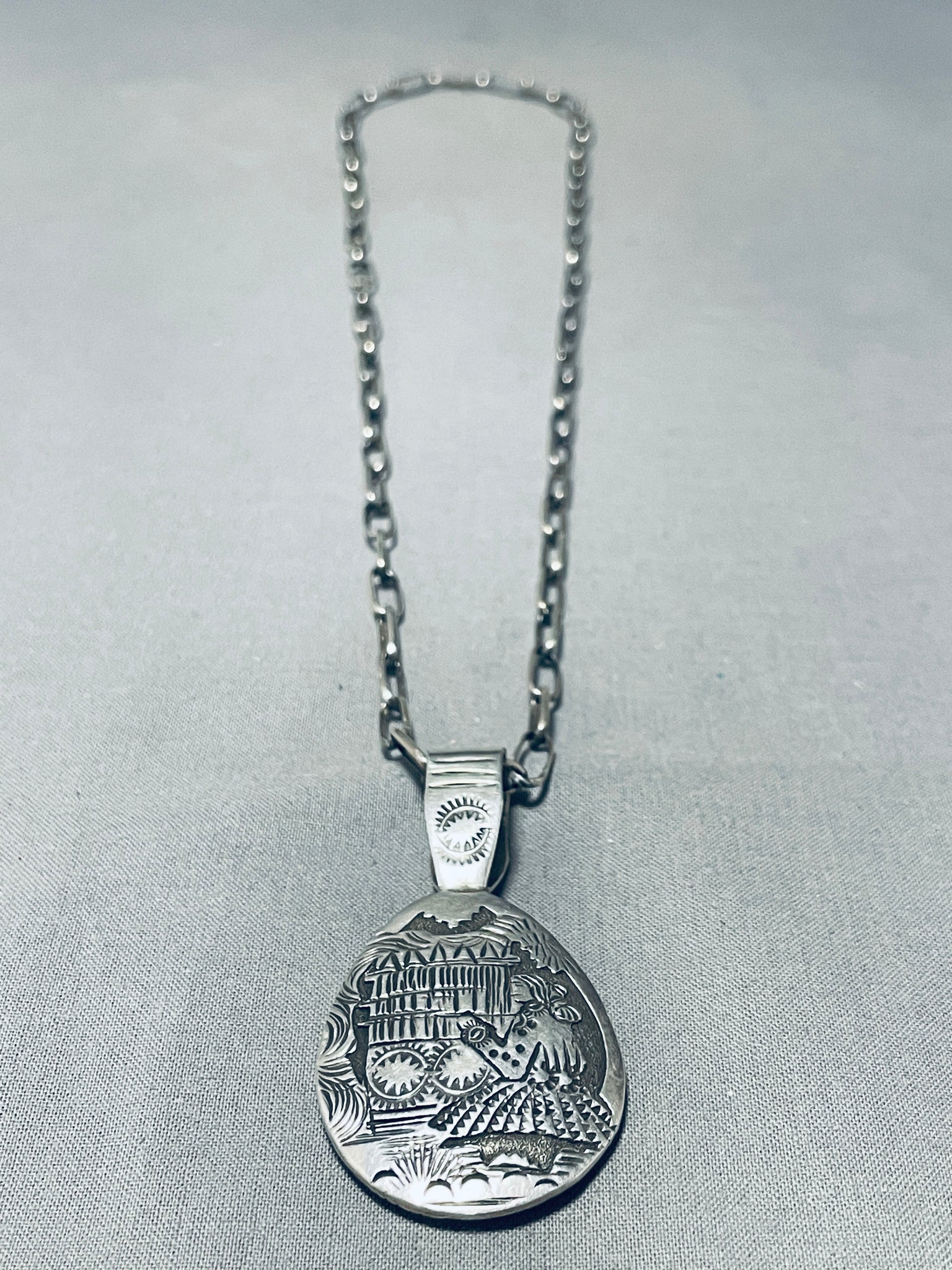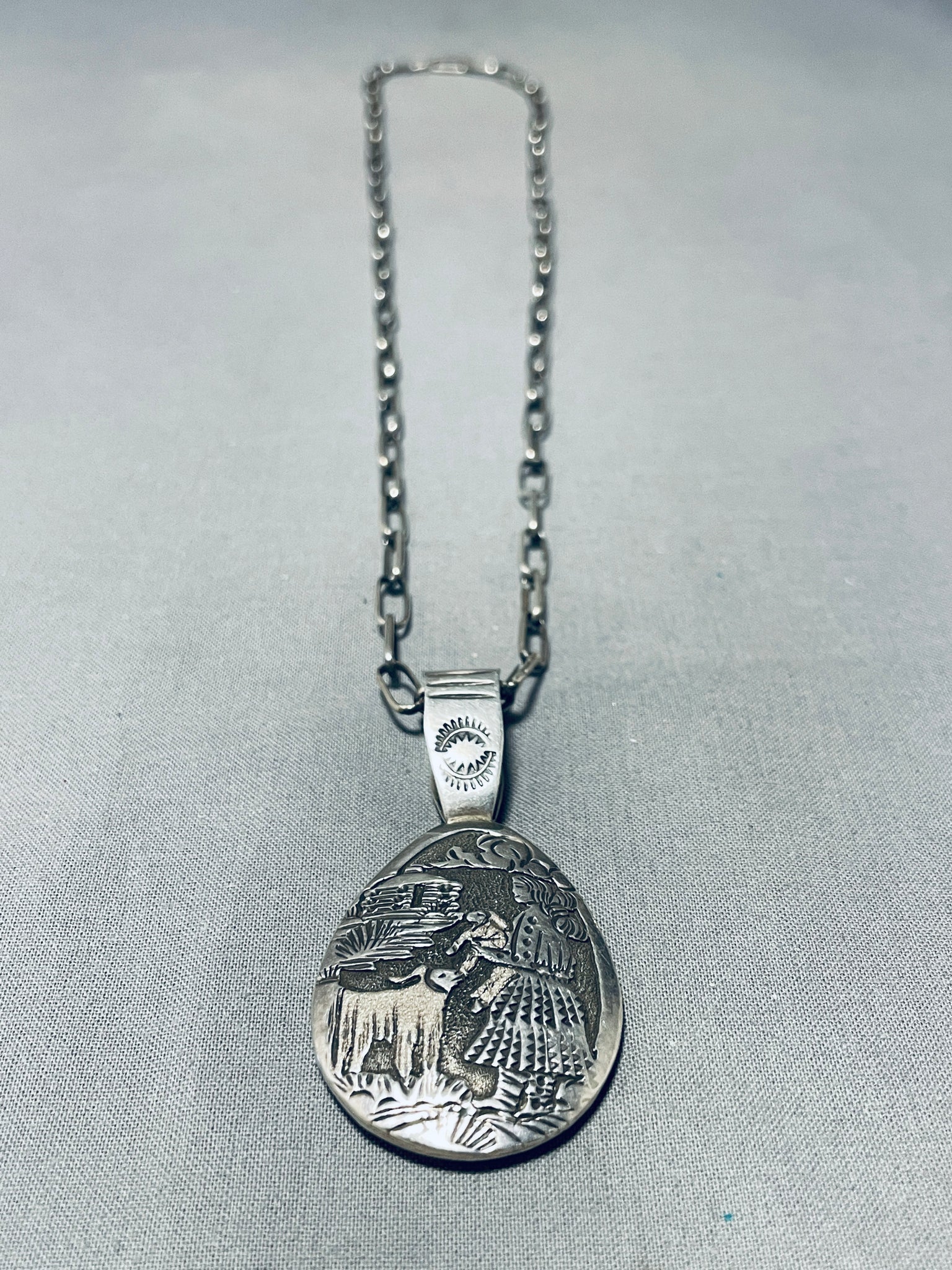 One Of The Most Detailed Hand Carved Vintage Native American Navajo Sterling Silver Necklace