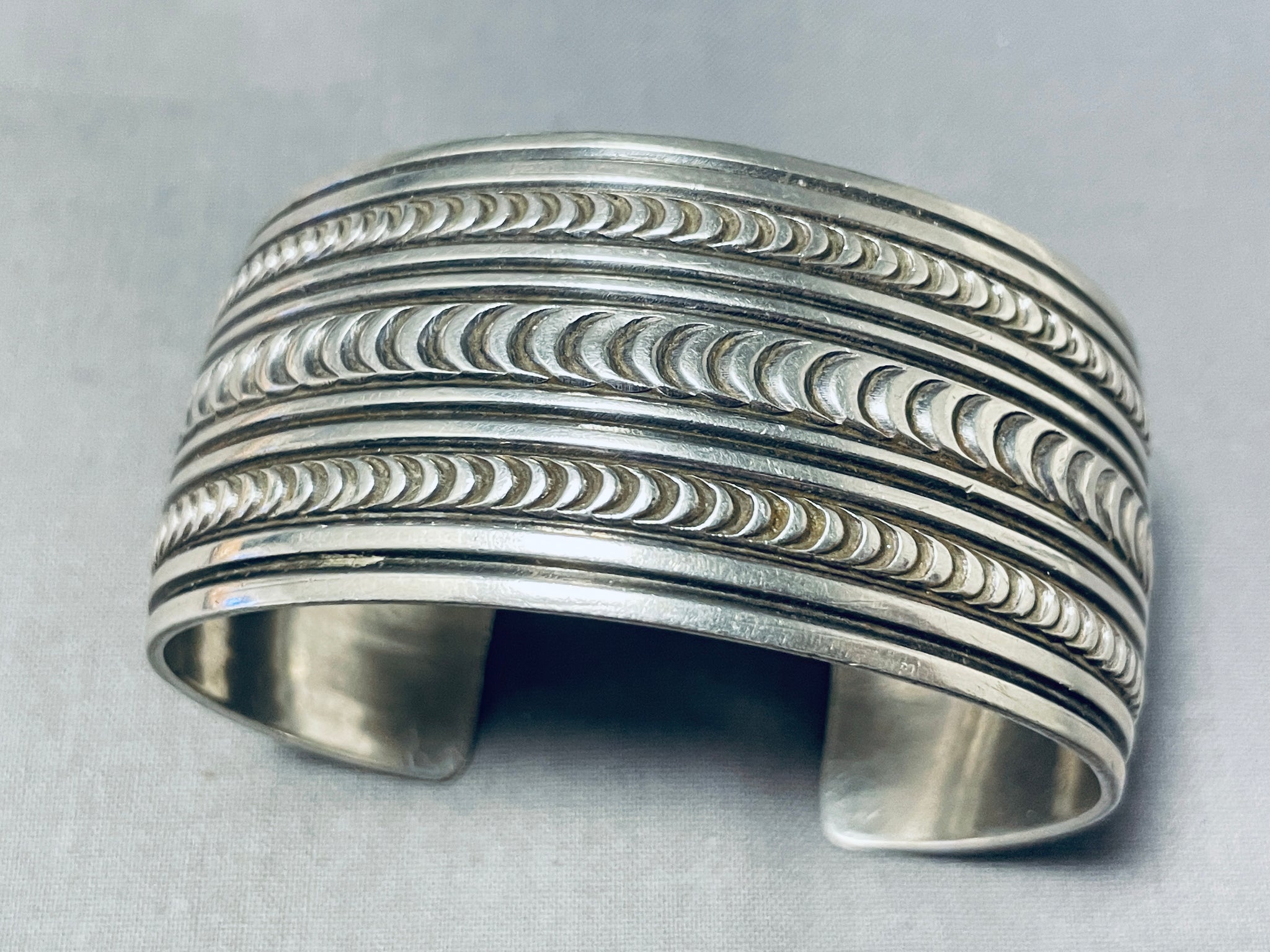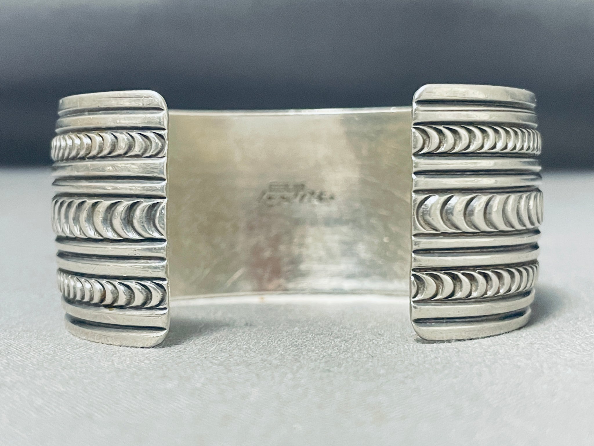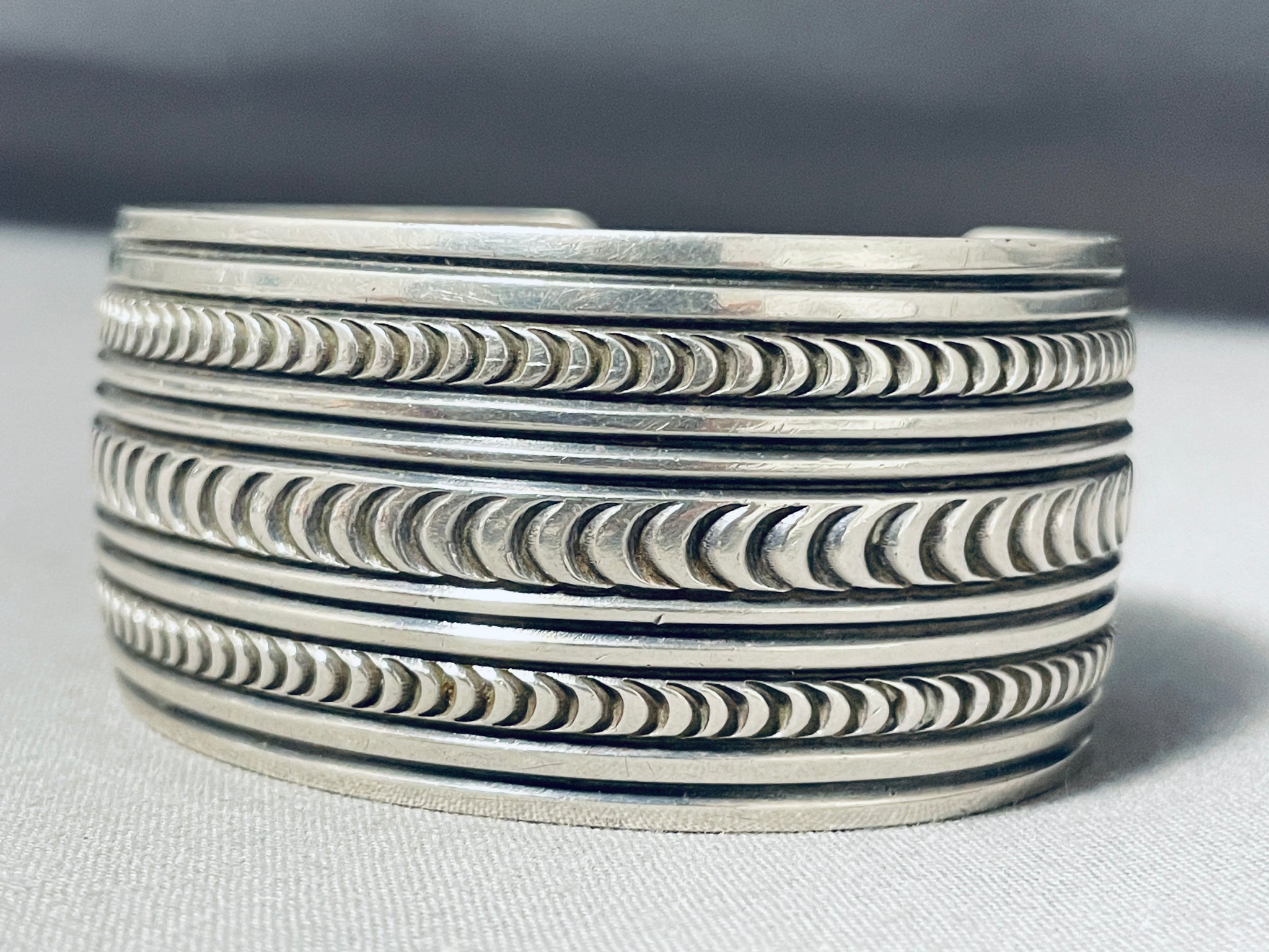 One Of The Most Detailed Hand Stamped Vintage Native American Navajo Sterling Silver Bracelet