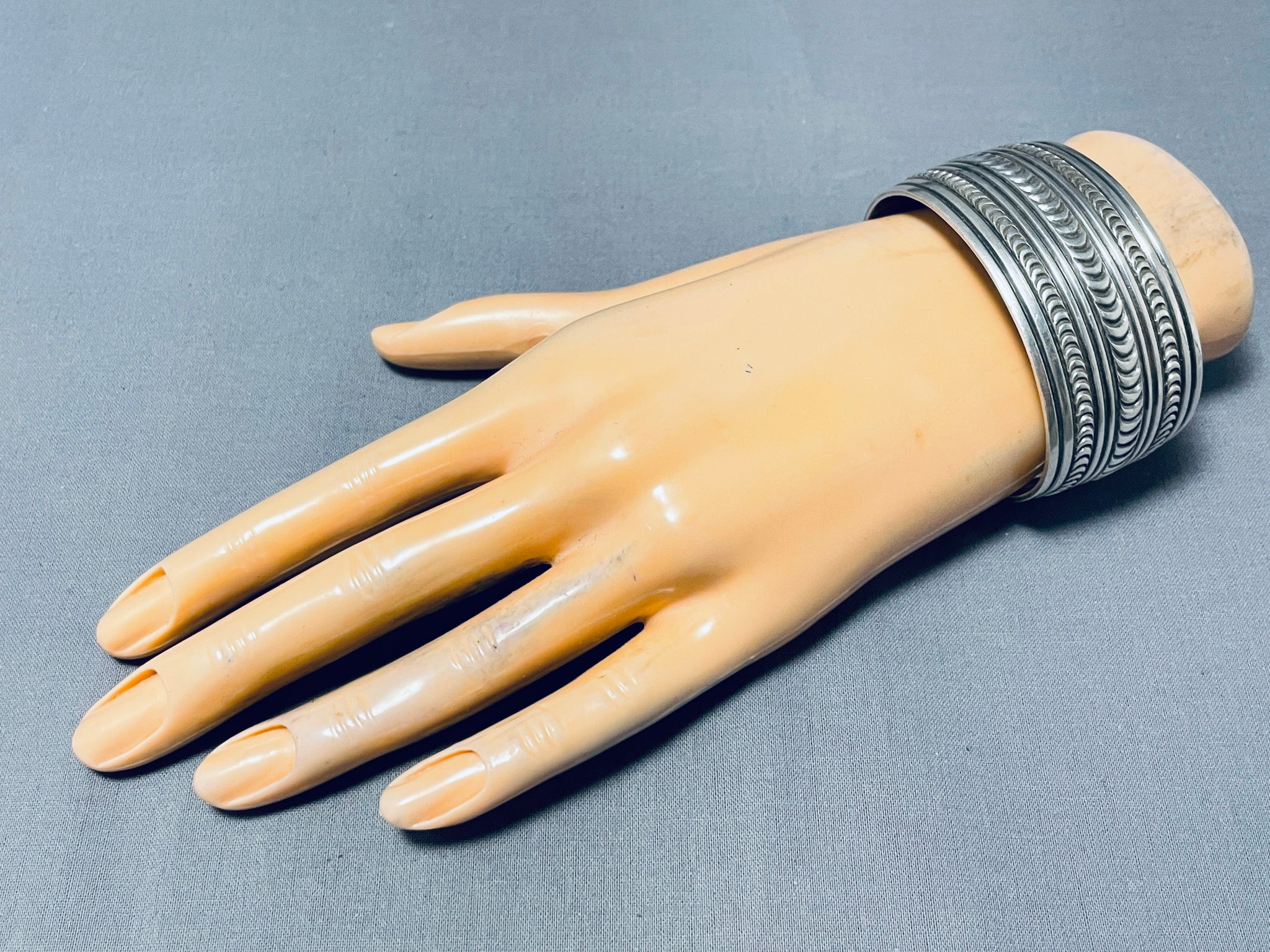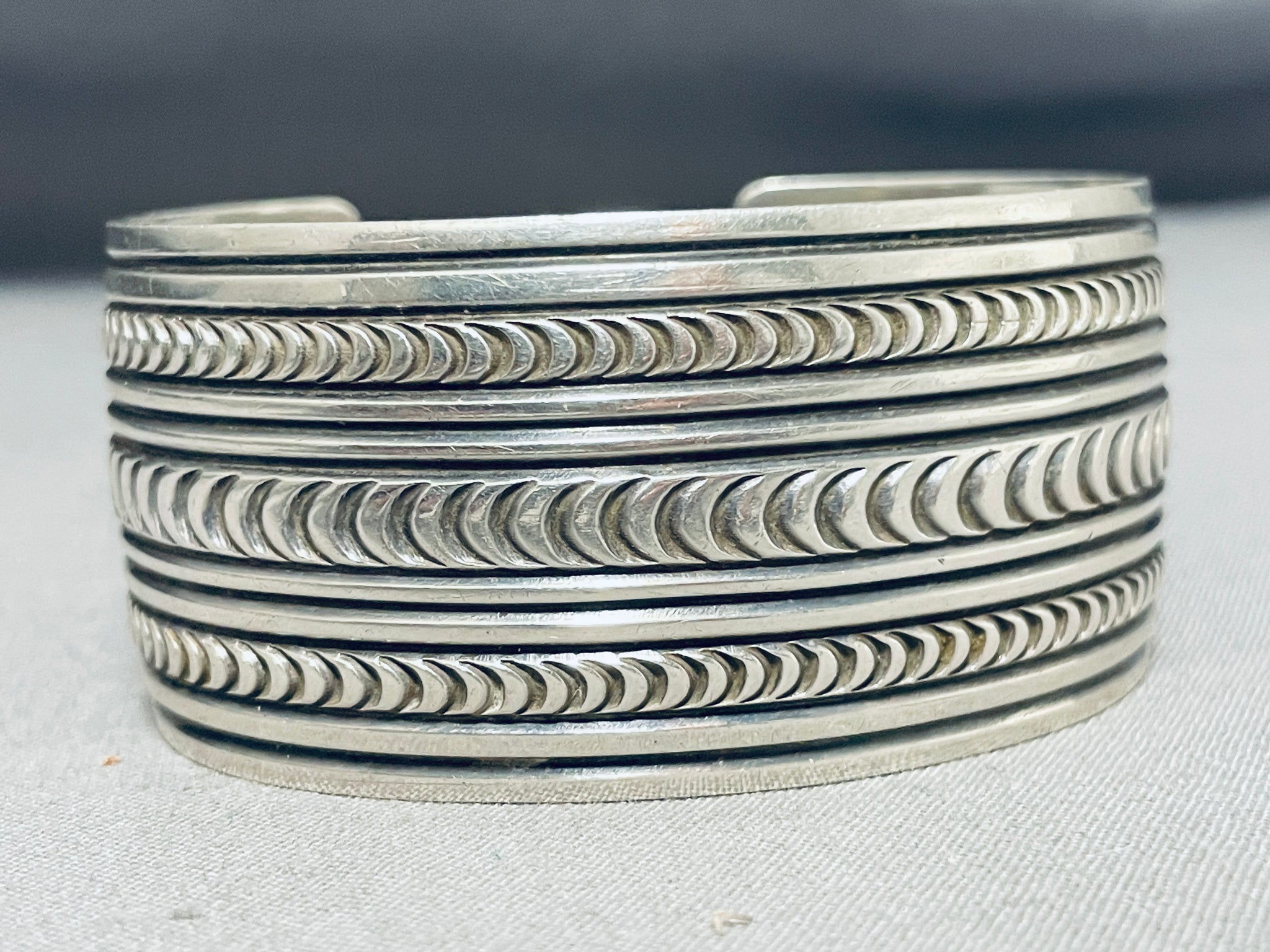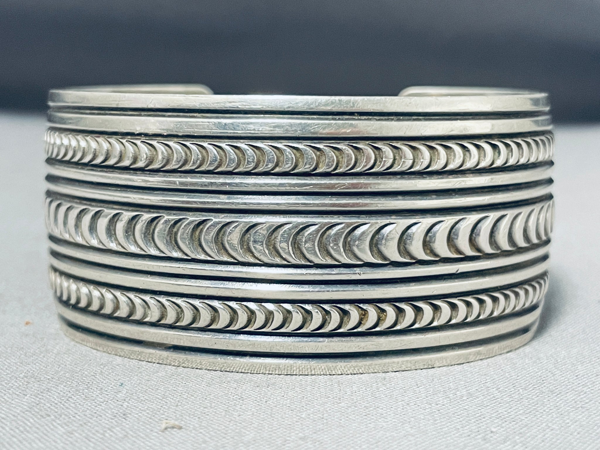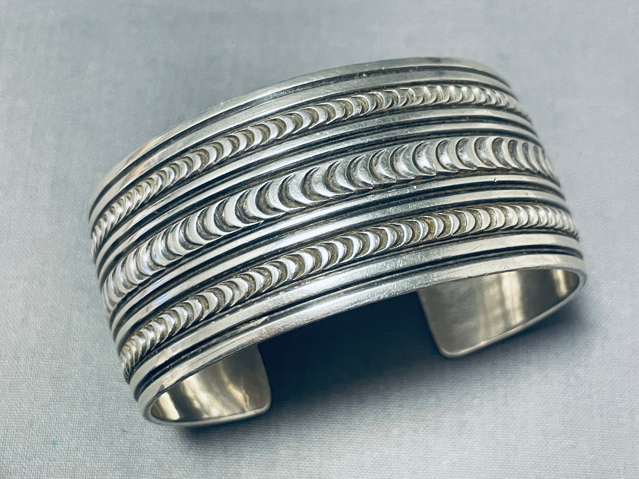 One Of The Most Detailed Hand Stamped Vintage Native American Navajo Sterling Silver Bracelet