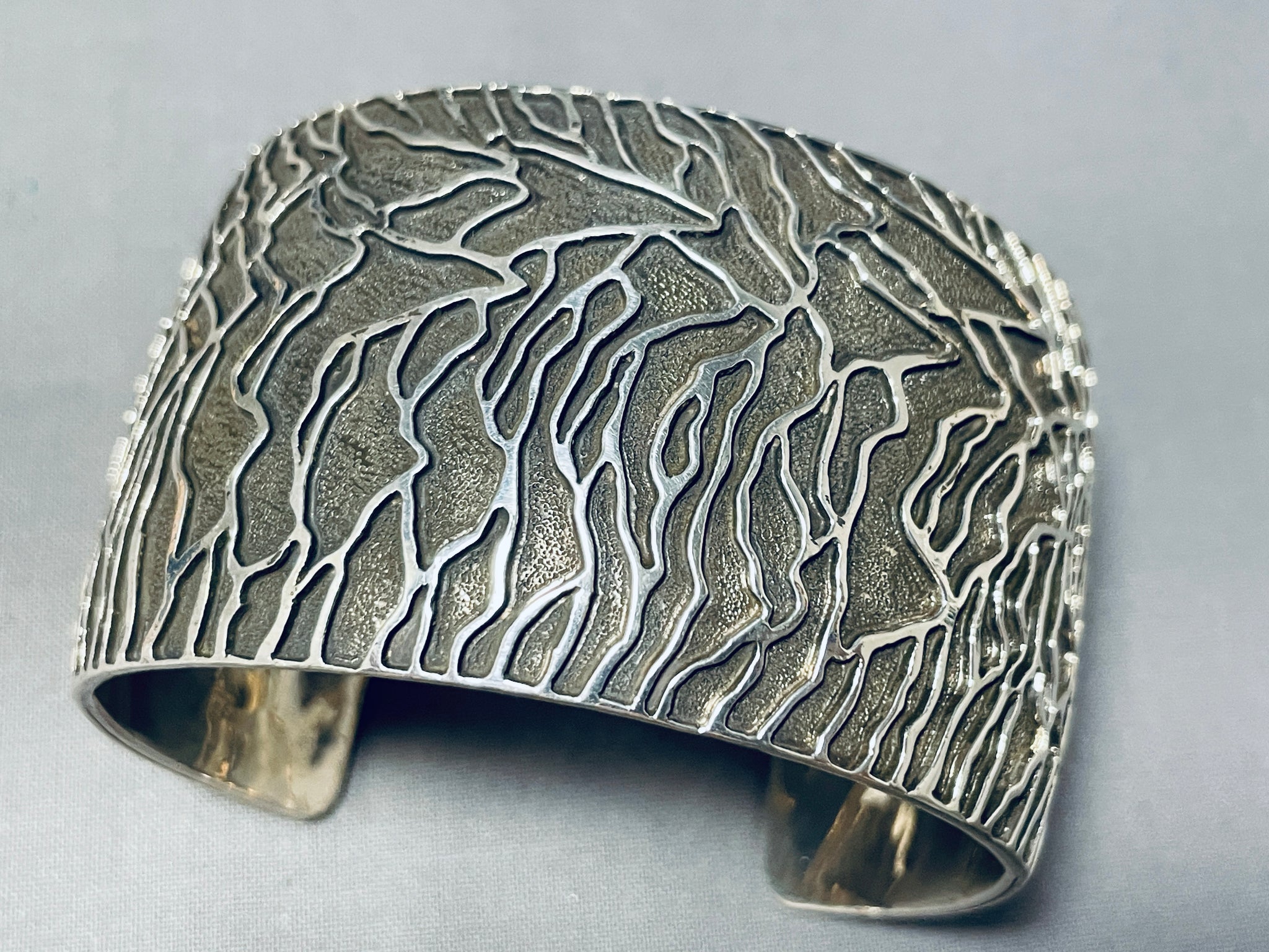 One Of The Most Detailed Native American Navajo Sterling Silver Bracelet Cuff