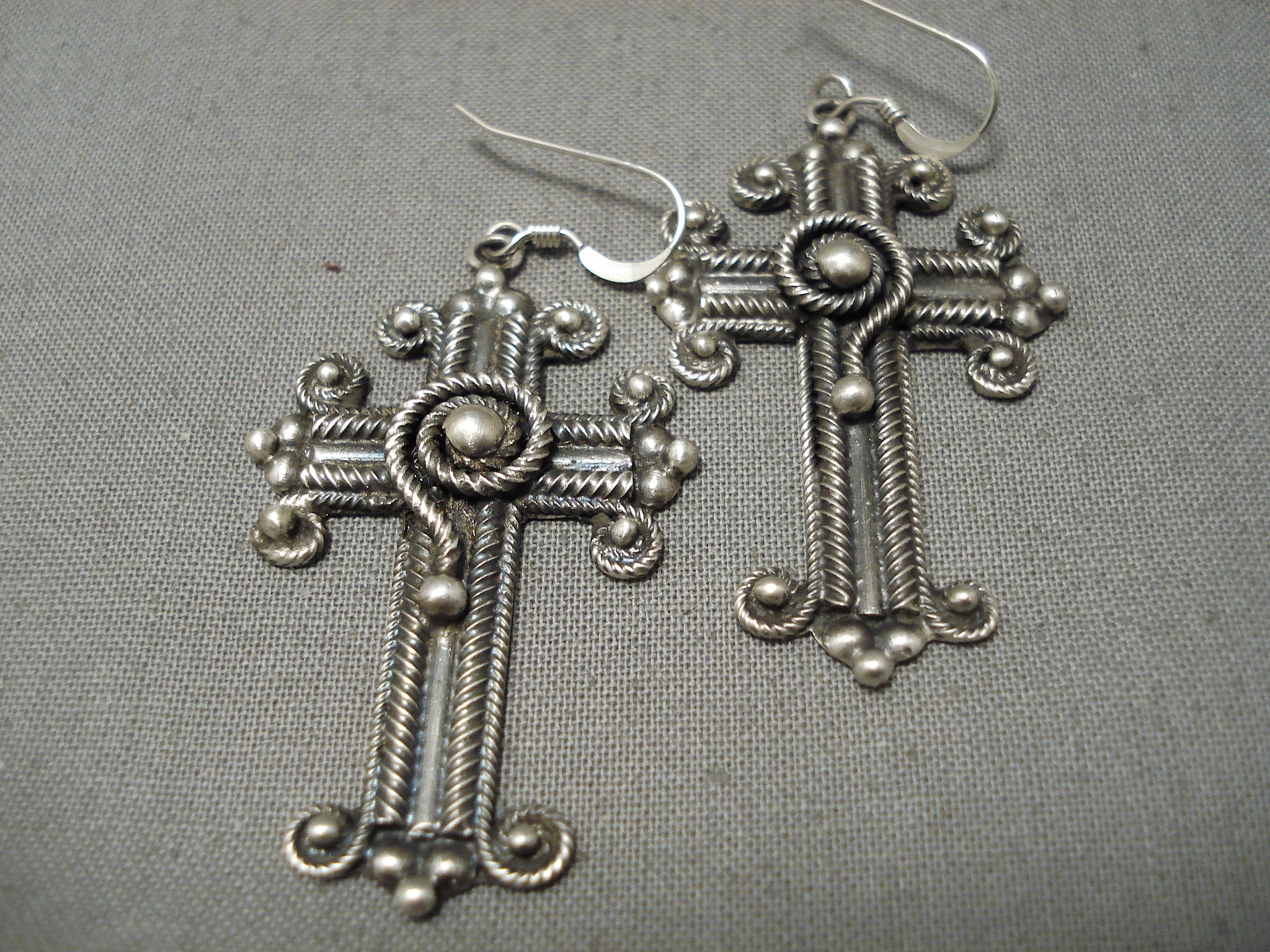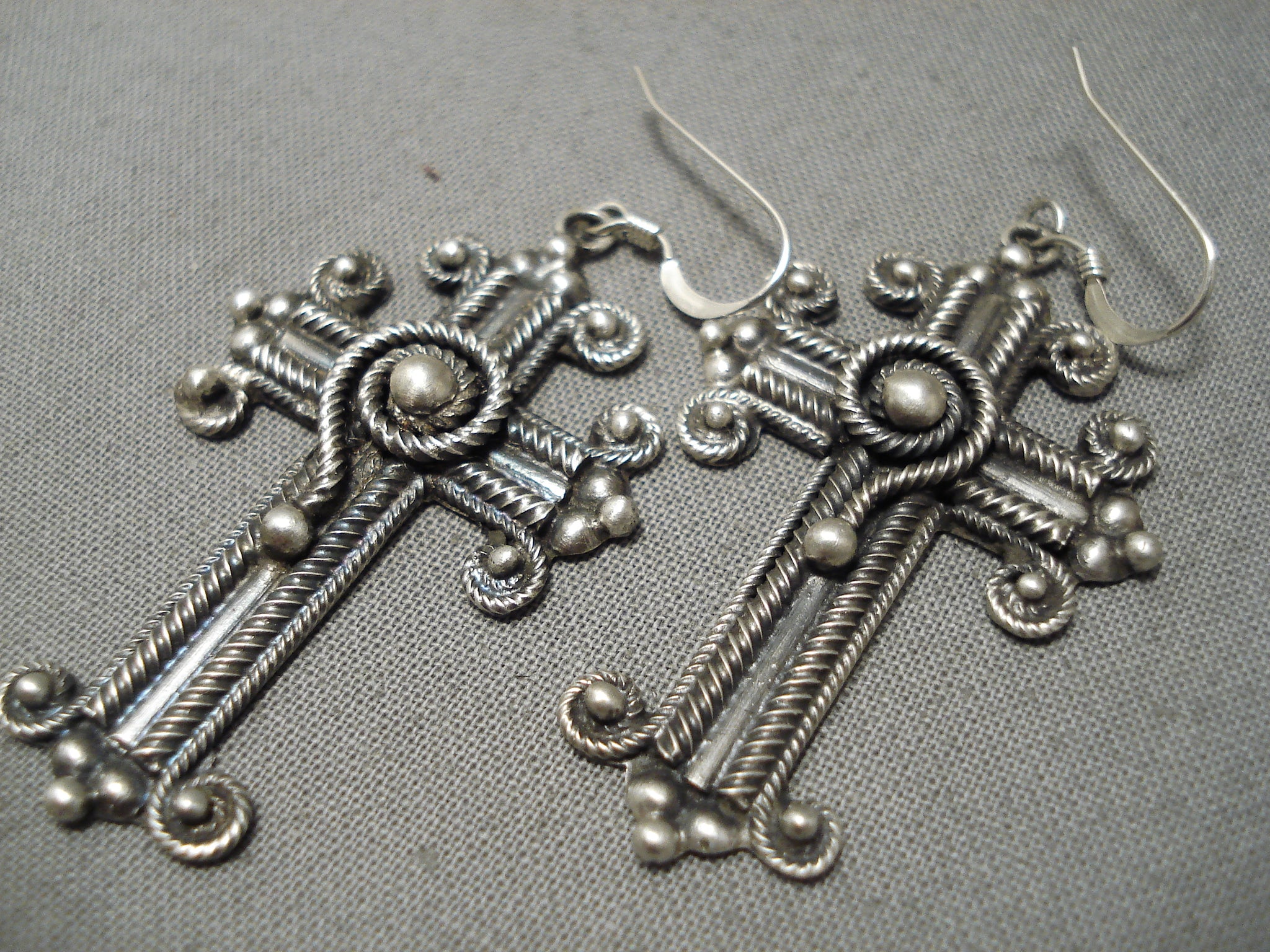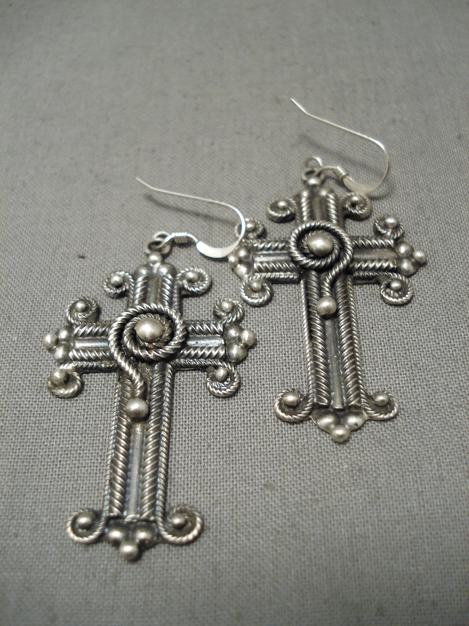 One Of The Most Detailed Native American Navajo Sterling Silver Cross Earrings!