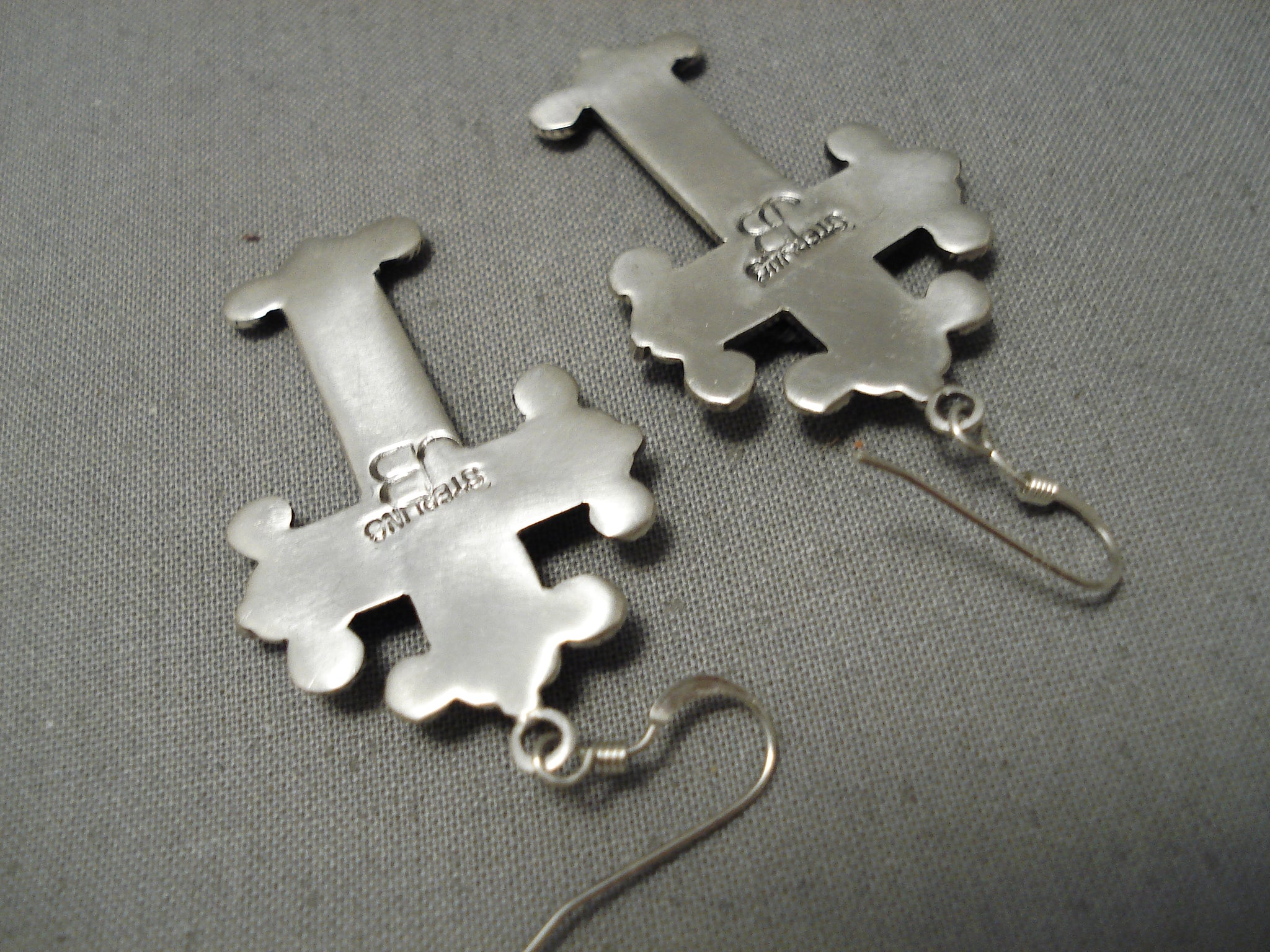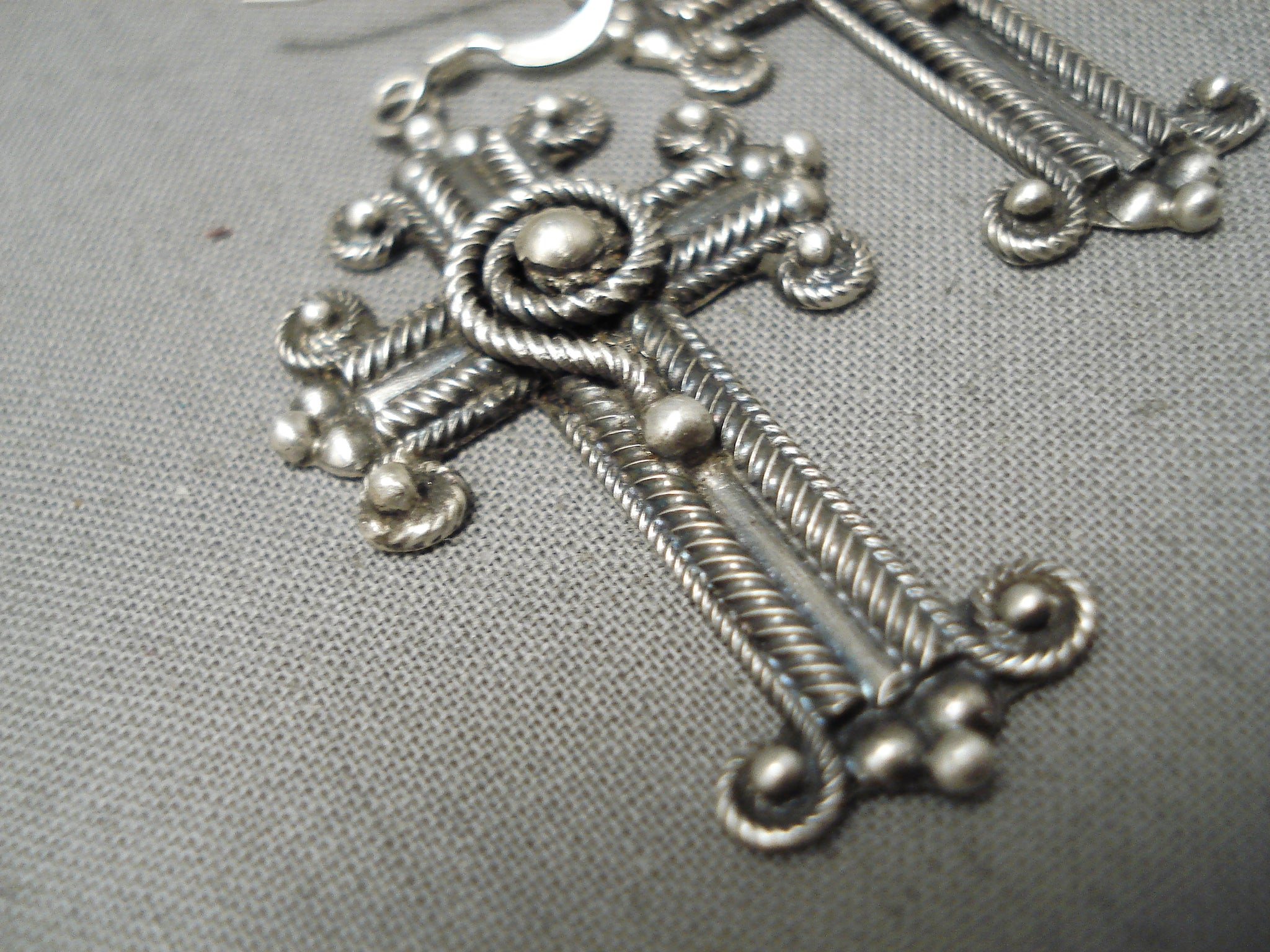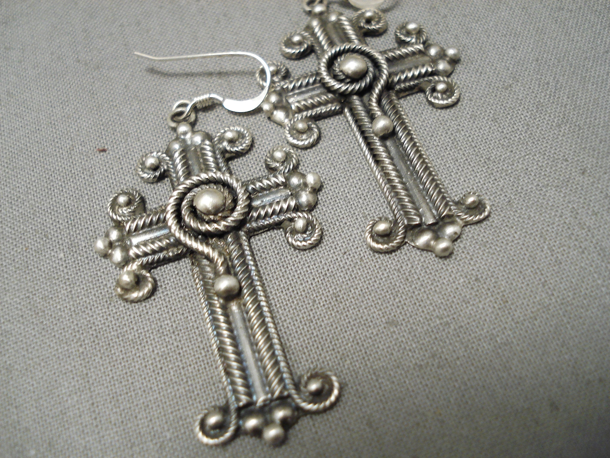 One Of The Most Detailed Native American Navajo Sterling Silver Cross Earrings!