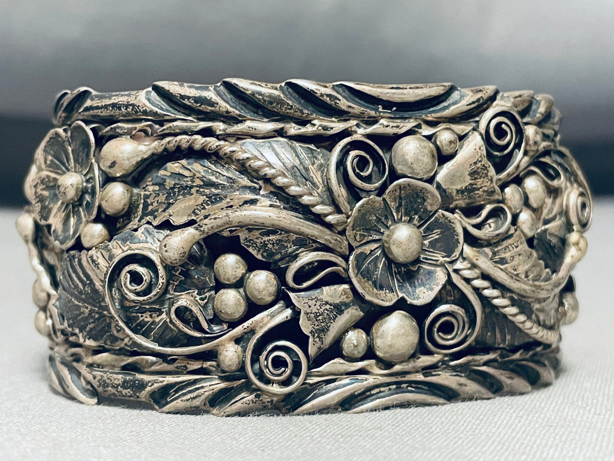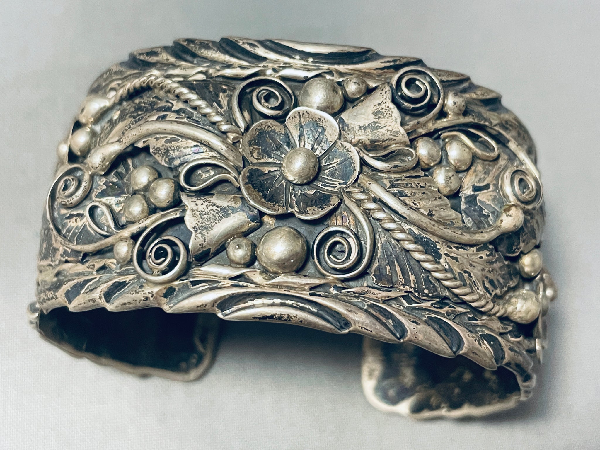 One Of The Most Detailed Vintage Native American Navajo Jungle Sterling Silver Bracelet