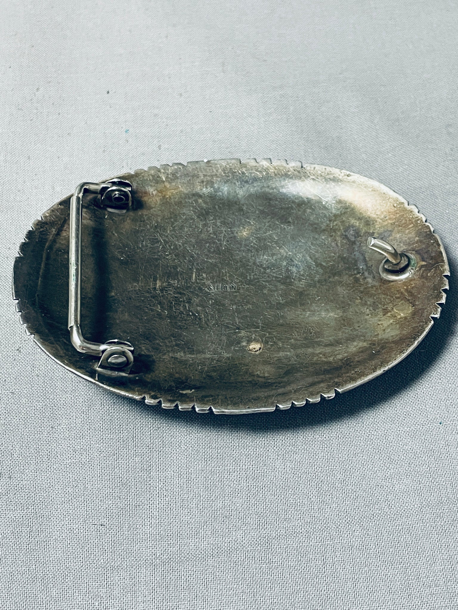 One Of The Most Detailed Vintage Native American Navajo Sterling Silver Turquoise Buckle