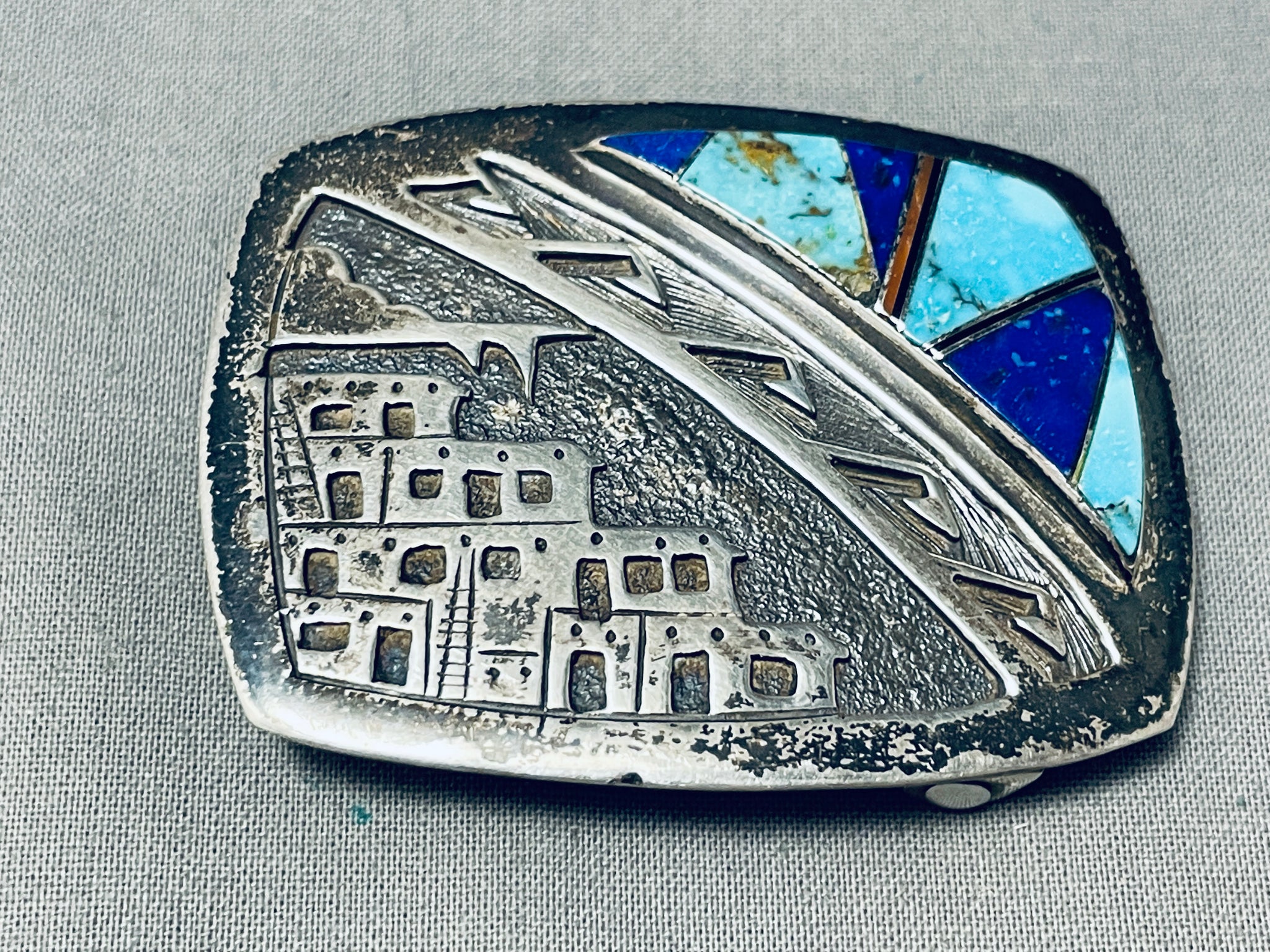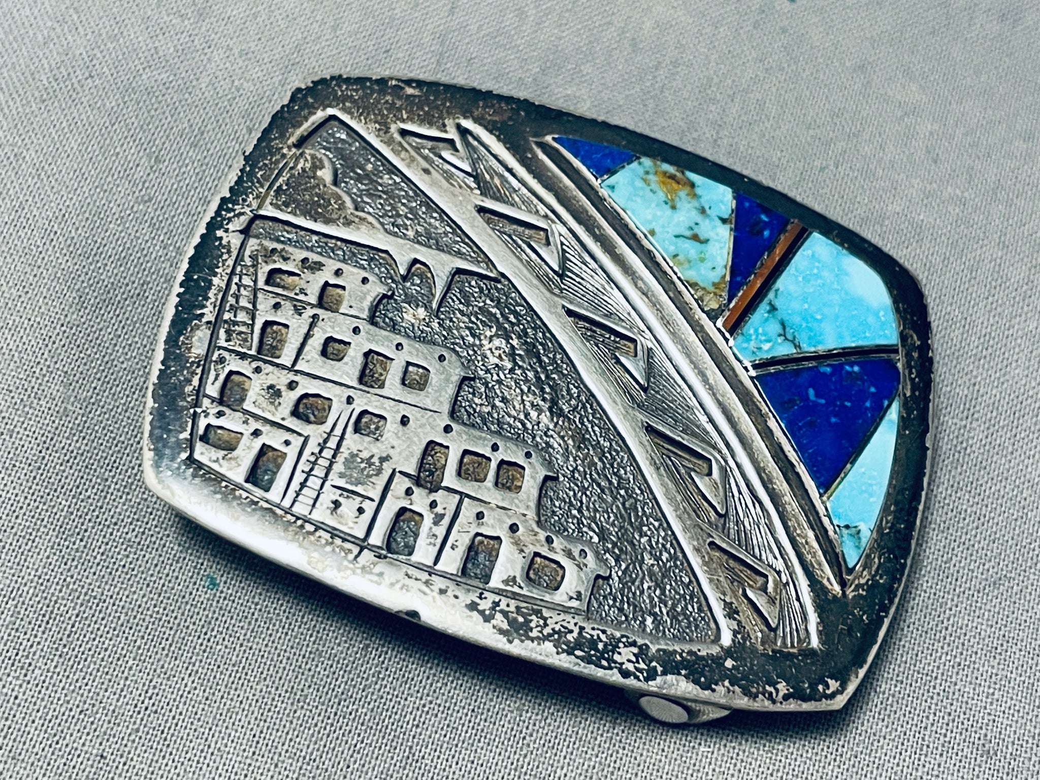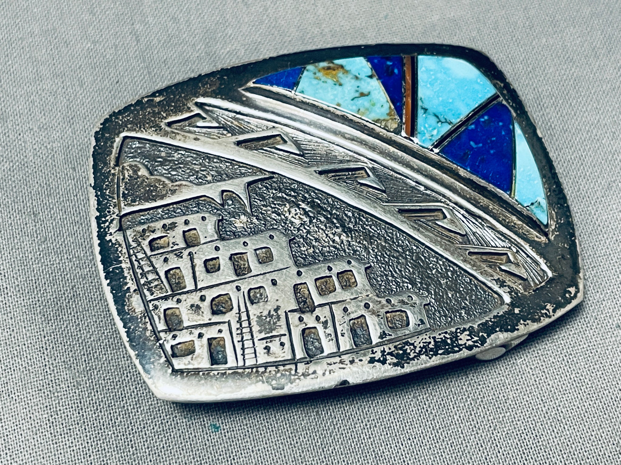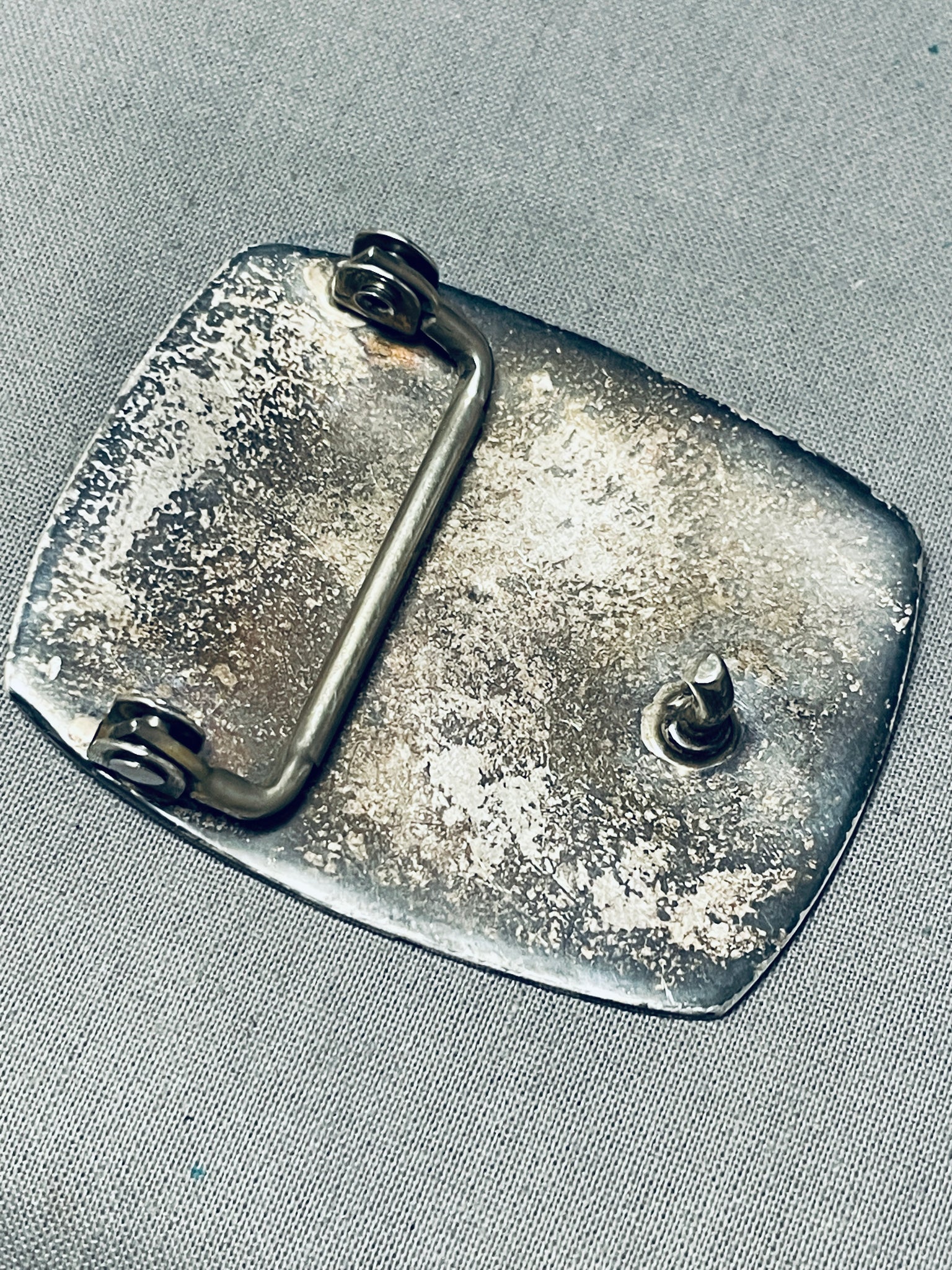 One Of The Most Detailed Vintage Native American Navajo Turquoise Sterling Silver Buckle