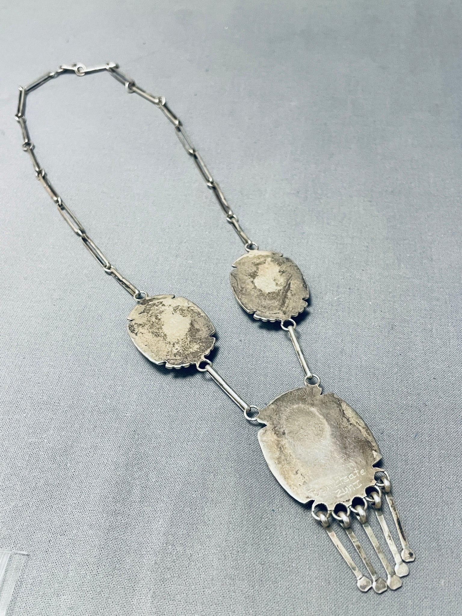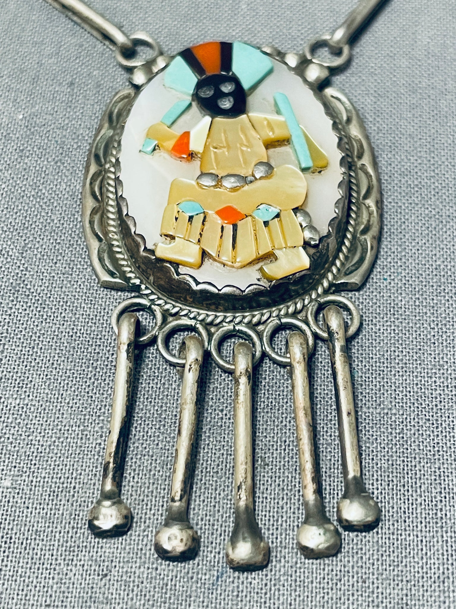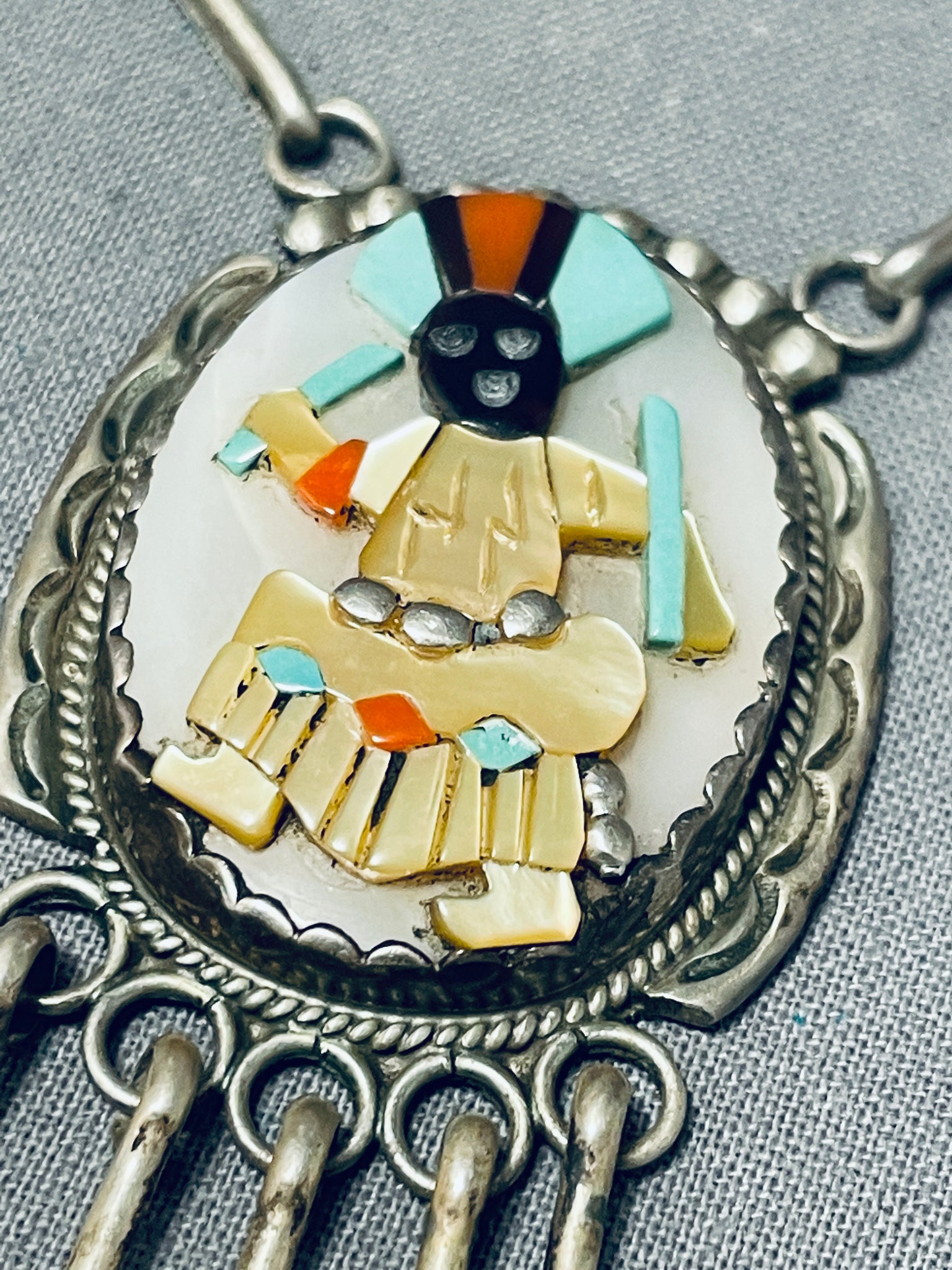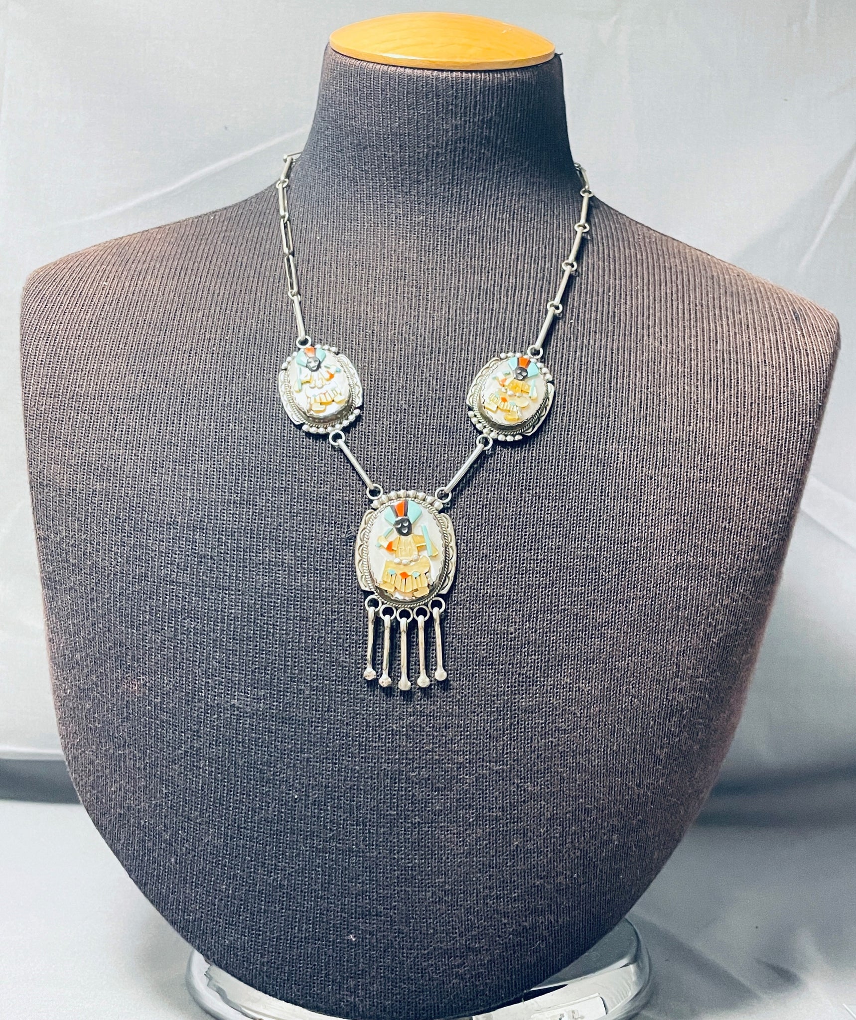 One Of The Most Detailed Vintage Native American Zuni Turquoise Kachina Sterling Silver Necklace